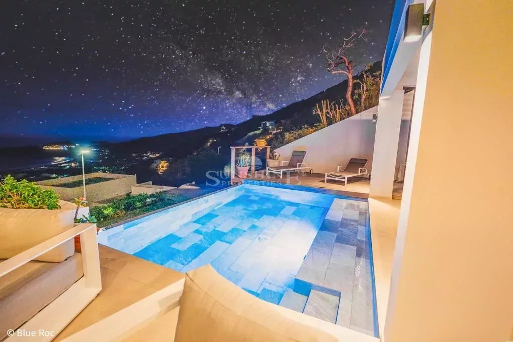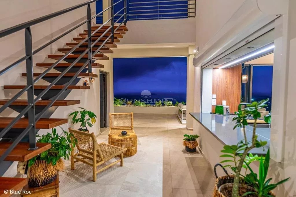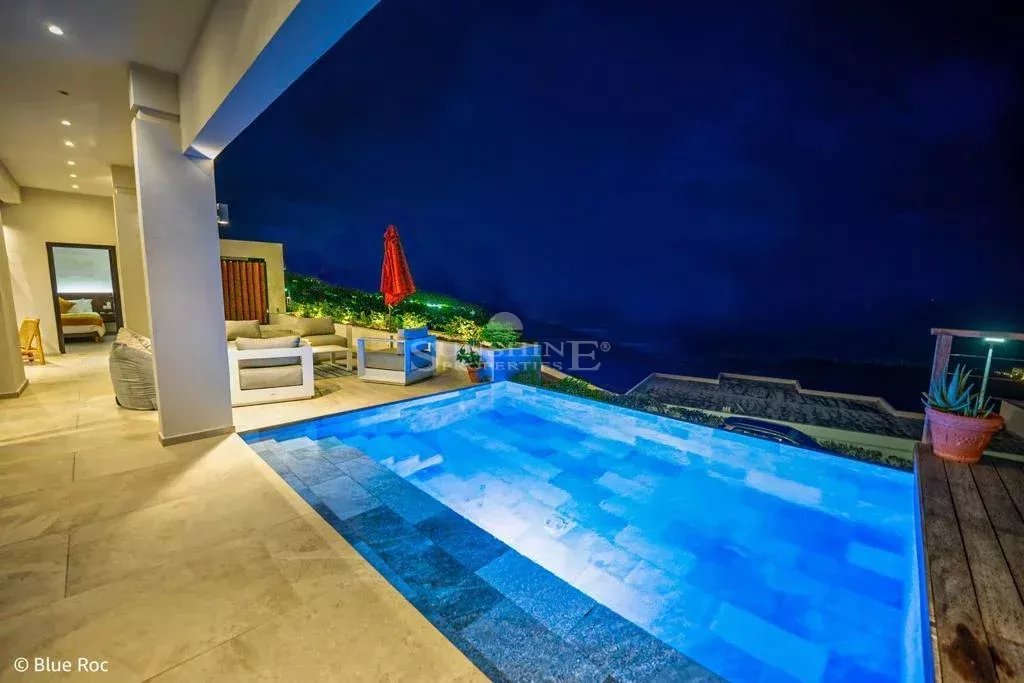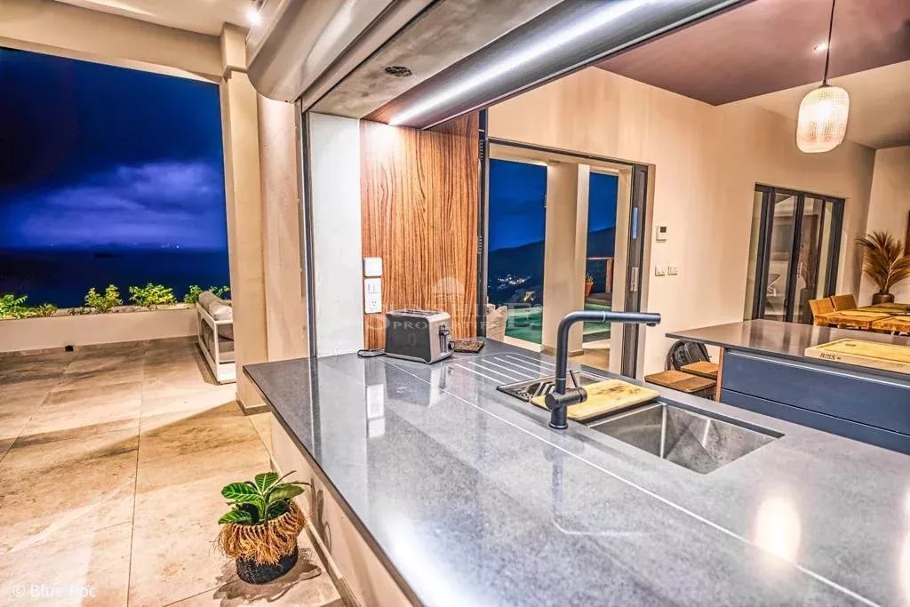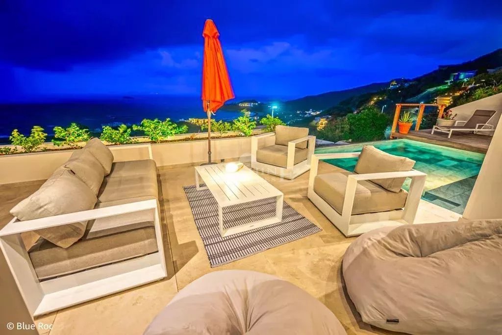 À l'intérieur, la Villa Blue Roc offre un espace de vie spacieux et ouvert, avec de grandes portes vitrées qui laissent entrer beaucoup de lumière naturelle et vous permettent de profiter du paysage à couper le souffle depuis l'intérieur. Les cuisines gastronomiques sont entièrement équipées d'appareils électroménagers haut de gamme, ce qui facilite la préparation des repas, que vous soyez un chef professionnel ou que vous preniez simplement un petit déjeuner décontracté. La villa dispose de plusieurs chambres bien aménagées, chacune dotée d'une luxueuse salle de bains privative, ce qui garantit à chaque invité une intimité et un confort optimaux.