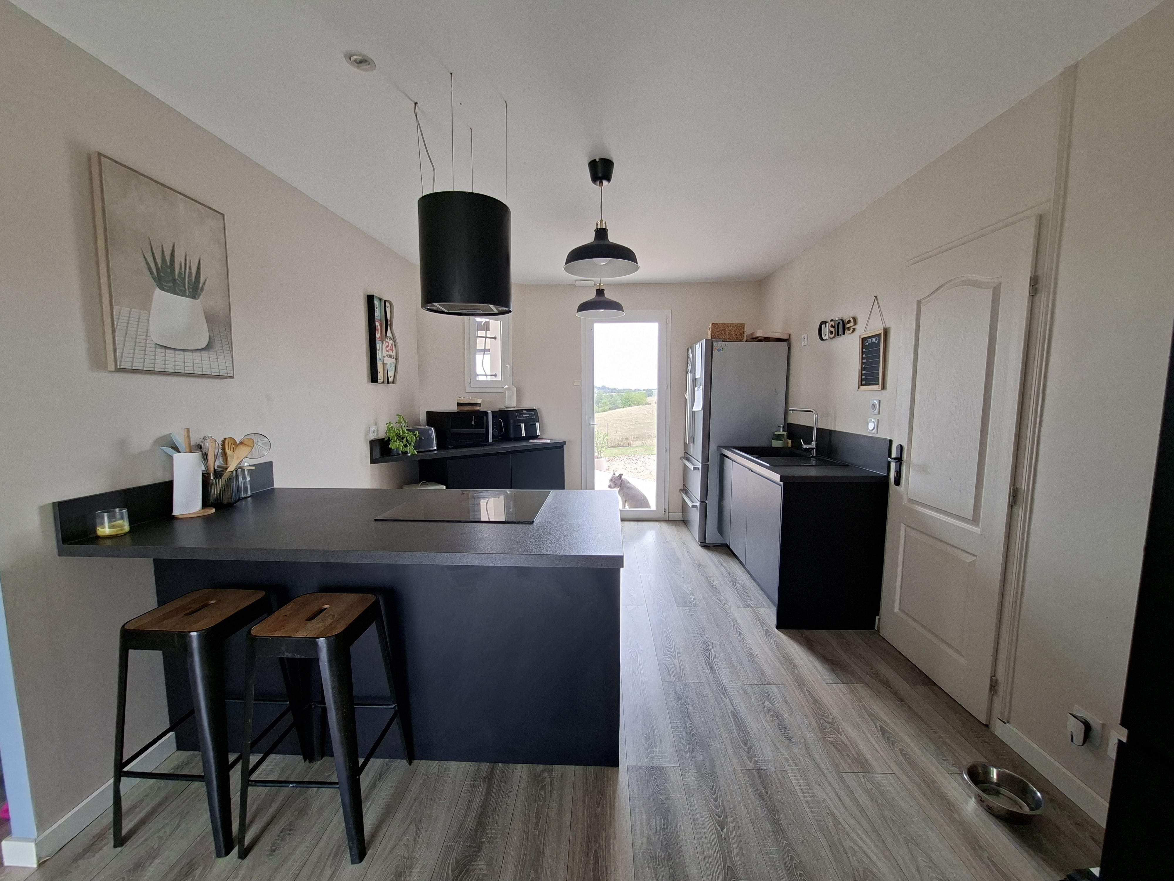 avec cuisine ouverte entièrement équipée , de 2 chambres , d une salle d eau moderne et d un garage attenant. terrasse en bois idéal pour profiter des beaux jours . double vitrage, clim , fosse