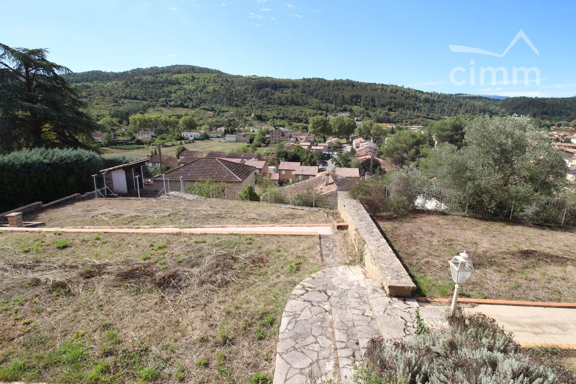 La bâtisse se situe dans un quartier très calme, sur les hauteurs de la petite ville de Couiza, où se trouvent tous les commerces et les services.