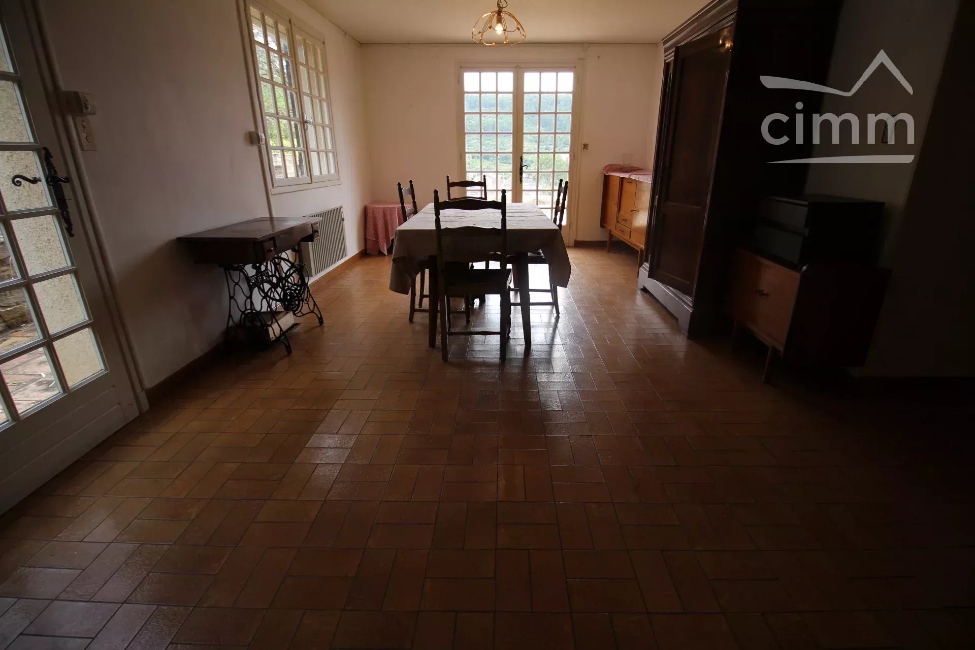 L'habitation en-dessous donne sur le jardin et possède également une terrasse. Elle se compose d'une cuisine de 13,5m², d'un salon de 32m² avec son propre accès donnant sur l'extérieur, et d'une chambre. Salle d'eau toilettes.