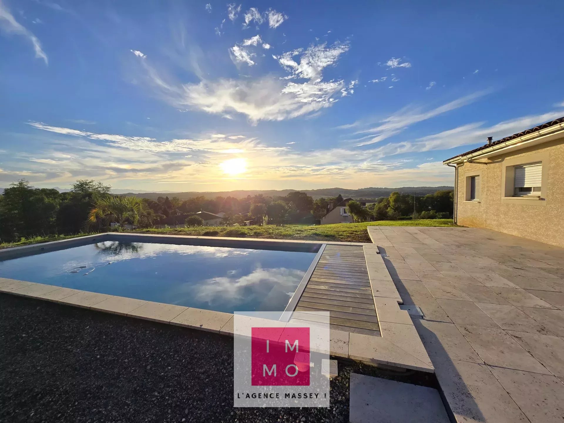 2008 superbe villa contemporaine 153m² habitables en rez de jardin + 2 terrasses + piscine neuve + double garage - Vue panoramique Pyrénées et côteaux