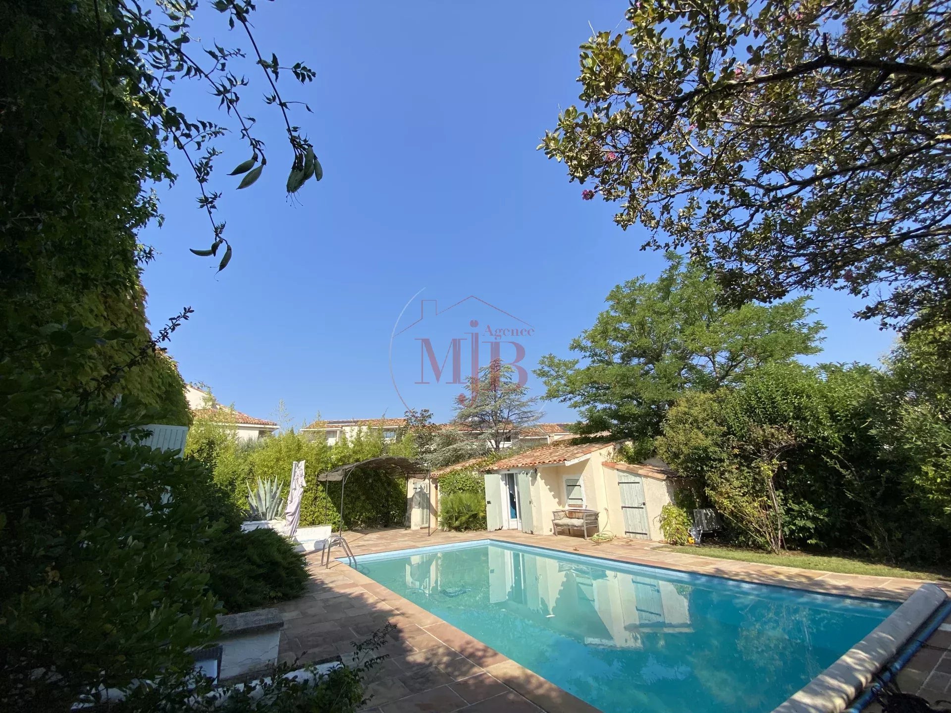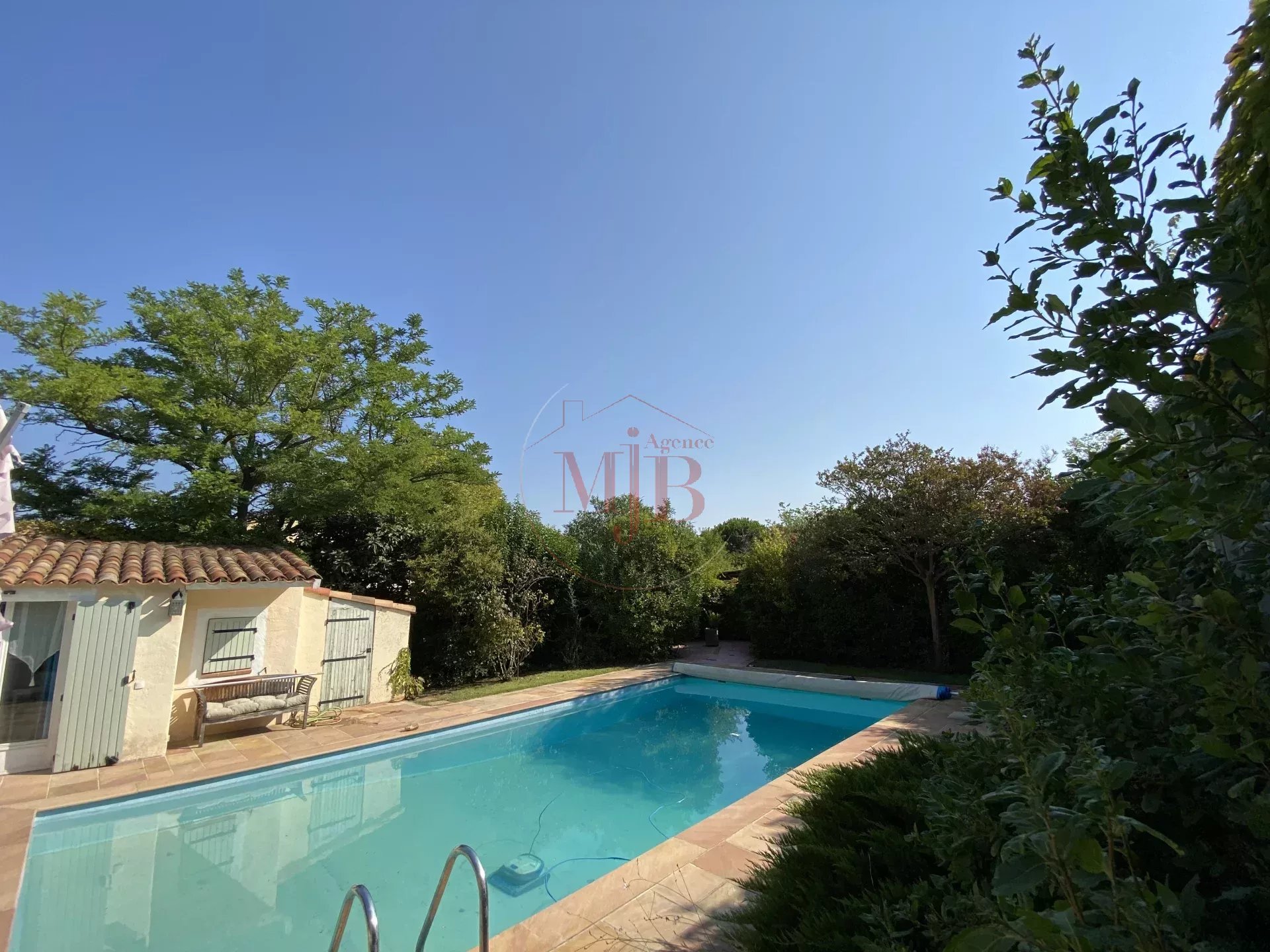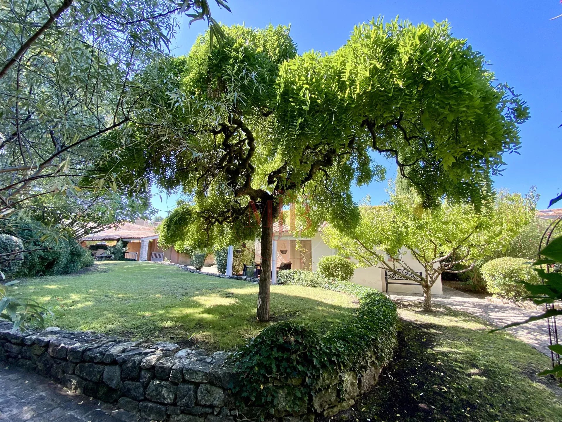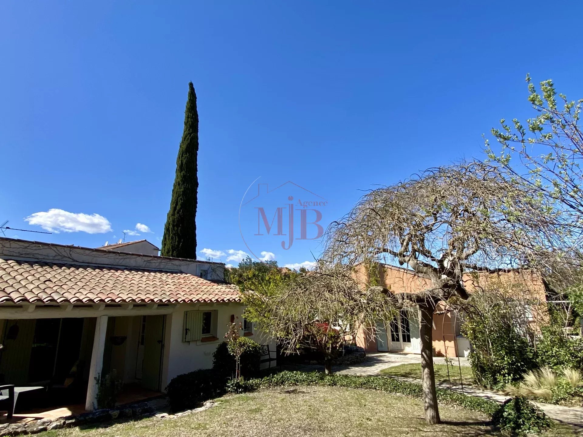 Vous recherchez un bien en périphérie de la ville d'Aix en Provence , un accès rapide à la gare TGV et de l’aéroport, l’agence MJB vous propose au cœur d’un petit village Provençal une chaleureuse et fonctionnelle réalisation tout en plain-pied , selon une architecture réalisée autour d un très beau volume central et deux dépendances , l ensemble sur un très beau terrain clos d’une surface de 1600 M2 environ , joliment arboré et paysagé. Au calme absolu et disposant A PIED de toutes les commodités nécessaires (commerces, écoles , structures médicales, bus etc...) , cette charmante et confortable maison ne souffre d aucune nuisance .