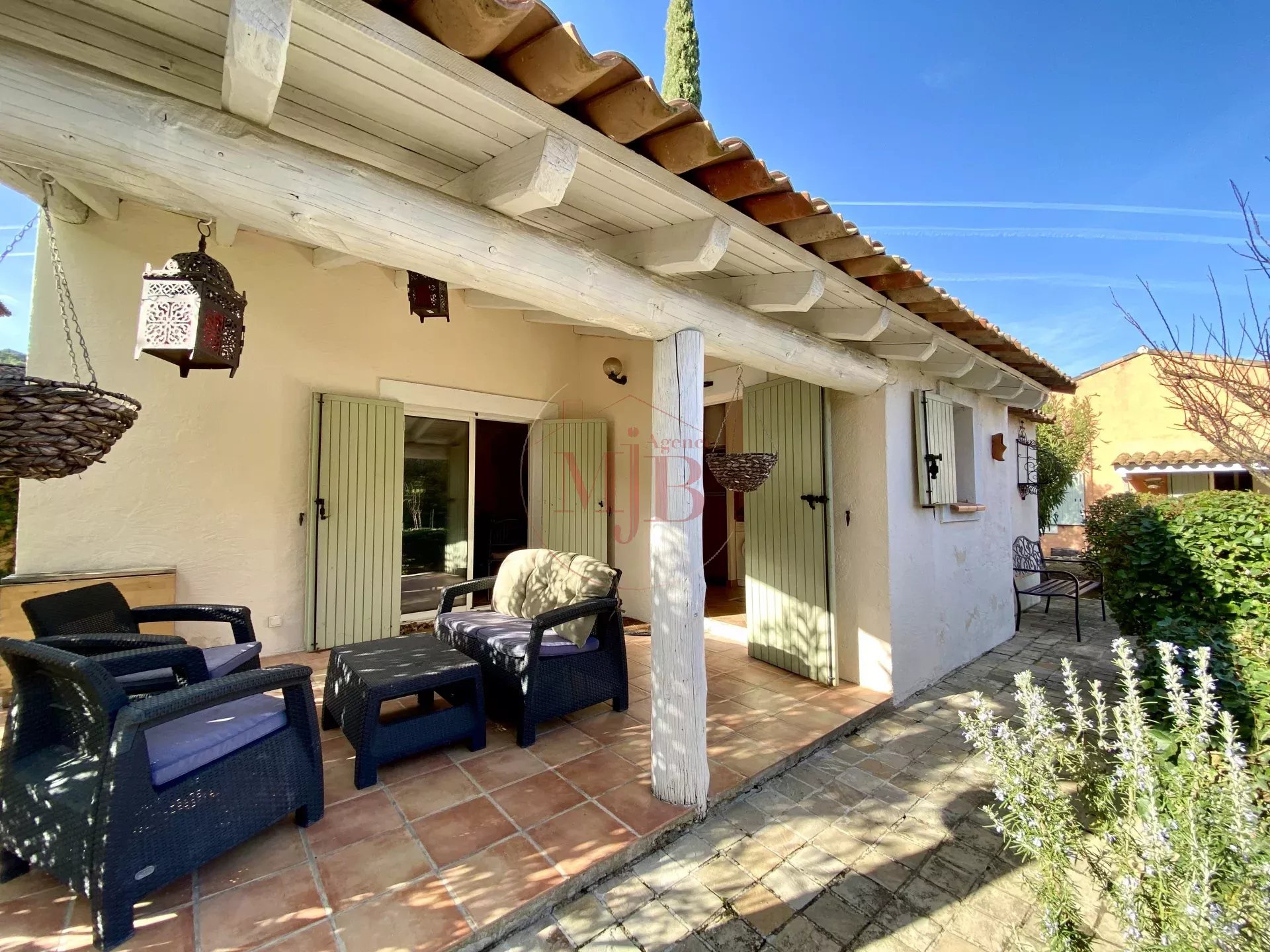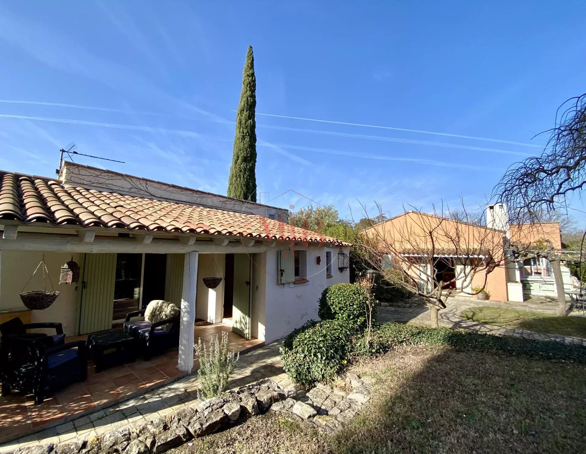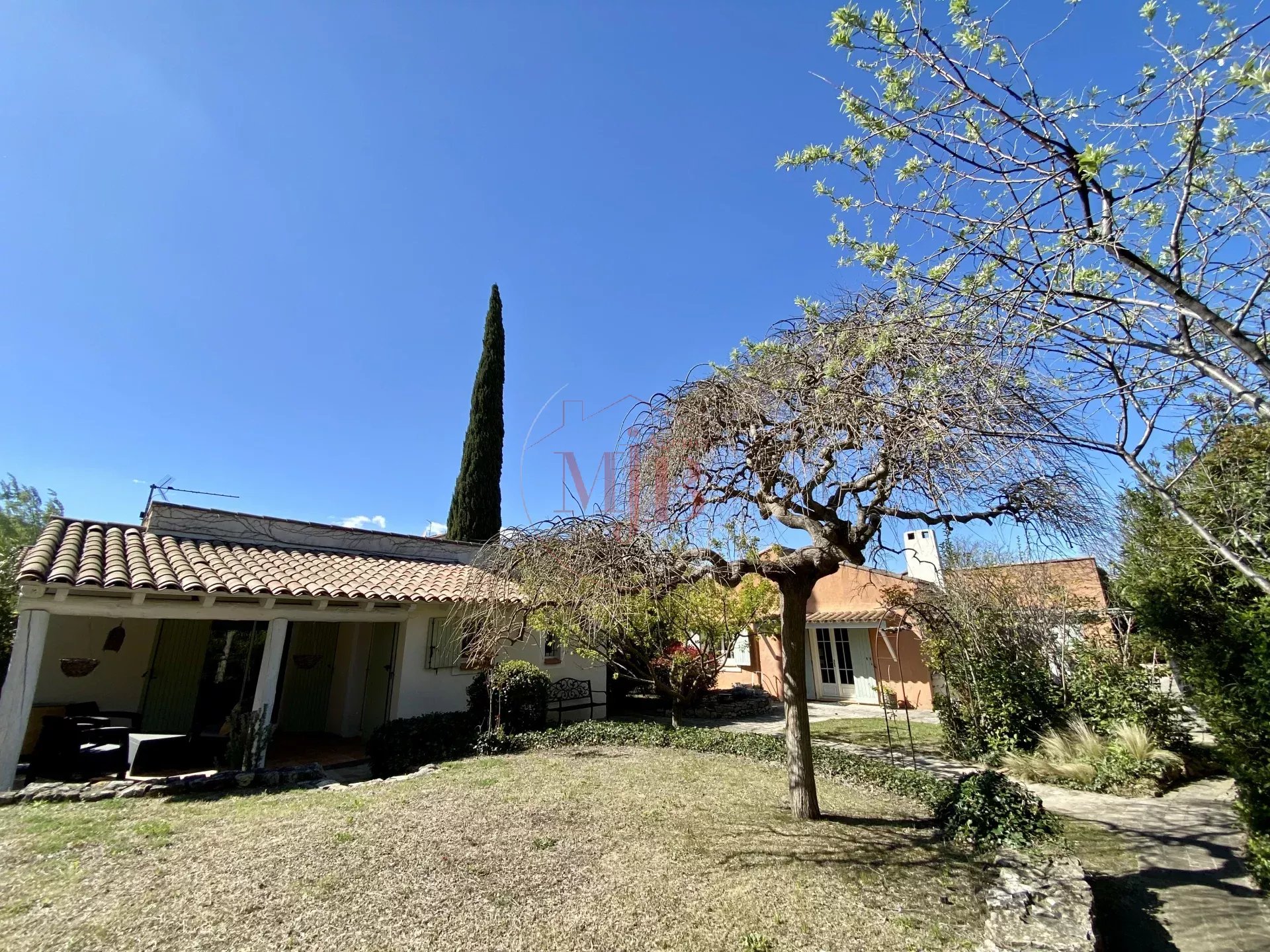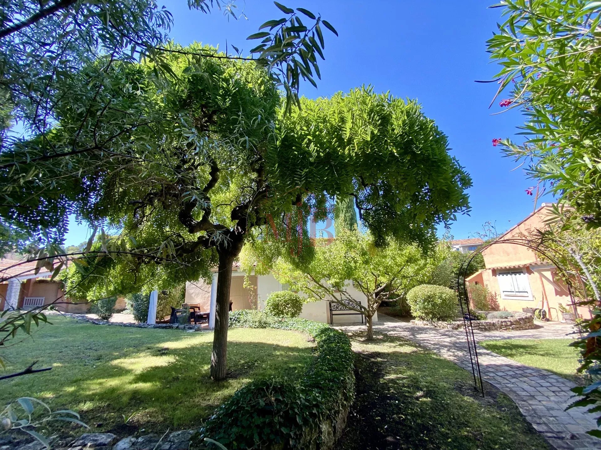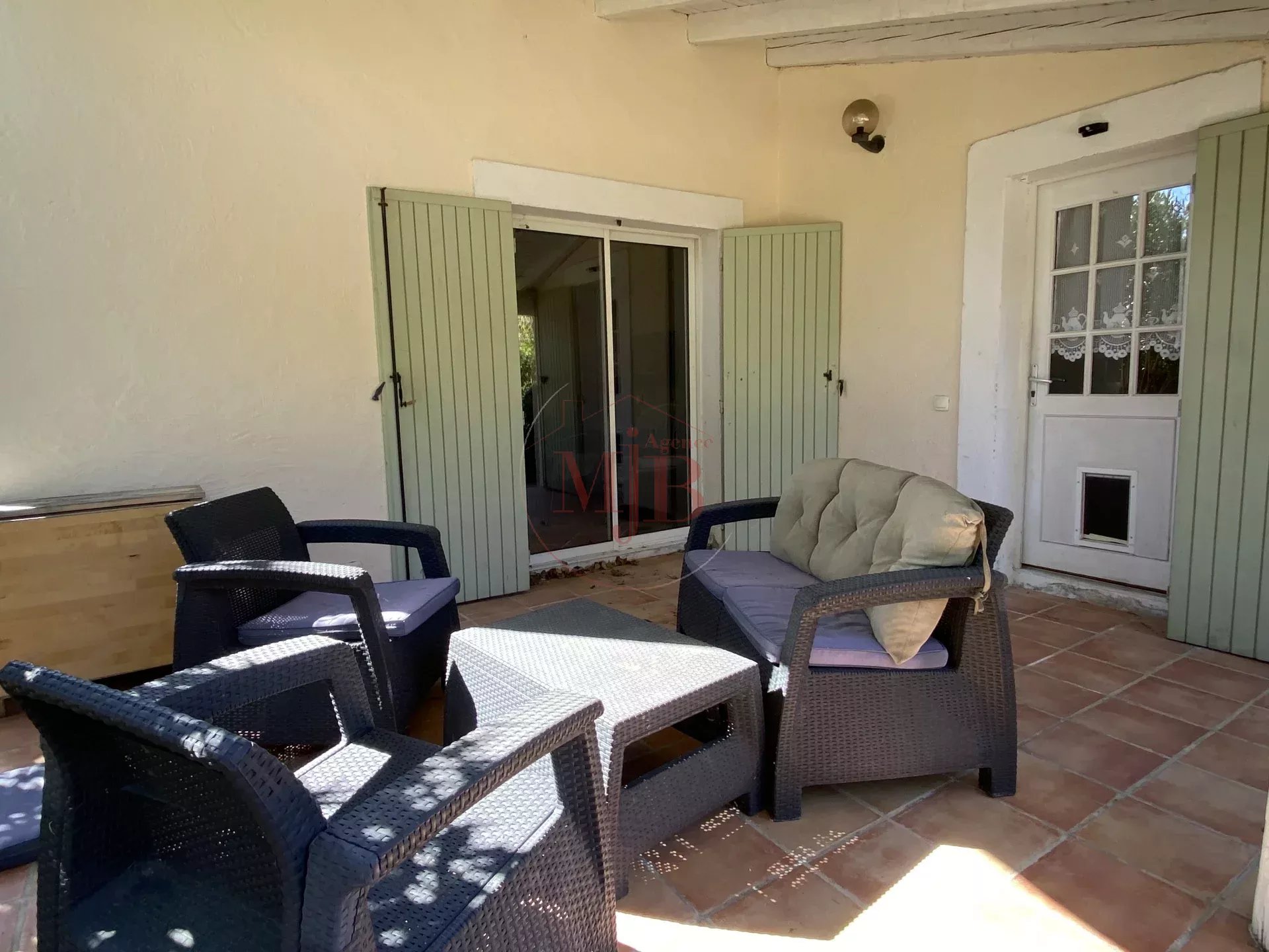 Vous recherchez un bien en périphérie de la ville d'Aix en Provence , un accès rapide à la gare TGV et de l’aéroport, l’agence MJB vous propose au cœur d’un petit village Provençal une chaleureuse et fonctionnelle réalisation tout en plain-pied , selon une architecture réalisée autour d un très beau volume central et deux dépendances , l ensemble sur un très beau terrain clos d’une surface de 1600 M2 environ , joliment arboré et paysagé. Au calme absolu et disposant A PIED de toutes les commodités nécessaires (commerces, écoles , structures médicales, bus etc...) , cette charmante et confortable maison ne souffre d aucune nuisance .