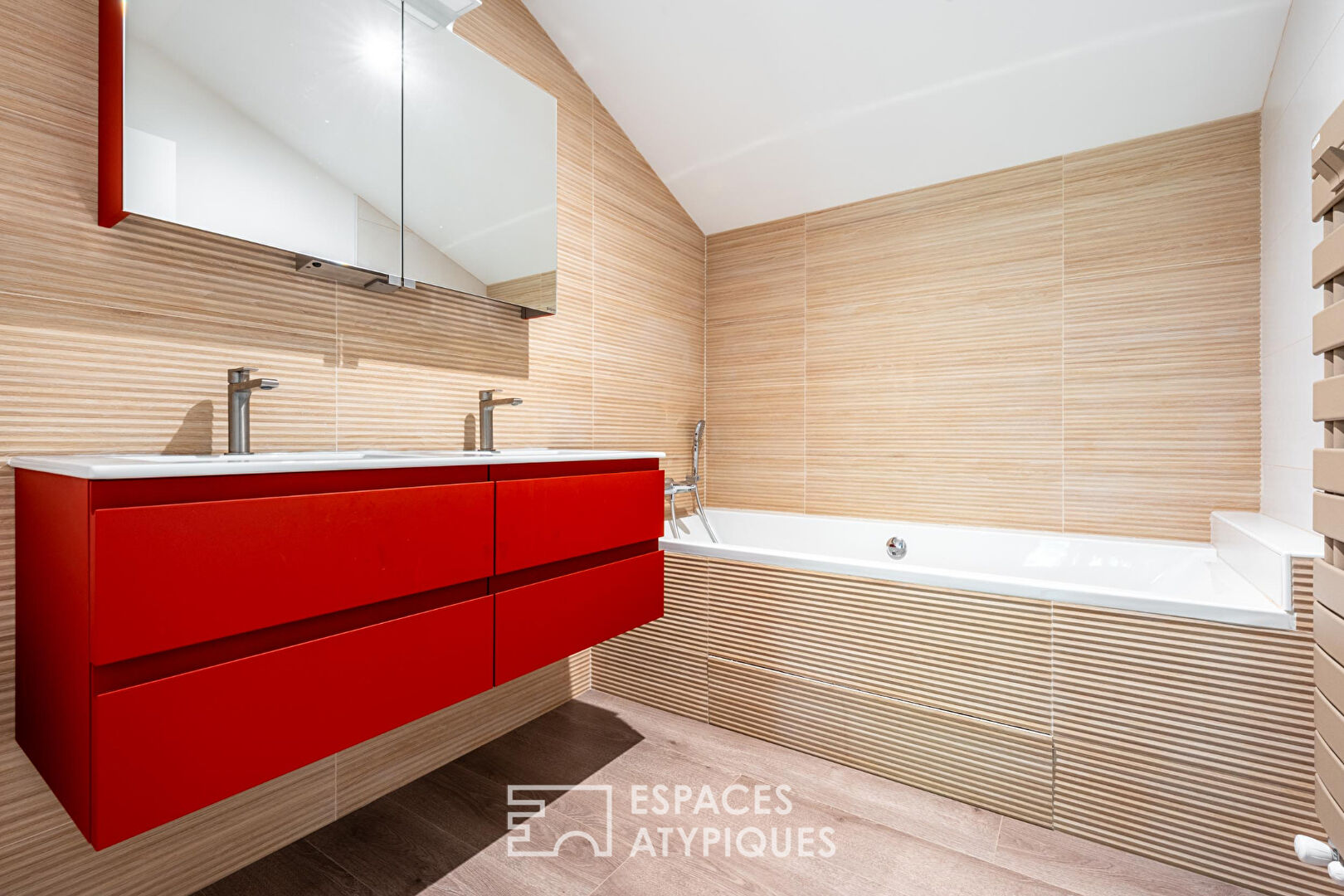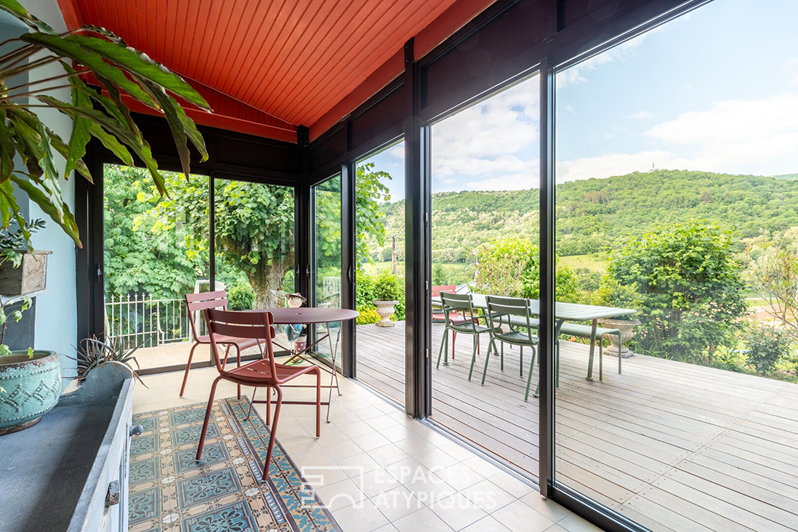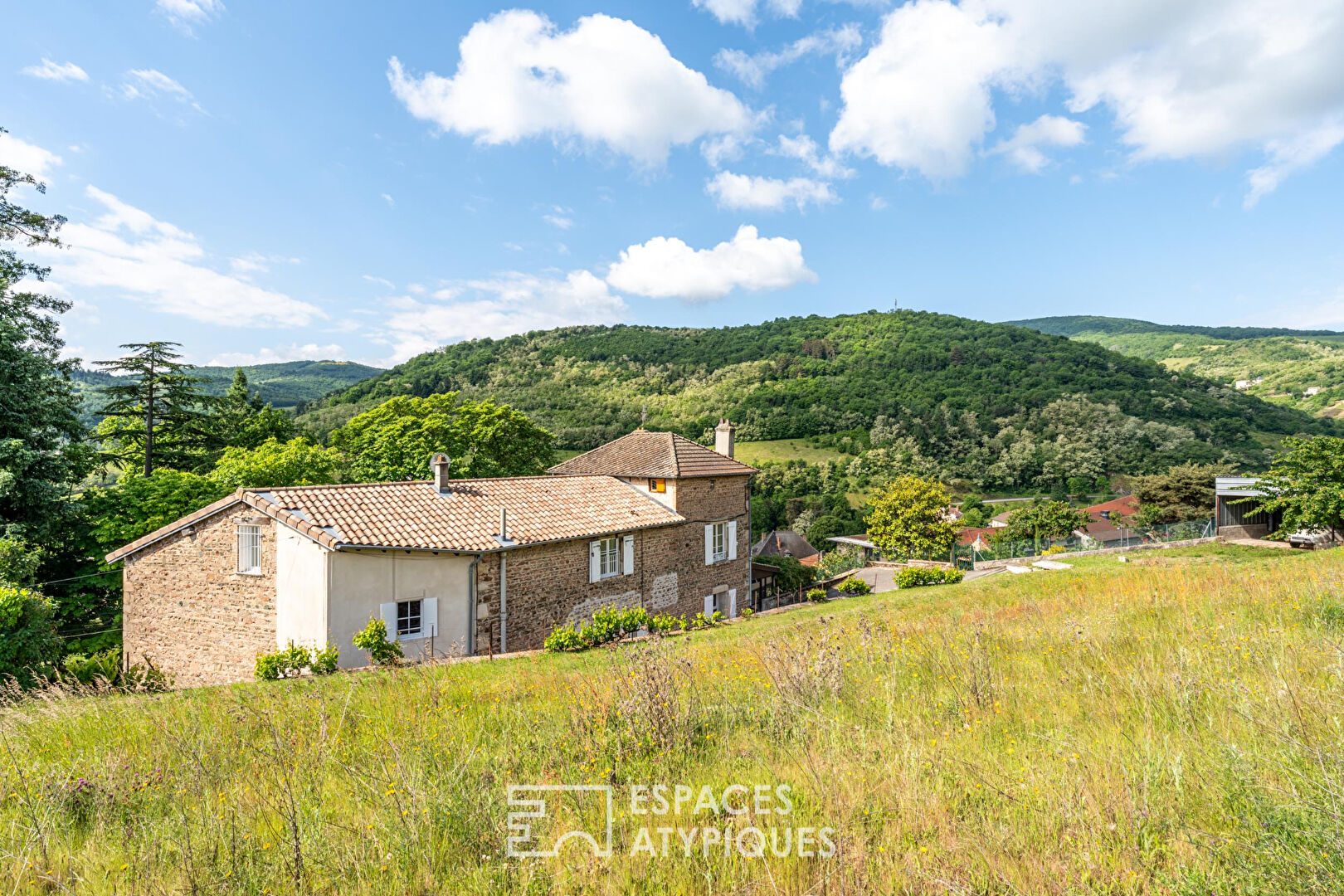 En plein coeur des vignes du Beaujolais, à Beaujeu, cette superbe propriété en pierre de 281m² habitables, 437m² de surface totale, a été entièrement rénovée en 2023 avec des matériaux nobles et des finitions de qualité. Érigée sur un terrain de plus de 20 000 m², elle offre un cadre de vie exceptionnel, paisible et sans aucun vis-à-vis, avec une vue dégagée sur la campagne environnante. La maison principale, d'une surface de 218 m², s'organise sur plusieurs niveaux. Au rez-de-chaussée, un vaste salon cathédrale baigné de lumière s'ouvre sur une salle à manger chaleureuse avec cuisine ouverte, complétée par un espace buanderie/cellier, une salle d'eau avec WC, ainsi qu'une véranda donnant sur le jardin. A l'étage, une grande suite parentale avec salle d'eau et dressings occupe tout un niveau. Le second étage accueille deux belles chambres, une salle de bains et un WC indépendant, tandis que les combles aménagés offrent un espace supplémentaire pouvant faire office de bureau ou de chambre. Adjacente, une maison d'invités indépendante de 63m² offre un séjour avec cuisine ouverte, une salle d'eau et un WC au rez-de-chaussée. A l'étage, deux chambres et une salle de bains avec WC, puis une troisième chambre avec WC sous les combles, permettent d'envisager des réceptions familiales, un logement indépendant ou un projet locatif. L'extérieur, soigneusement entretenu, propose une grande terrasse idéale pour les repas en plein air, un jardin arboré aux allures bucoliques, ainsi qu'une source naturelle. Plusieurs dépendances complètent l'ensemble : un abri pour voitures, un caveau et deux caves. Le chauffage est assuré par une chaudière à pellets, garantissant confort et performance énergétique. Le haut du terrain est classé en zone agricole. Idéalement située, à seulement 5 minutes du centre du village avec commerces et écoles, cette propriété se trouve à 15 minutes de l'autoroute et de la gare de Belleville, et à 30 minutes de la gare TGV de Mâcon. CLASSE ENERGIE : C / CLASSE CLIMAT : A Montant moyen estimé des dépenses annuelles d'énergie pour un usage standard, indexées aux années 2021, 2022, 2023 : entre euros et euros Contact : Héloïse - 06 68 44 82 46 Héloïse Restier (EI) Agent Commercial - Numéro RSAC : 828 524 058 - Villefranche-Tarare.