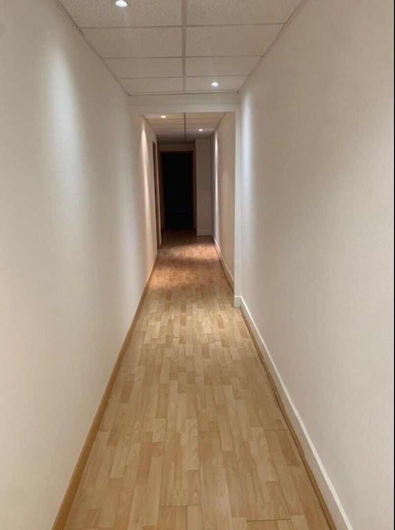 Dans un immeuble fibré, surface de116m² lumineux au 2ème étage avec 4 bureaux séparés, une grande entrée, 3 WC. Ascenseur demi palier. RJ 45, double vitrage PVC volets roulants. Calme. Loyer HT. Charges : 150 euros / mois y compris chauffage (chaudière gaz à condensation). Dépôt de garantie 1 terme. Taxe foncière à la charge du preneur. Honoraires agence à la charge du locataire : 1710 euros HT