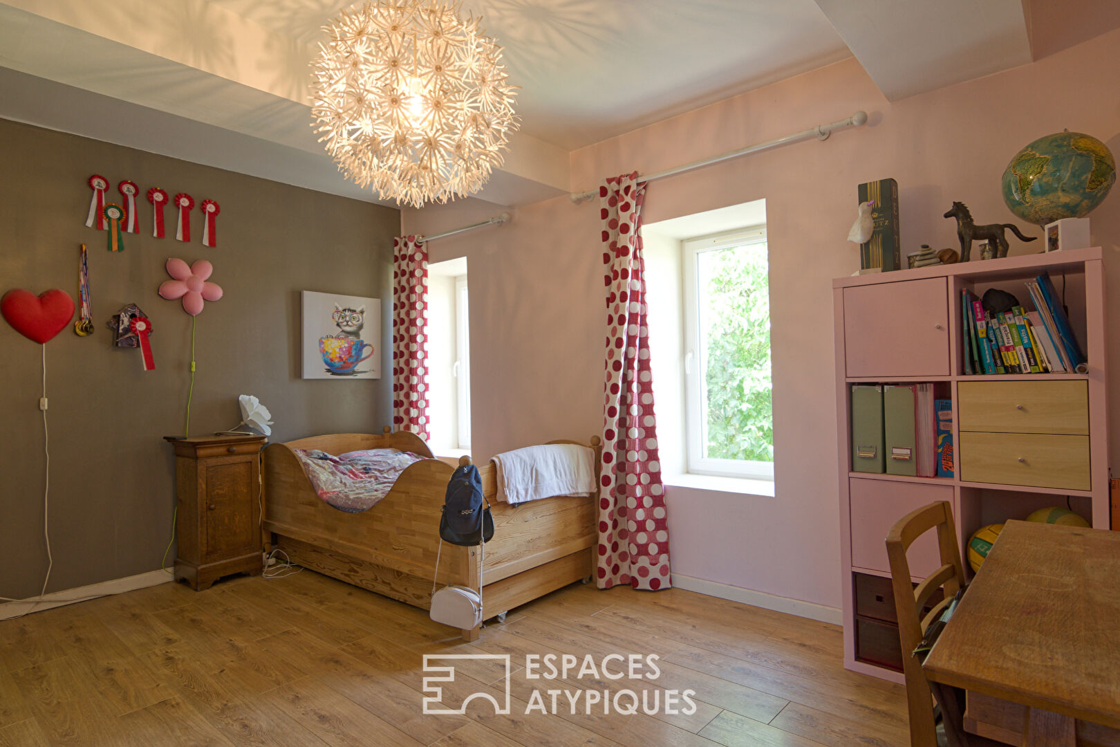 A Cesny-les-Sources, à 25 minutes de Caen, au coeur d'un environnement calme, cette propriété singulière réunit deux habitations distinctes sur un même terrain. L'ensemble développe près de 450 m² habitables et offre de multiples possibilités grâce à ses dépendances et ses extérieurs. Ancien relais de poste, le lieu conjugue charme de l'ancien et confort d'une rénovation récente, idéal pour une résidence familiale, une maison secondaire ou un projet de gîte. La première bâtisse, d'une surface généreuse de 292 m², séduit par l'authenticité de ses matériaux. Les pierres apparentes, les poutres et la cheminée créent une atmosphère chaleureuse. Une cuisine ancienne donnant sur son jardin intimiste, une salle à manger et une chambre avec salle d'eau composent les espaces de vie. Quatre chambres, un grenier aménagé et un bel escalier ancien prolongent cette ambiance de maison de caractère. Si quelques travaux de rafraîchissement sont à envisager, le potentiel demeure considérable. La seconde maison, de 160 m², a bénéficié d'une rénovation intégrale. Elle accueille un vaste séjour ouvert sur la cuisine, un bureau et trois chambres aux finitions contemporaines. Les extérieurs complètent harmonieusement l'ensemble et les dépendances offrent de nouvelles perspectives d'aménagement, renforçant l'attrait patrimonial de la propriété. L'emplacement bénéficie de la proximité des écoles et des commerces, facilitant le quotidien tout en préservant un cadre de vie paisible. Ce bien rare, doté d'une double habitation et d'un cachet historique, constitue une belle opportunité. Les diagnostics énergétiques révèlent des performances respectables, avec un classement en C et D. Une propriété atypique où patrimoine et modernité s'harmonisent pour donner vie à un projet de caractère. CLASSE ENERGIE Maison 1 : D / CLASSE CLIMAT : B CLASSE ENERGIE Maison 2 : C / CLASSE CLIMAT : A Montant estimé des dépenses annuelles d'énergie sur prix moyen des énergies indexés sur l'année 2021, 2022 et 2023 ( abonnement compris) : Maison 1 : entre 2280 euros et 3170 euros / Maison 2 : entre 1390 euros et 1950 euros Les informations sur les risques auxquels ce bien est exposé sont disponibles sur le site Géorisques : www.georisques.gouv.fr Maxime GERMAIN : 07.43.30.12.90 Agent commercial indépendant, EI RSAC : 854 027 737 COUTANCES