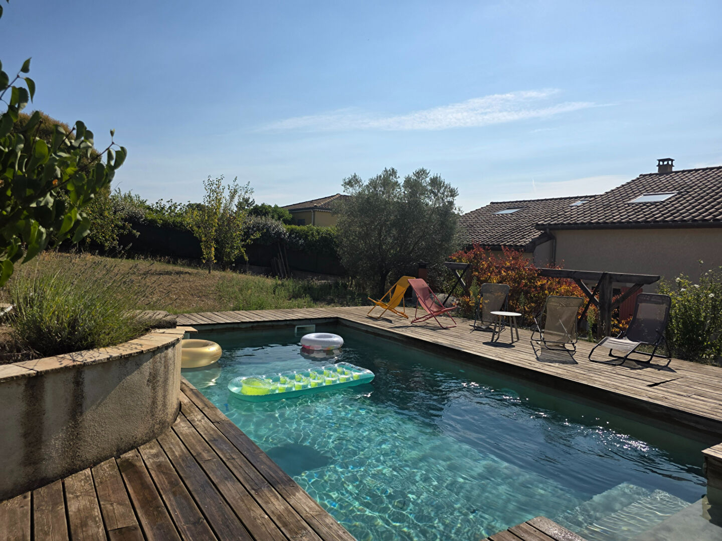 Maison d'env 200 m² hab comprenant cuisine équipée ouverte sur séjour/salon avec baie vitrée, 6 chambres ; 3 au RDC (dont une suite parentale (dressing /salle d'eau), 1 salle d'eau, 1 salle de bains avec baignoire et douche, 3 toilettes, mezzanine, bureau, buanderie, garage, abri jardin, aspiration centralisée, pompe à chaleur air/eau avec plancher rafraichissant au rdc, piscine sur 996m² de terrain clos. Classe énergie C . Honoraires à la charge du vendeur.