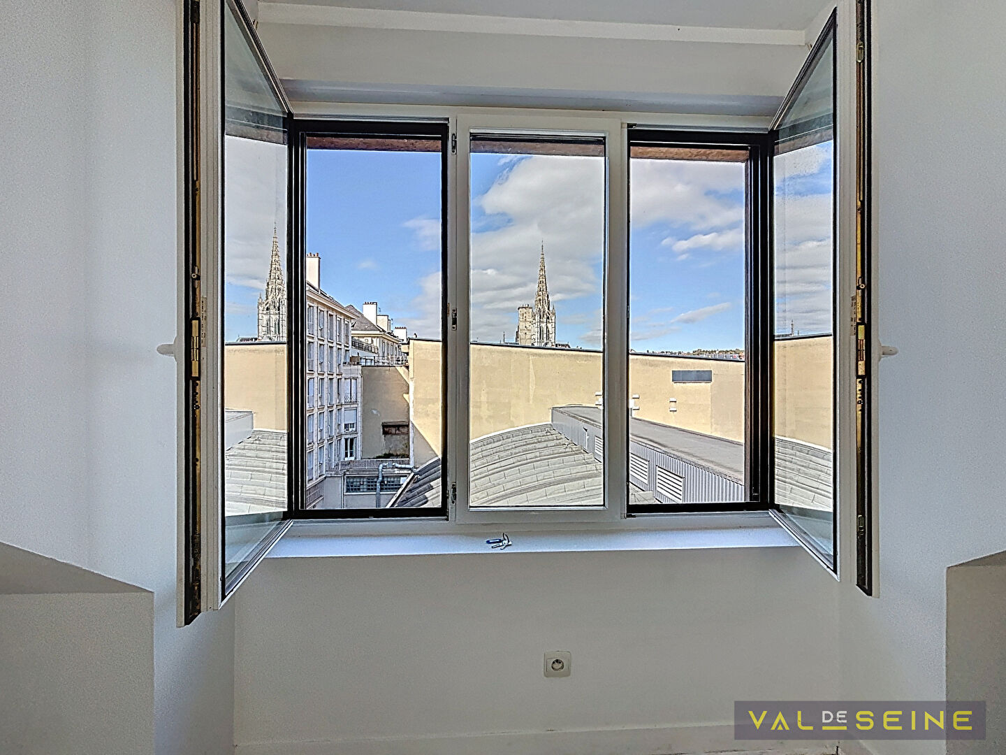 ROUEN HYPER CENTRE - REPUBLIQUE L'agence VAL DE SEINE vous propose cet appartement de 47 m² (Loi Carrez) 65 m² au sol situé au dernier étage avec une vue imprenable sur la Cathédrale de Rouen. Cet appartement se compose d'un séjour/salon avec cuisine ouverte aménagée - 2 chambres, bureau, salle de douches et WC. Provisions sur charges trimestrielles : 226 euros comprenant chauffage collectif gaz par radiateurs, entretien des communs (2x/mois), électricité des communs, assurance de l'immeuble. Syndic bénévole. Les informations sur les risques auxquels ce bien est exposé sont disponibles sur le site Géorisques : www.géorisques.gouv.fr Pas de procédure en cours * Prix de vente honoraires agence inclus : 168 000 euros Prix de vente hors honoraires agence : 161 000 euros Honoraires agence TTC charge acquéreur : 7 000 euros (4.35 % honoraires TTC à la charge de l'acquéreur.)
