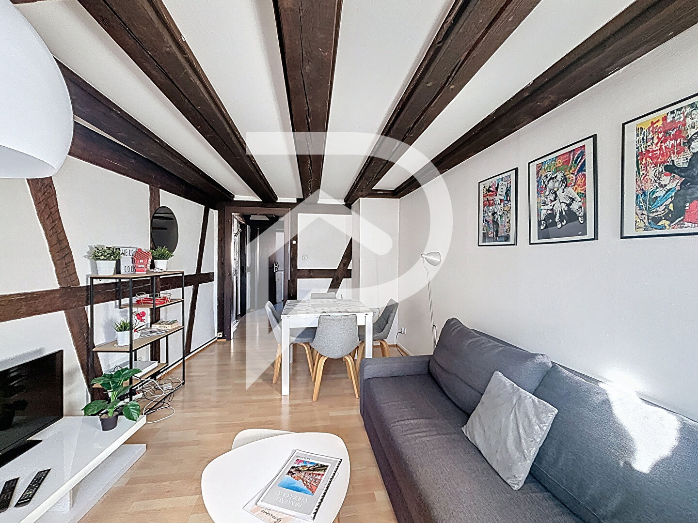 Situé au coeur du centre historique de Colmar à quelques pas des commerces et commodités, ce duplex de 41 m² séduit par son authenticité et son atmosphère chaleureuse. Il offre une cuisine individuelle aménagée, un salon-séjour lumineux sublimé par ses poutres apparentes, puis à l'étage, une chambre et une salle d'eau récemment rénovée accessibles par un escalier en colimaçon. Alliance parfaite entre cachet d'époque et confort moderne, ce bien conviendra aussi bien en résidence principale qu'en pied-à-terre. Il représente également une excellente opportunité pour un investissement locatif saisonnier avec une forte rentabilité à la clé. Une adresse rare au coeur de l'Alsace, entre patrimoine et vie citadine. Pour le découvrir, contactez dès maintenant Stéphane Plaza Immobilier Colmar-Sud et organisez une visite. (5.75 % honoraires TTC à la charge de l'acquéreur.) Copropriété de 32 lots - dont 23 lots habitation. Charges annuelles : 1900 euros. Sophie BRUNO (EI) Agent Commercial - Numéro RSAC : 903 830 396 - COLMAR.