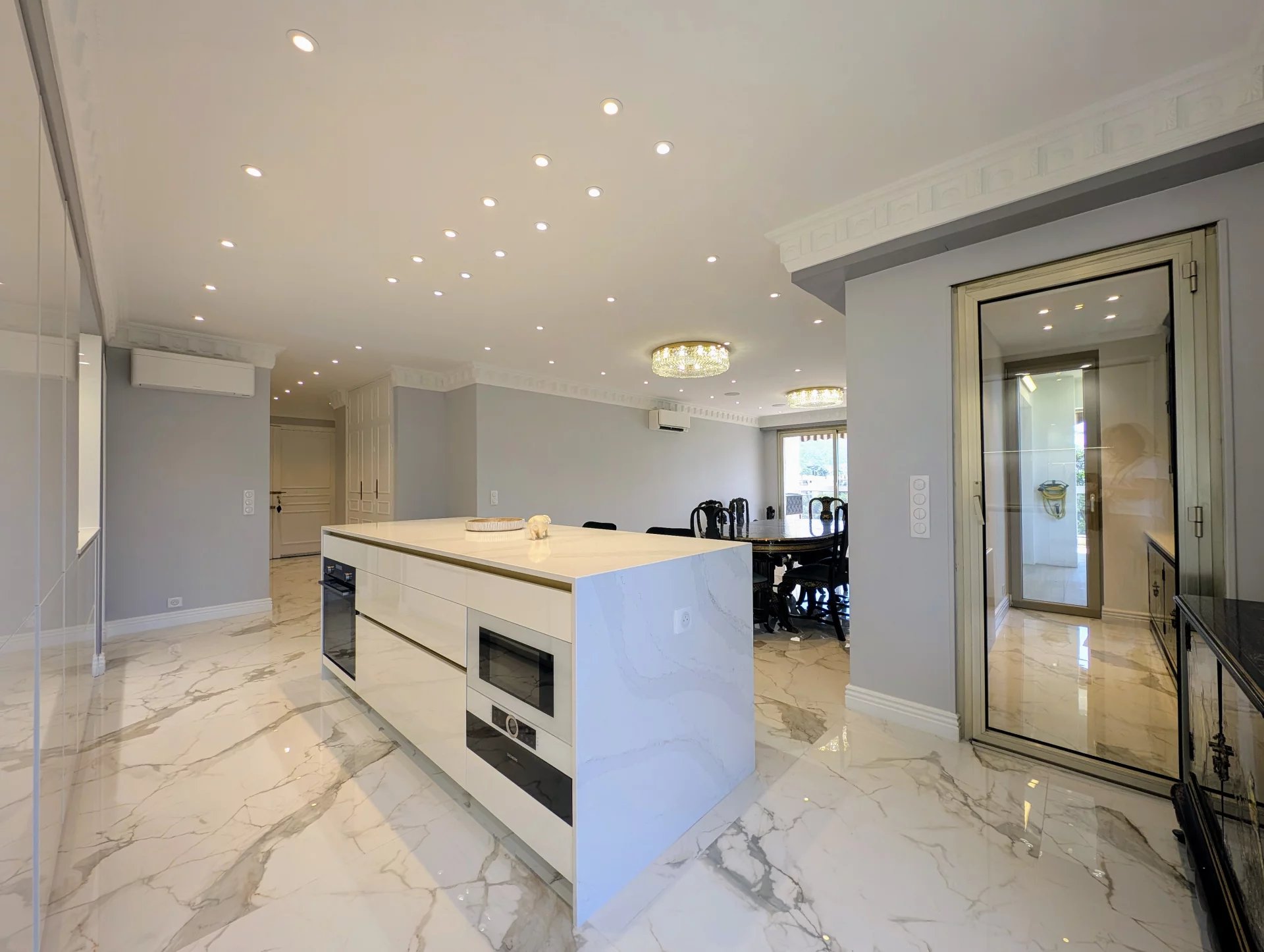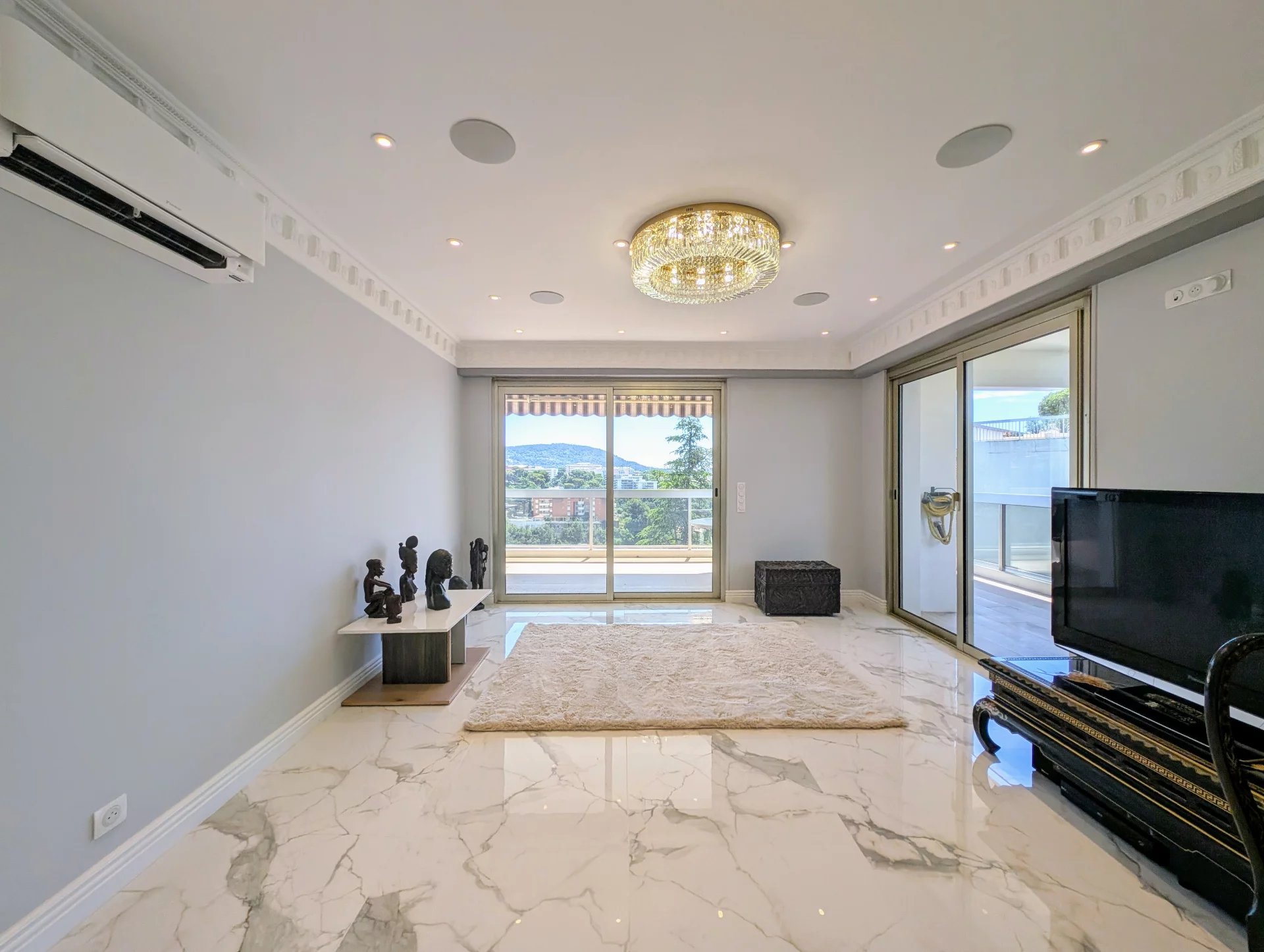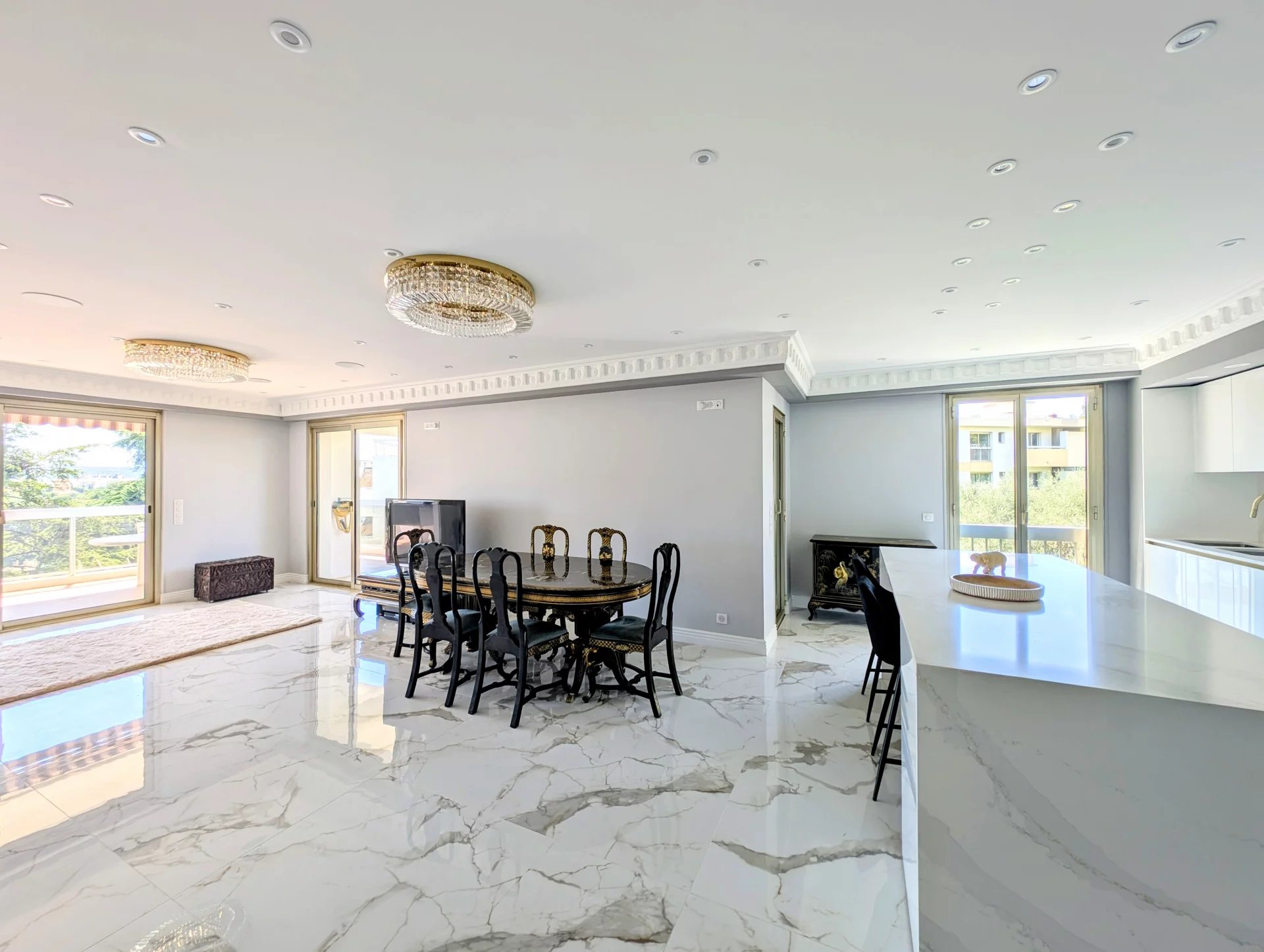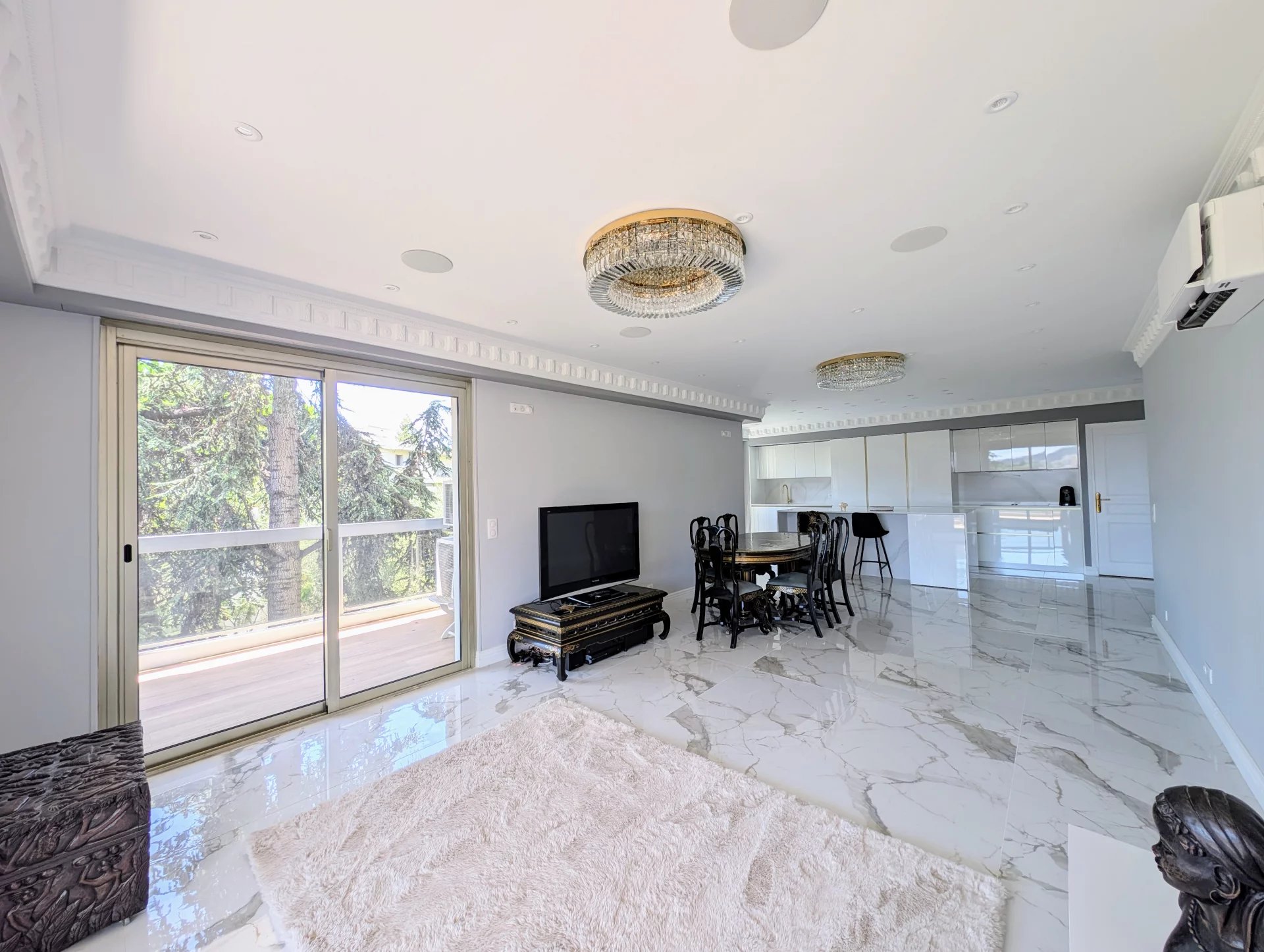 Dans la prestigieuse résidence sécurisée « Les Jardins de Gairaut » avec gardien, découvrez ce splendide appartement de 113 m², entièrement rénové avec des matériaux de très haute qualité. Niché au 4ᵉ étage, il bénéficie d’un environnement verdoyant et paisible, tout en restant proche des commodités et du parc Chambrun. La résidence offre un cadre de vie privilégié : une belle piscine aménagée avec parasols, douche, WC et espace barbecue pour vos soirées estivales, un sauna ainsi qu’une salle des fêtes à disposition des résidents. L’appartement propose un vaste séjour lumineux avec cuisine américaine moderne et équipée, trois chambres dont une suite parentale avec salle de douche et WC, une salle de bains indépendante avec WC, ainsi qu’un bureau séparé. Le parquet raffiné dans les chambres apporte une atmosphère chaleureuse et élégante. Côté extérieur, vous profiterez de deux terrasses : une spacieuse de 23 m² attenante au séjour, avec vue panoramique et aperçu mer idéale pour vos repas et moments de détente, ainsi qu’une seconde de 7 m² côté chambres. Domotique, climatisation, parking intérieur et cave complètent ce bien d’exception. Un appartement idéal pour vivre au calme, dans la verdure, avec tout le confort moderne, à seulement quelques minutes du centre-ville. Informations sur les risques auxquels ce bien est exposé disponibles sur georisques.gouv.fr