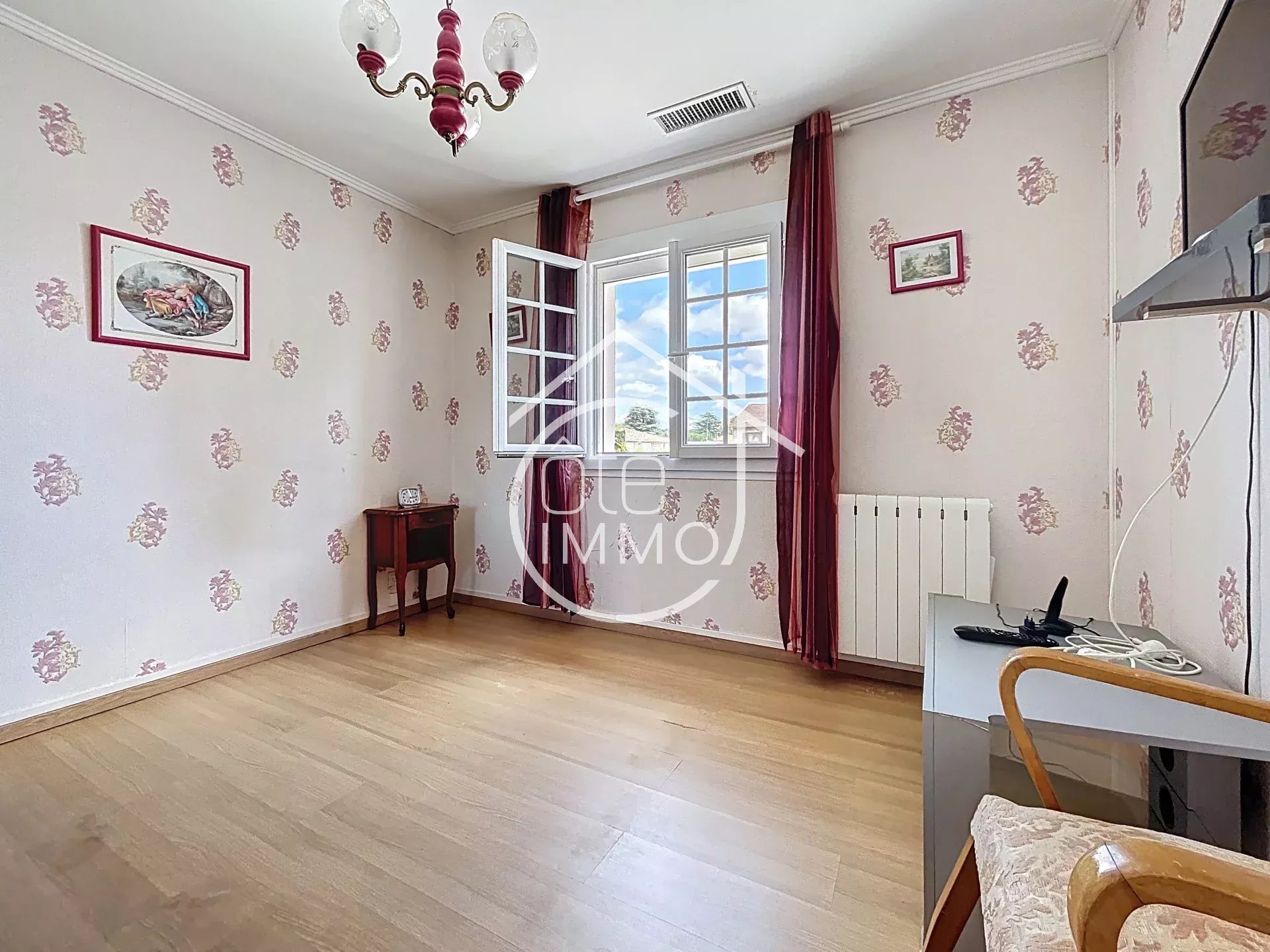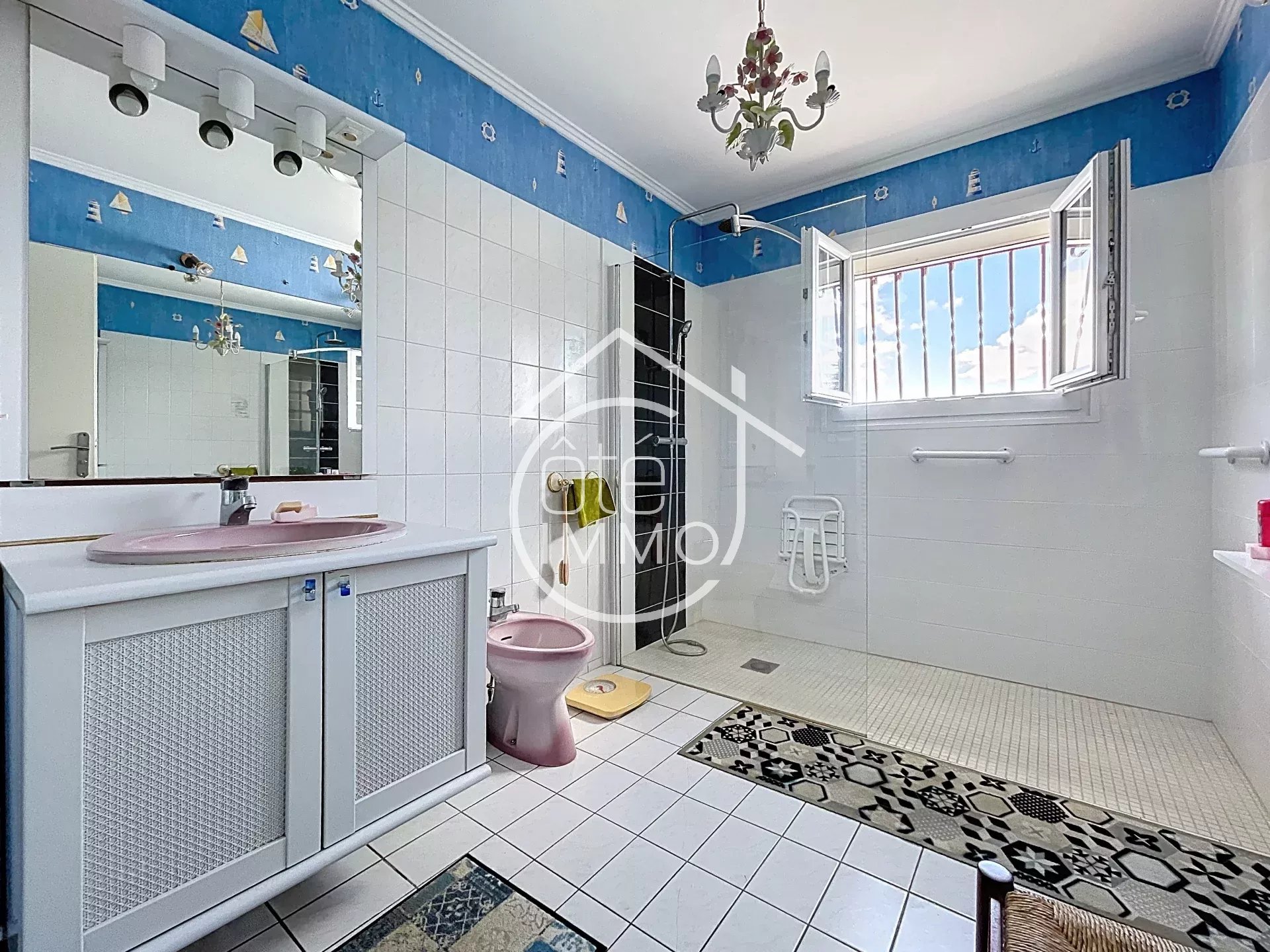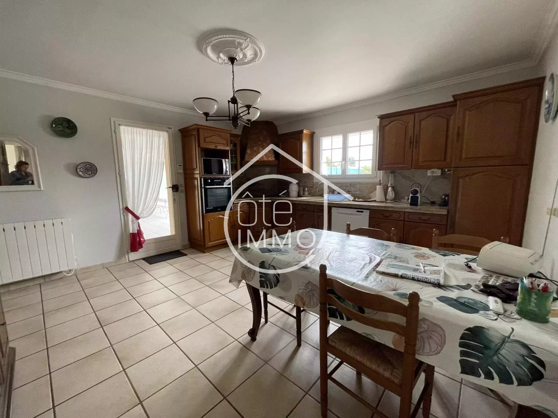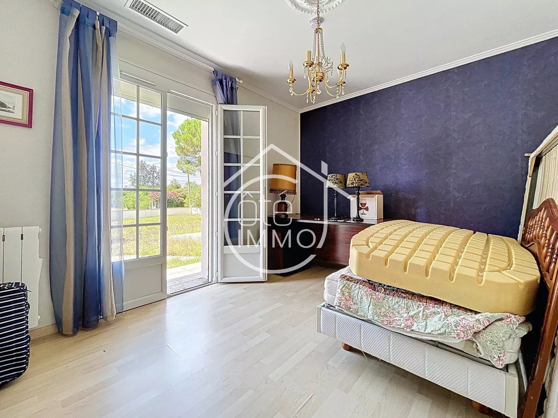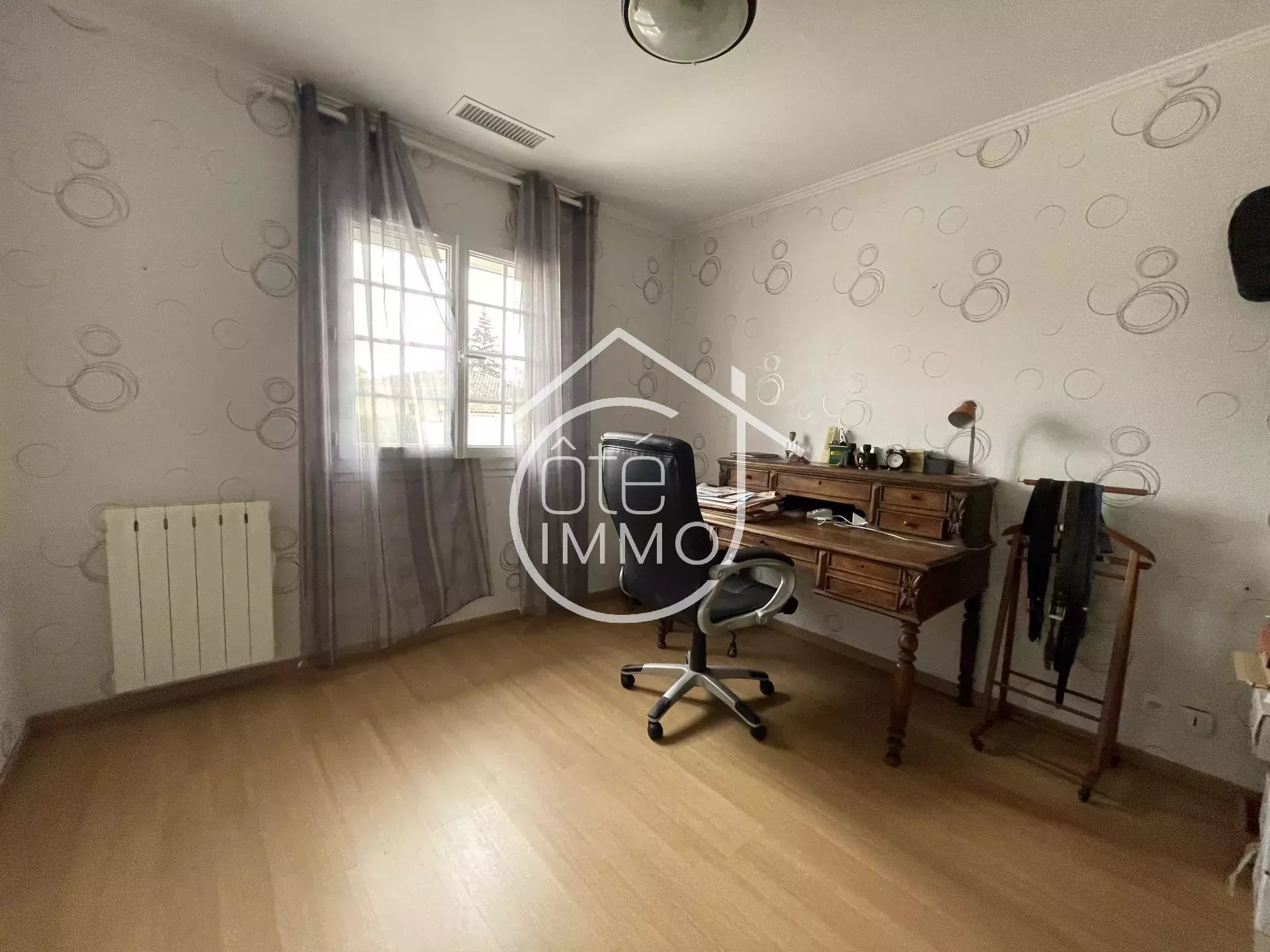 Coté Immo Castillon vous propose de découvrir cette charmante maison de 125 m² sur sous-sol total, idéalement située à Saint-Magne-de-Castillon, vendue avec locataires. Elle se compose d’une entrée menant à un vaste salon lumineux avec baie vitrée donnant sur la façade avant. La cuisine spacieuse comporte une arrière-cuisine fonctionnelle et un accès direct à la véranda, laquelle offre une vue agréable sur le jardin avec piscine. Côté nuit, un couloir dessert quatre grandes chambres, ainsi qu'une salle d’eau équipée d'une douche à l’italienne. Un vaste sous-sol avec garage, de même superficie que la maison, offre de grandes opportunités d'aménagement. La maison dispose de toutes les prestations modernes: pompe à chaleur, clim réversible, chauffe-eau thermodynamique et panneaux photovoltaïques pour amortir vos dépenses énergétiques. La présence d'un puits permet de remplir la grande piscine couverte de 15x8m. Très bien entretenue et entièrement clôturée, cette propriété dispose d’un portail électrique et d'un système d'alarme pour vous garantir une sérénité totale. Points techniques: - Piscine couverte de 15 m x 8 m - Panneaux photovoltaïques - Chauffe-eau thermodynamique - Système d’alarme - Assainissement : tout à l’égout - Chauffage électrique avec pompe à chaleur - Clim réversible - Puits Actuellement louée 850€ par mois, il s'agit d'une excellente opportunité pour tout investisseur cherchant un bien clefs en mains sans aucun travaux à prévoir.