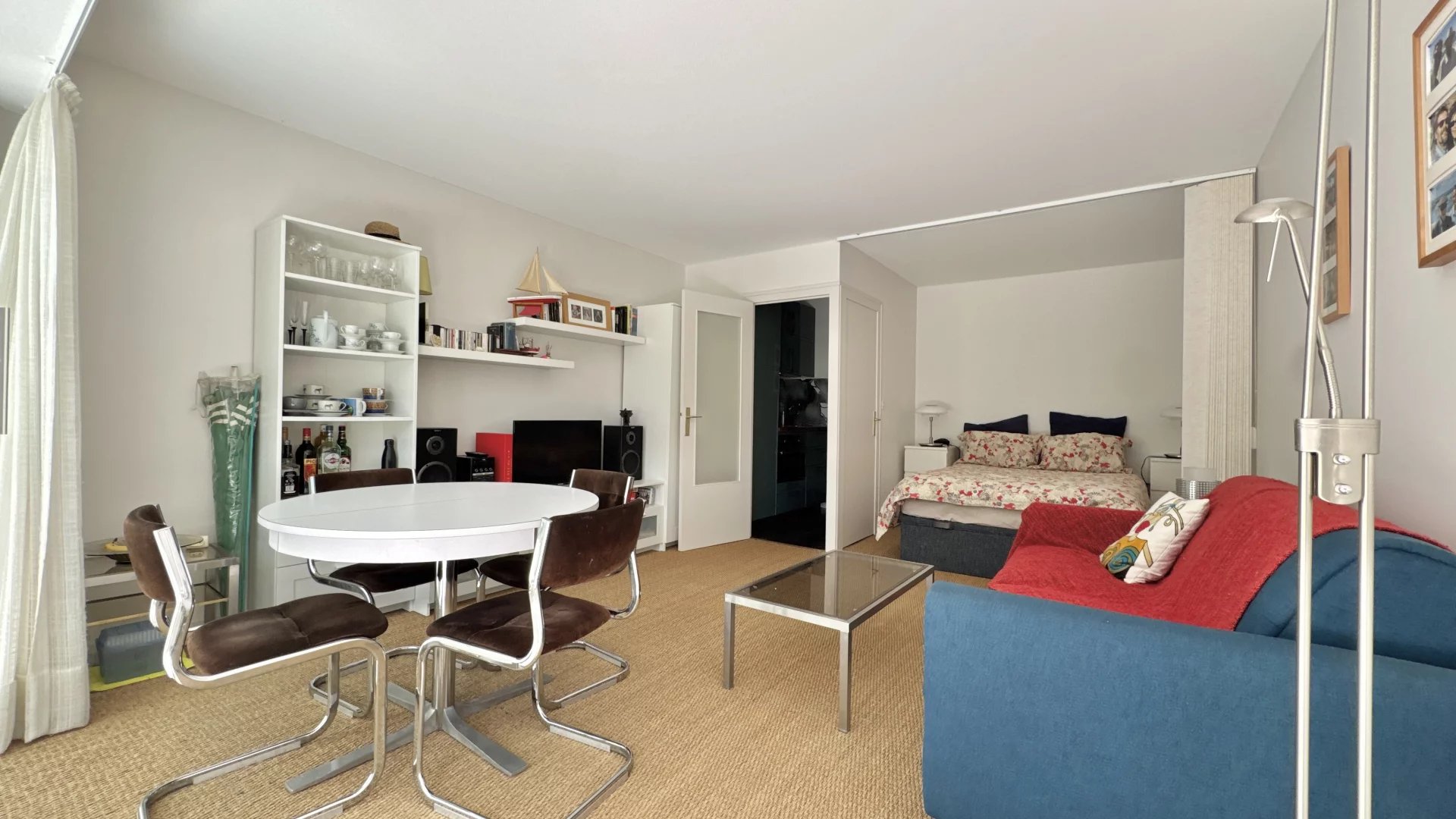 La Baule-les-Pins - AquaBaule – Coup de cœur assuré ! Situé dans un environnement calme et recherché, à deux pas de la plage et des commerces, ce charmant T1 bis vous séduira par sa luminosité et son agencement fonctionnel. Au sein d'une copropriété paisible, l'appartement se compose d’une entrée avec placard, d’un agréable séjour exposé plein sud ouvrant sur une vaste terrasse d’environ 17 m², d’une cuisine aménagée et équipée, d’un coin nuit en alcôve, ainsi que d’une salle d’eau avec WC. Une cave et une place de stationnement viennent compléter ce bien idéal en résidence principale, pied-à-terre ou investissement locatif.