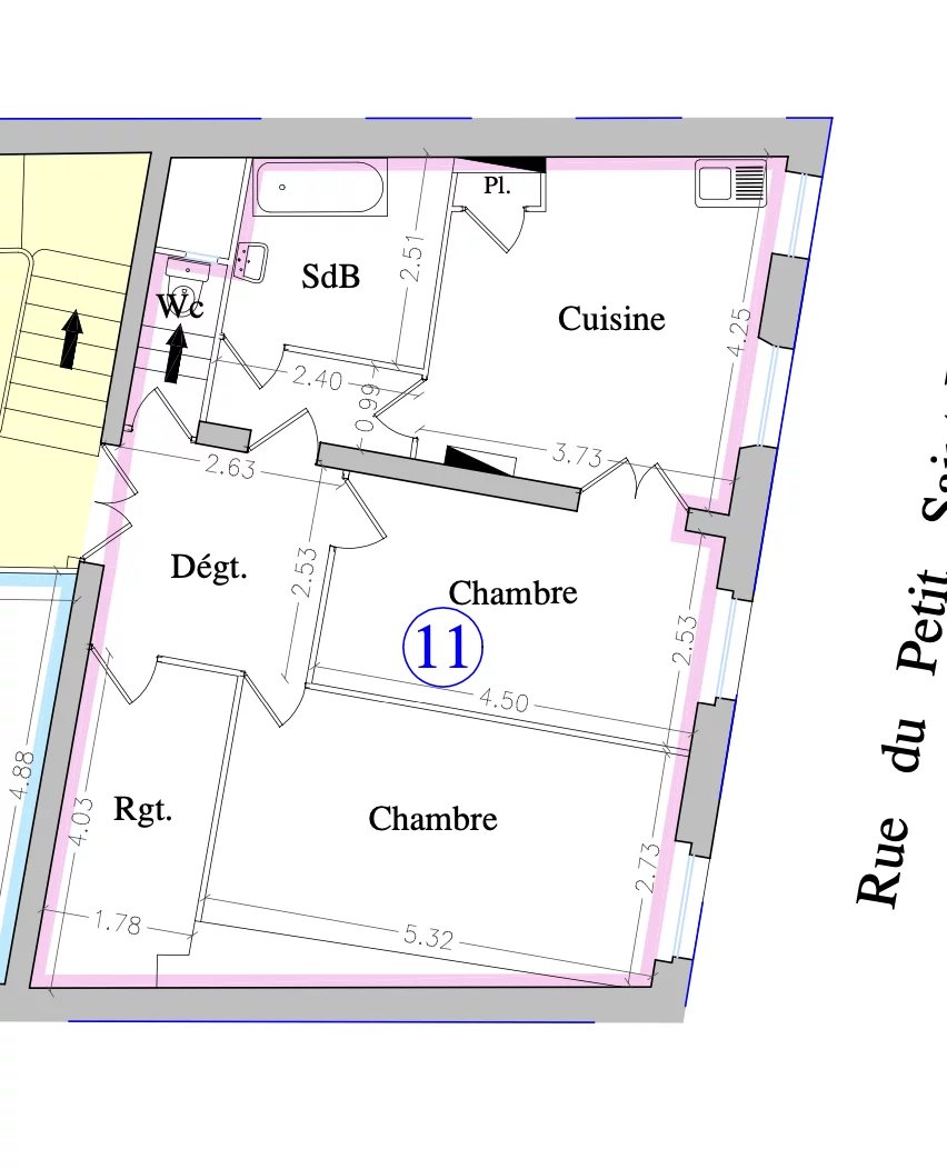 Ce dernier bénéficie d'une belle hauteur sous plafond et un plan modulable. il se prête parfaitement à un projet de colocation. de location meublée ou à la revente après travaux.