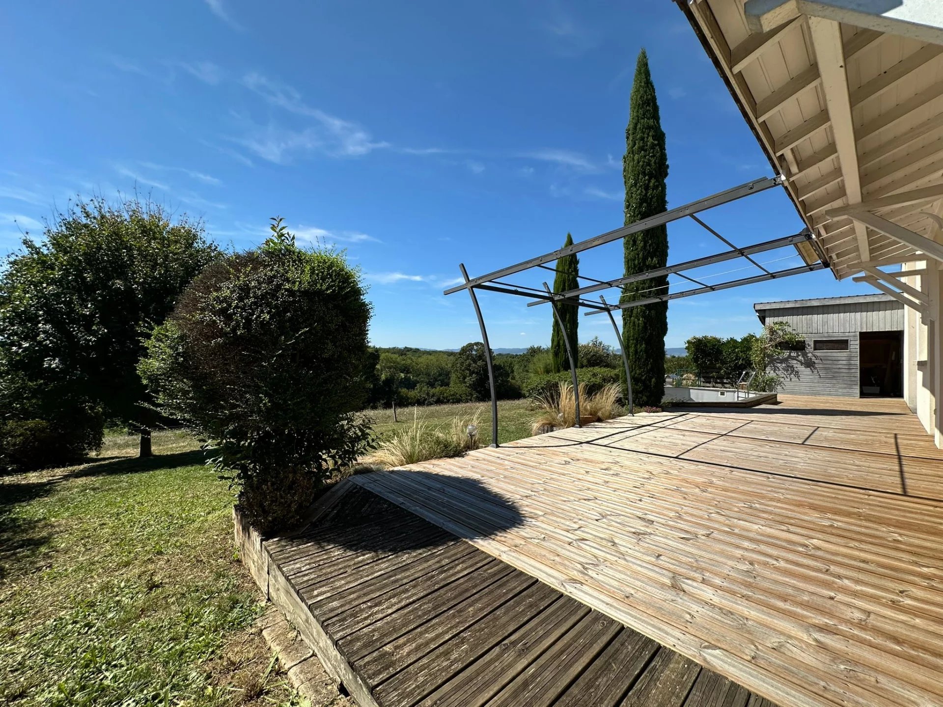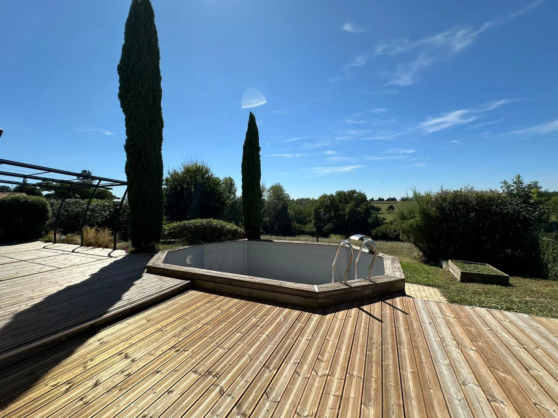 Cette grande maison familiale, construite au bout d'une impasse, au calme, bénéficie d'une vue imprenable sur la campagne environnante. Vous serez séduit par sa grande pièce de vie lumineuse, séparée par une verrière d'une cuisine fonctionnelle, avec accès direct à sa terrasse en bois et son espace piscine, parfait pour profiter de vos longues journées d'été. La maison principale dispose à l'étage de quatre chambres avec placard, dont une suite parentale avec sa salle d'eau et son dressing. Une salle de bain complète la partie nuit. Vous trouverez au rez-de-chaussée un bureau pouvant faire office de 5ème chambre si besoin. Attenant à la maison, un grand garage avec à l'étage un studio indépendant comprenant un petit salon, des toilettes, une chambre et une salle d'eau. Cette maison ne nécessite aucun gros travaux pour y habiter, et les diagnostics de performance énergétique sont excellents. Pour tout renseignement complémentaire ou pour organiser un rendez-vous : Guillaume Habouzit au 0622563016, statut Gérant Valdor Belleville Immobilier - 7 Rue de la République - 69220 Belleville - 04 74 04 52 84. Les informations sur les risques auxquels ce bien est exposé sont disponibles sur le site Géorisques www.georisques.gouv.fr
