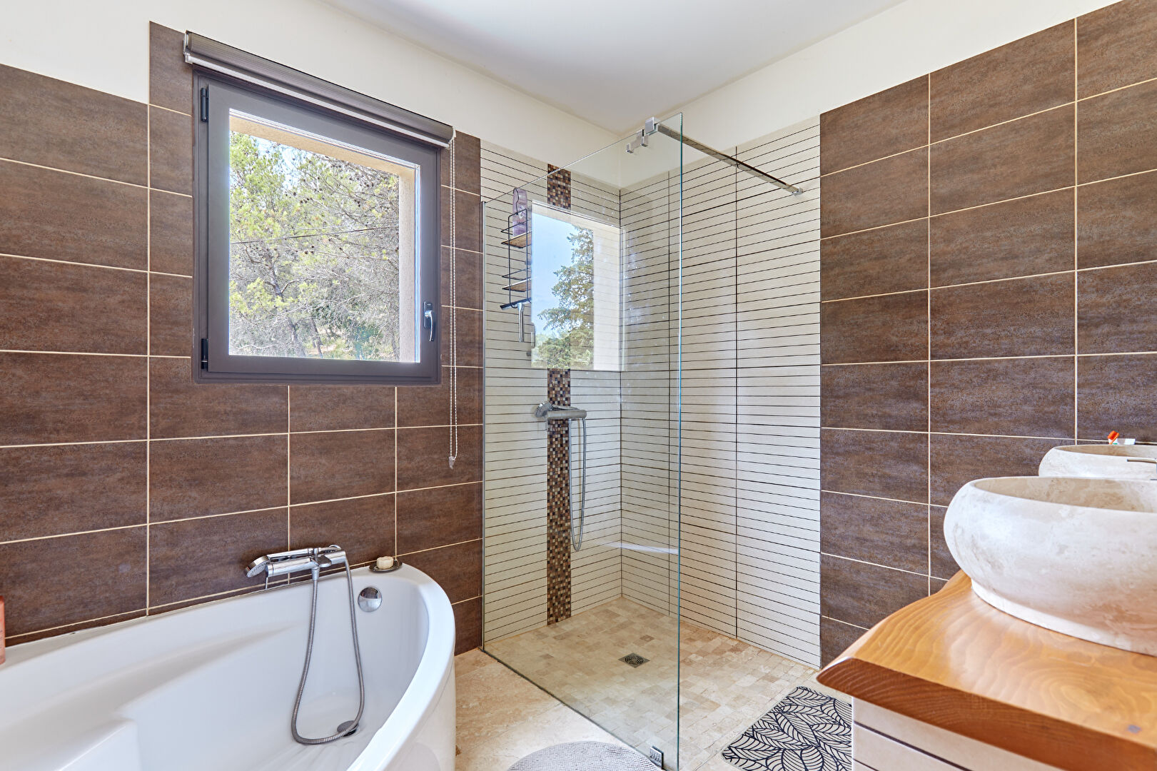 Votre agence ERA Action Immobilier vous présente en exclusivité cette belle maison clefs en main sur la charmante commune de Rognes : d'une surface de 144m² et sur une parcelle de 6 000m² constituant un vrai cocon de verdure, elle saura vous conquérir ! Edifiée de plain pied découvrez une entrée donnant sur un vaste espace de vie comprenant un espace salon avec belle hauteur sous plafond, une salle à manger avec sa cuisine ouverte de bonne facture. L'ensemble représentant un grand espace de vie ouvert de plus de 70m² avec de nombreuses ouvertures sur l'extérieur et auquel s'ajoute un appréciable cellier/buanderie. Un espace parental comprenant une chambre, une salle de bains avec douche ainsi qu'un WC indépendant. La maison propose également 2 autres belles chambres, un espace bureau, une seconde salle de bains avec douche et un second WC indépendant. Une dépendance de 35m², une belle piscine au sel, un local piscine ainsi que d'autres annexes de stockage viennent compléter ce bien. Des prestations et matériaux qualitatifs sont de mises : double vitrage aluminium avec rupture de pont thermique, chauffage et rafraichissement par le sol sur pompe à chaleur air/eau auquel s'ajouter une seconde pompe à chaleur air/air gainable, travertin, rambarde en fer forgé... Rare sur Rognes dans un secteur recherché pour son calme et sa proximité du village et de ses commodités, cette maison n'attend que vous ! A visiter de toute urgence !
