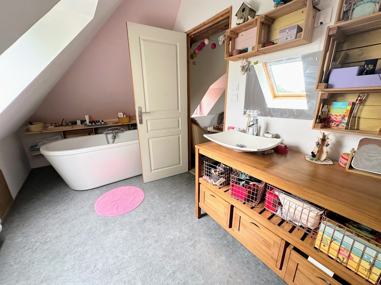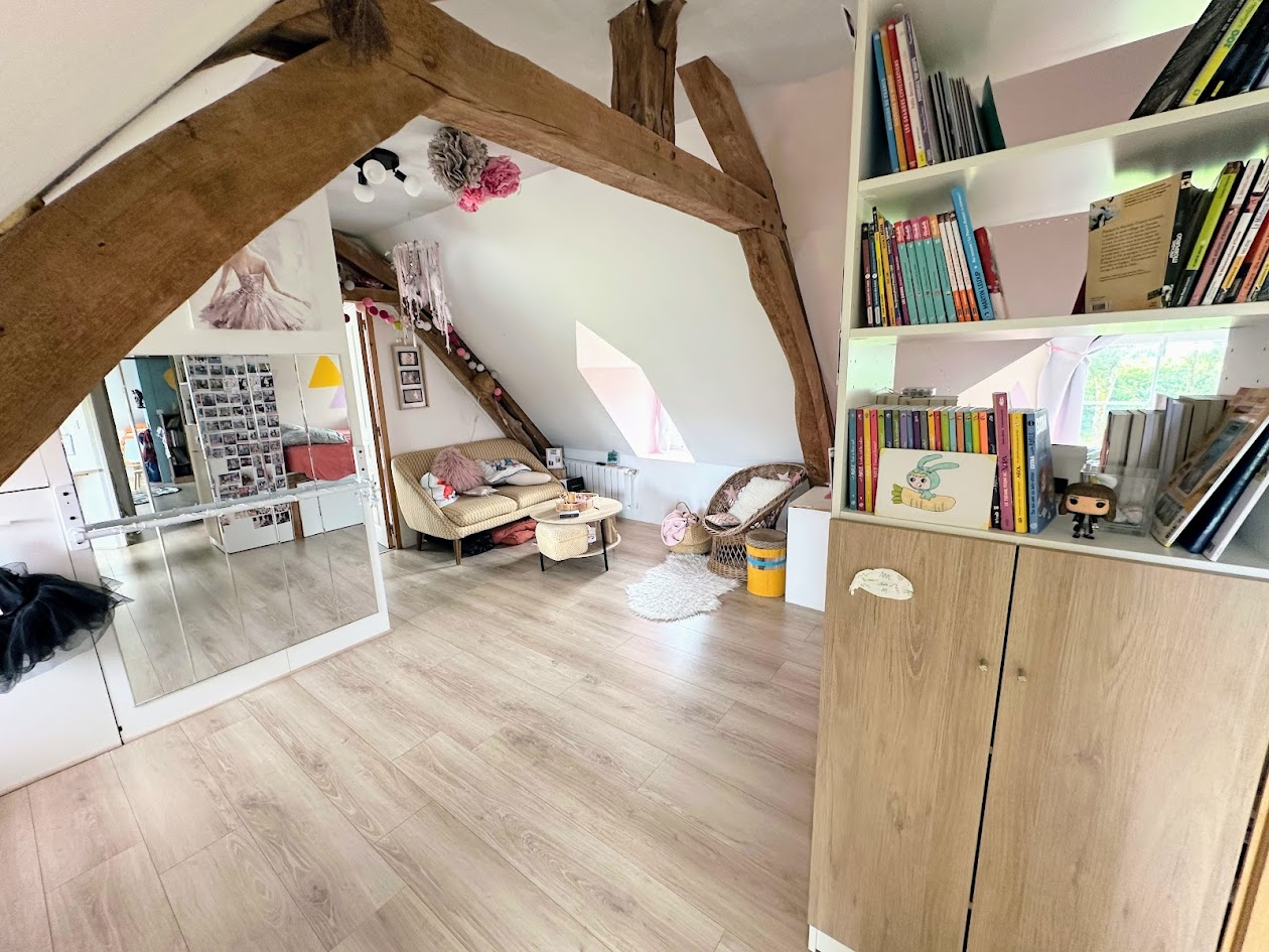 Élégante propriété bourgeoise de style normand sur parc paysagé de 6 500 m². Située dans un environnement exceptionnel, au coeur de la campagne normande, cette magnifique propriété de caractère allie charme, authenticité et confort. D'une surface habitable de 155 m², cette demeure bourgeoise à colombages et briques de Saint-Jean séduira les amateurs de belles pierres et d'histoire. La maison se compose comme suit : Au rez-de-chaussée : Une belle entrée distribue un salon chaleureux, une cuisine avec son coin repas, parfaite pour les moments en famille. Au premier étage : Un palier dessert deux grandes chambres lumineuses, une lingerie, ainsi qu'une salle de bain avec WC. Au second étage : Deux autres chambres, dont une suite avec salle de bain et WC privatifs, offrant une belle vue sur le parc. A l'extérieur : Le tout s'ouvre sur un somptueux parc arboré de 6 500 m², agrémenté d'une roseraie, véritable havre de paix aux mille senteurs. Une dépendance complète l'ensemble. Un bien rare, alliant cachet et cadre privilégié, à seulement quelques minutes des commodités. Coup de coeur assuré ? à visiter sans tarder !