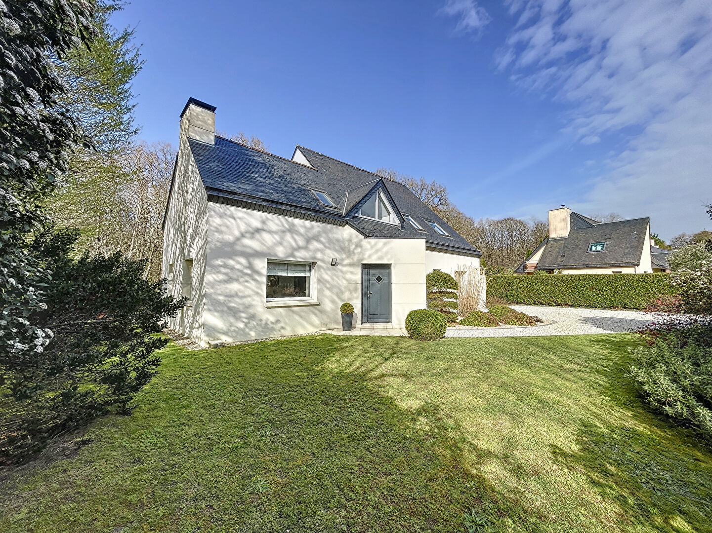 BRUZ commune de RENNES METROPOLE, dans un quartier prisé du Golf , superbe maison d'architecte de plus de 170 m² sur une belle parcelle d'environ 1 000 m², offrant au rdc : une pièce de vie spacieuse et lumineuse avec vue sur la forêt, une cuisine indépendante et fonctionnelle, une suite parentale avec salle d'eau et dressing, une buanderie et un garage attenant. A l'étage : une mezzanine dessert quatre belles chambres, une salle d'eau, une salle de bains et un grenier aménageable. La décoration est sobre et raffinée, les prestations de qualité. Terrain sans vis-à-vis, dans un environnement calme et verdoyant. Classe énergie C- Classe climat C. Montant estimé des dépenses annuelles d'énergie pour un usage standard entre 1 490 euros et 2 070 euros abonnement compris, prix moyen des énergies indexé au 01/01/2021. 698 000 euros honoraires inclus à la charge de l'acquéreur, 676 000 euros net vendeur. Etat des risques naturels et technologiques accessible sur le site Géorisques : www.georisques.gouv.fr (3.25 % honoraires TTC à la charge de l'acquéreur.)