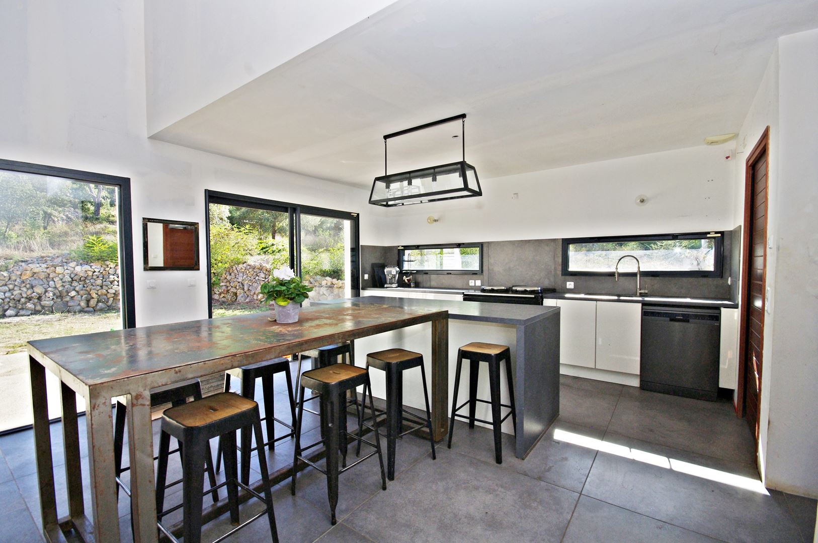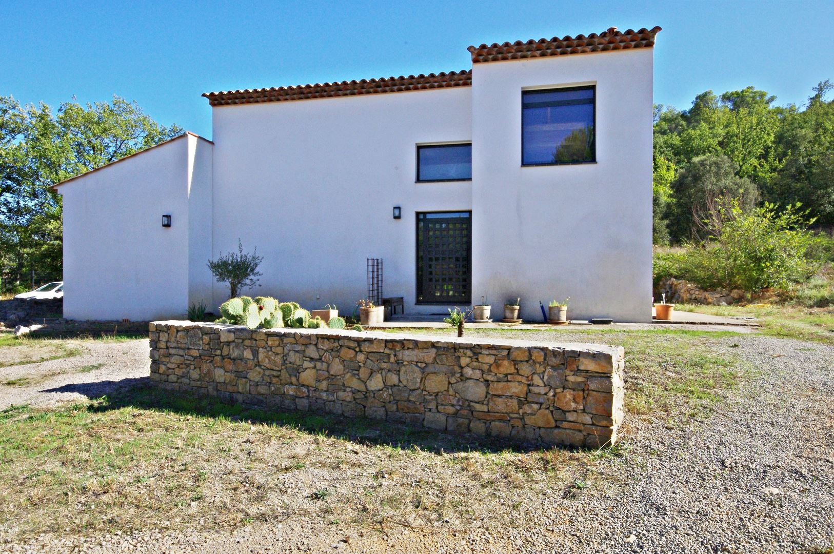 Villa d'architecte, de style contemporain de 2013, sur un terrain clos de 4 400 m², elle est située dans un des plus beaux quartiers du Thoronet. Au calme, construite avec des matériaux de belle facture, elle a un style résolument moderne.