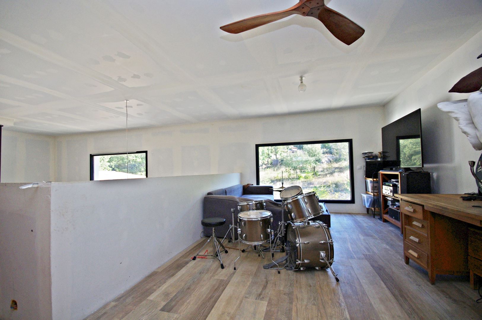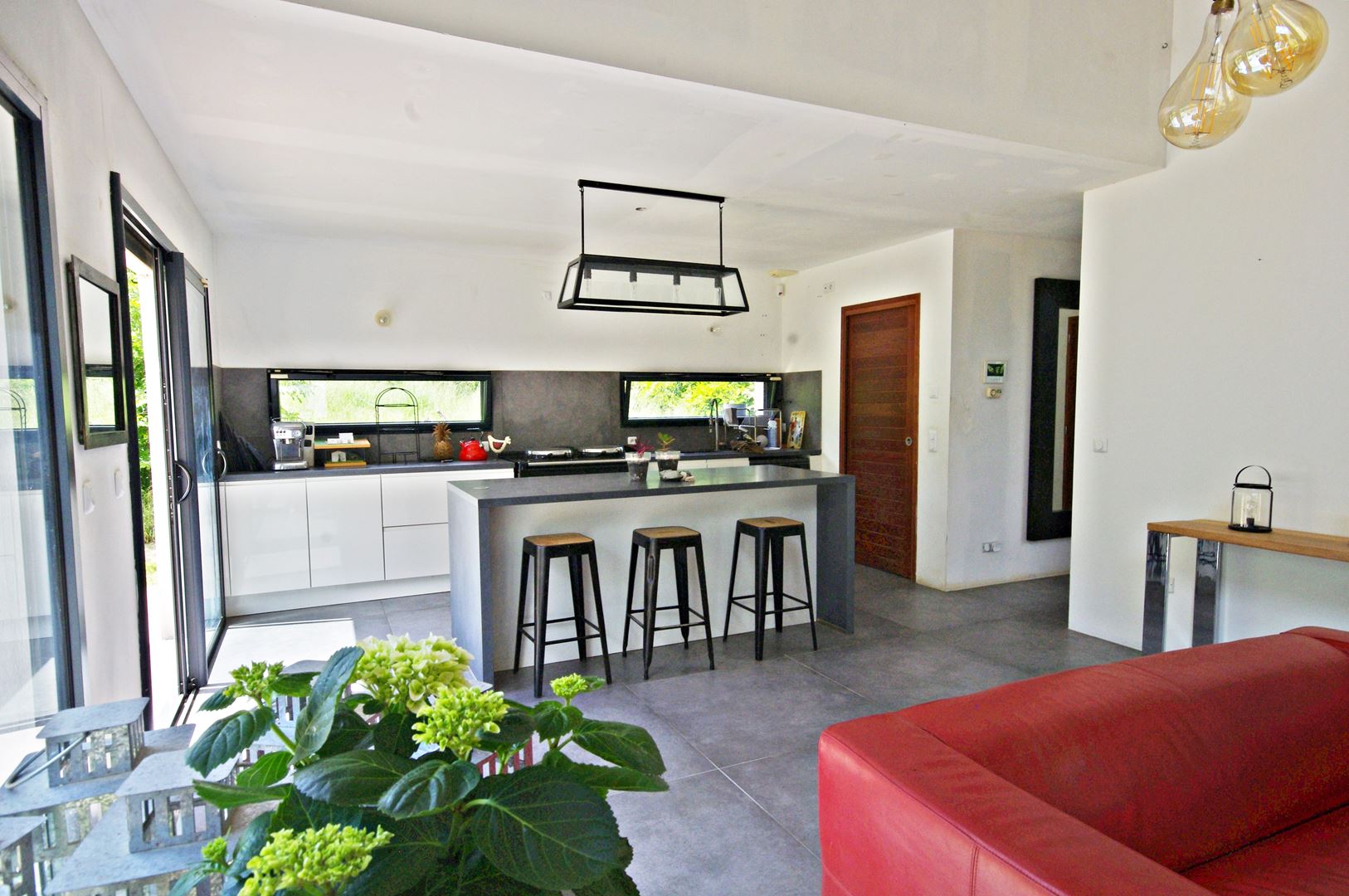 Elle se compose d'une entrée avec WC , un grand salon séjour très lumineux avec plafond cathédrale, une cuisine américaine avec cellier attenant. Un escalier donne accès à une mezzanine de plus de 30 m² surplombant le séjour. Tout l'espace nuit est située au RDC, il comprend 2 chambres avec dressings, salle d'eau et WC et une suite parentale de 33 m² avec dressing salle de bains et WC . La mezzanine bénéficie de nombreuses ouvertures, elle peut accueillir une suite parentale supplémentaire ou un espace dédié aux loisirs.