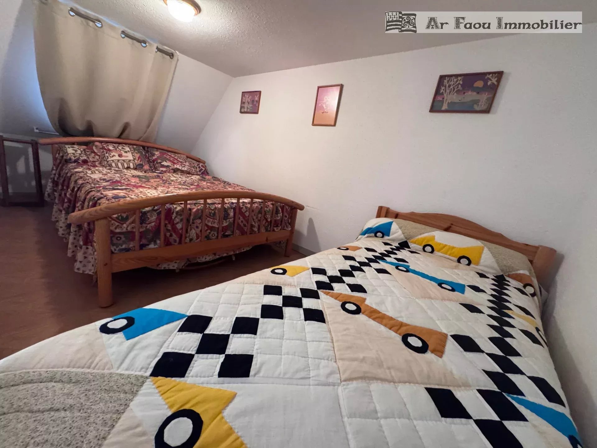 Pentrez Saint Nic, proximité immédiate de la plage, découvrez ce sympathique appartement T3 en duplex proposant une pièce de vie avec coin cuisine aménagée, salle de bains, wc, deux chambres. Terrasse exposée Sud. Résidence entretenue. Place de parking privative. Copropriété de 340 lots (Pas de procédure en cours). Charges annuelles : 800 euros. Syndic : GESTIMMA.