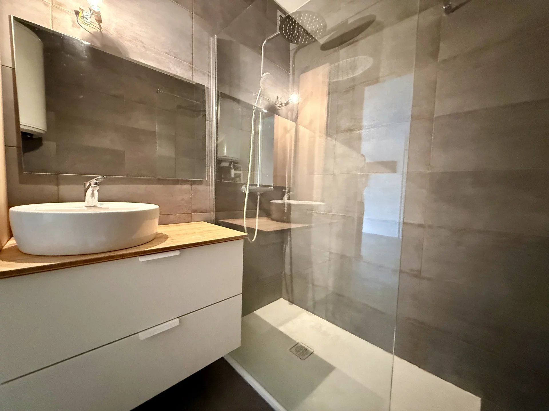 La salle d'eau, entièrement rénovée, dispose d’une douche à l’italienne et d’un coin buanderie, et les WC sont séparés. Une cave saine et pratique vient compléter ce bien.