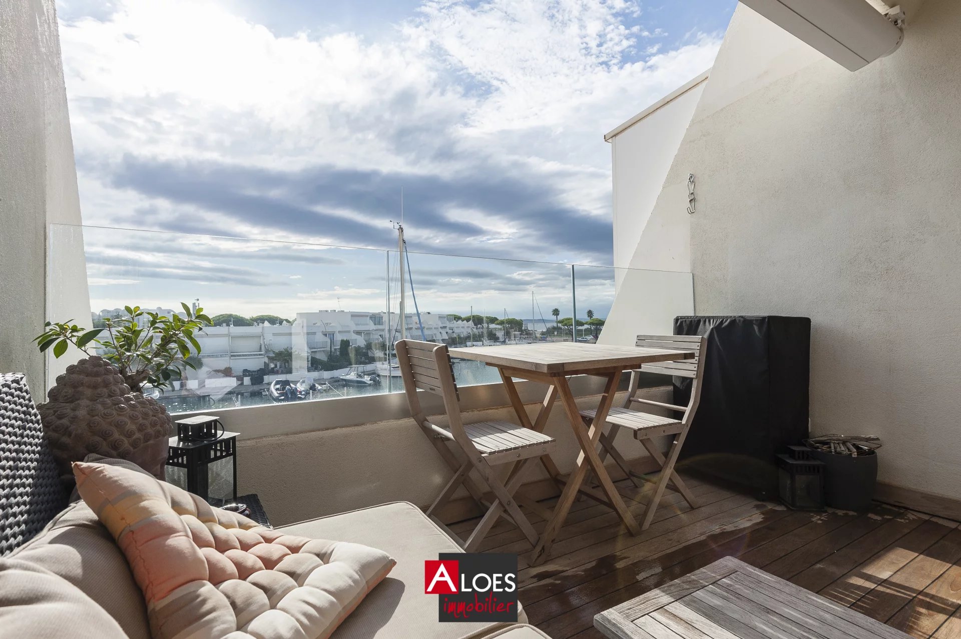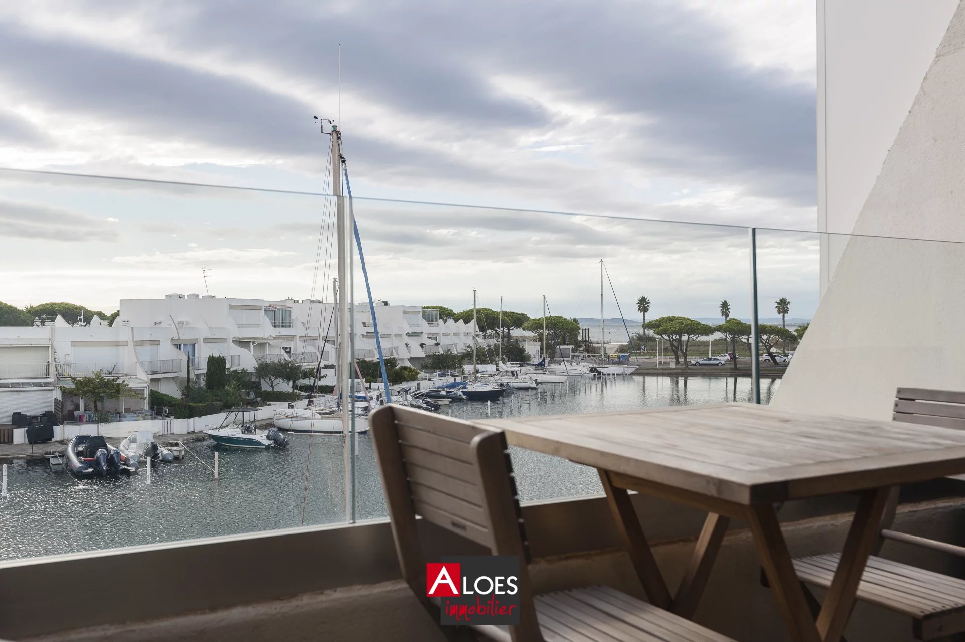 Cette magnifique marina traversante, située au dernier étage d'une résidence à Port Camargue, bénéficie d'une vue imprenable sur le port et d'une petite vue mer. La pièce de vie offre une belle sensation de volume grâce à ses hauts plafonds et s'ouvre sur une terrasse ensoleillée, parfaite pour profiter du cadre exceptionnel. La marina comprend une chambre confortable, une salle d'eau moderne et des WC séparés. Entièrement rénovée avec des matériaux de qualité, elle allie élégance et fonctionnalité. Un poste d'amarrage privé de 3 x 12 mètres est disponible en contrebas pour votre bateau. Un parking privé est inclus, ainsi qu'un local à vélos dans la copropriété. Vous apprécierez la proximité des plages et des activités nautiques, contribuant à un mode de vie paisible et dynamique. Offrant un cadre de vie privilégié, cette marina est une opportunité rare à quelques pas de la mer et proche de toutes les commodités.