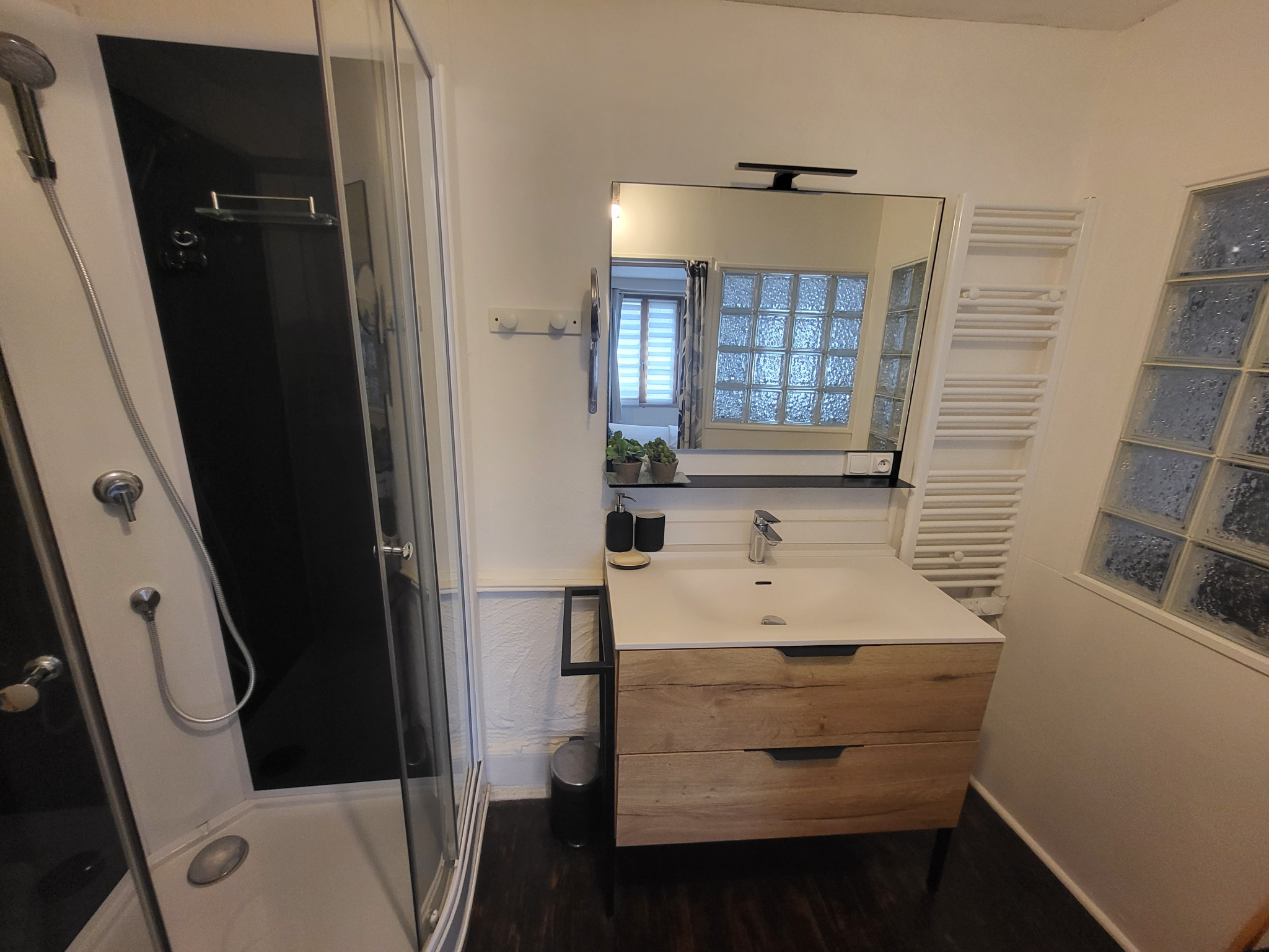 L'appartement T2, de rénovation récente, se réparti entre un coin salon avec briquettes et pierres apparentes, une cuisine dinatoire aménagée et équipée, une grande chambre avec salle d'eau ainsi qu'un espace buanderie et un wc. Idéal pour location saisonnière. Possibilité d'y aménager un local professionnel ou commercial.