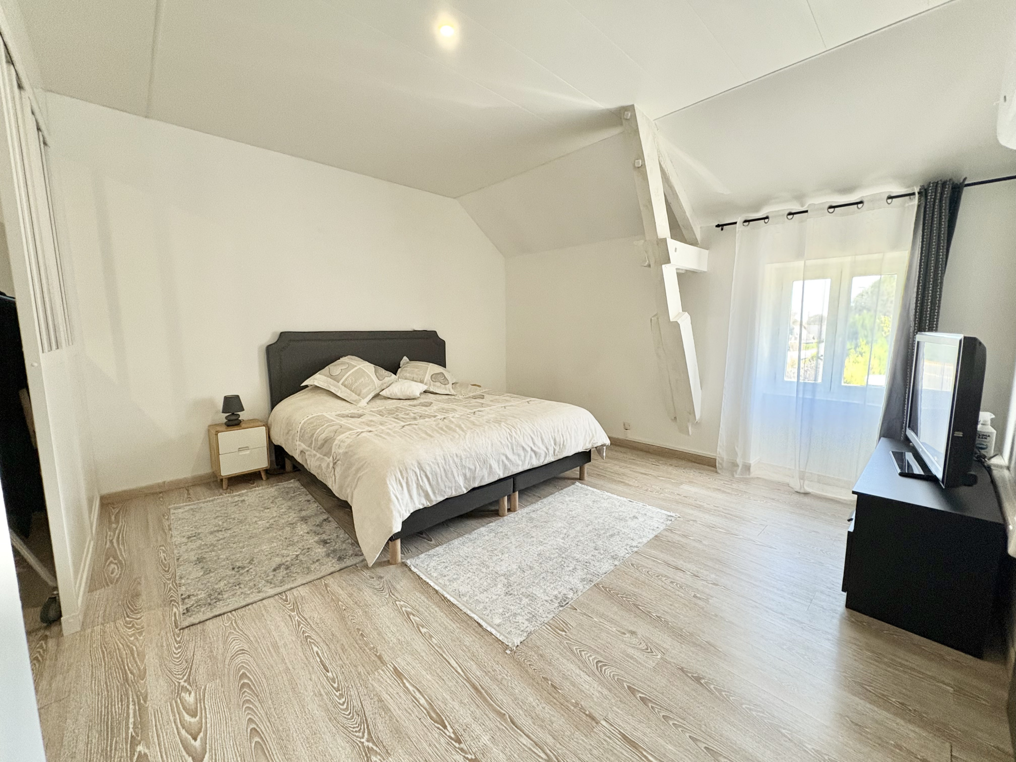 A l'étage, une mezzanine spacieuse, WC, deux chambres supplémentaires et une suite parentale avec grand dressing et salle d'eau privative. Les extérieurs vous offrent un terrain clos de 537 m2, une agréable piscine 7x3.