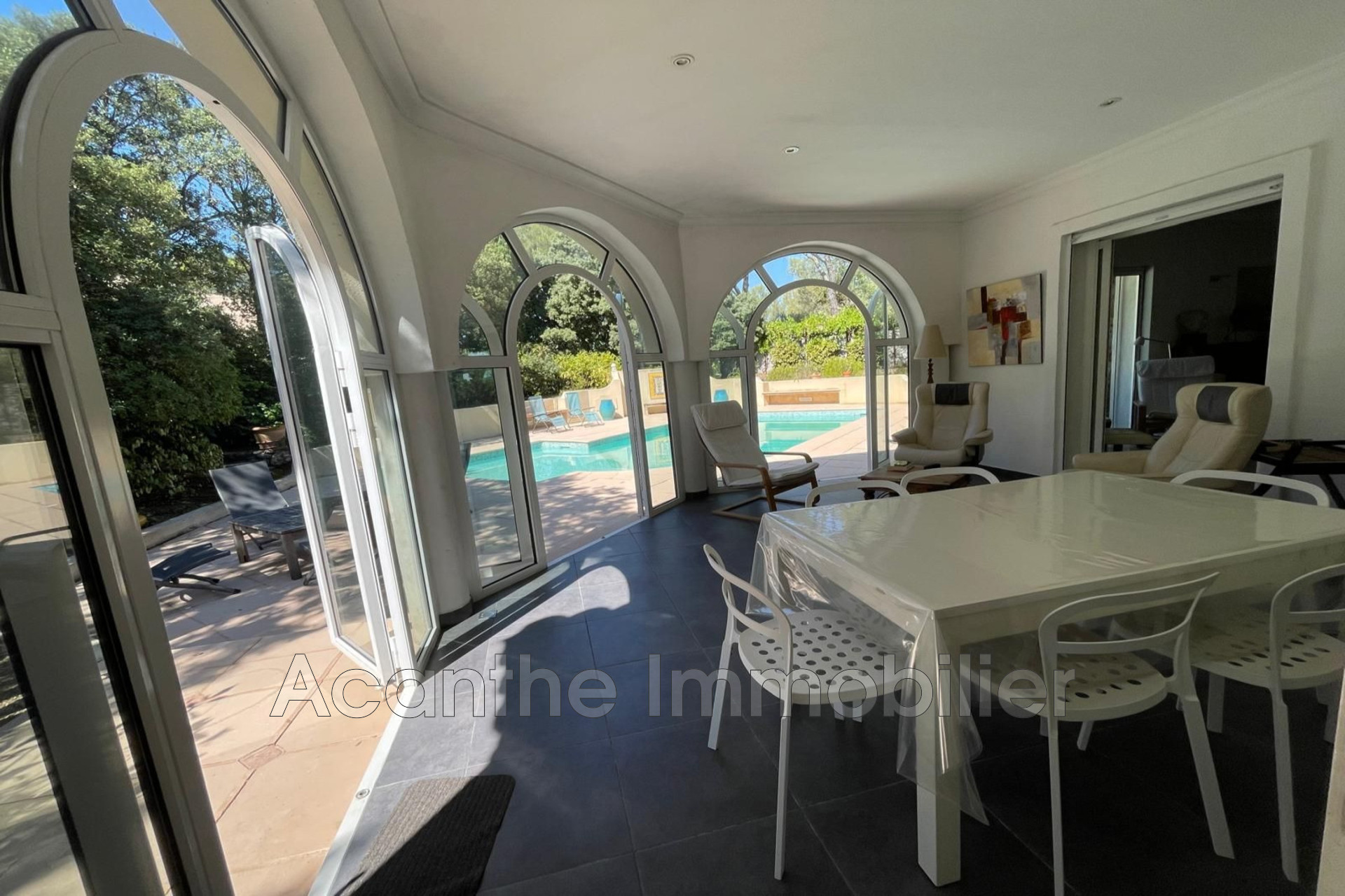 Le jardin arboré, sans vis-à-vis, vous garantit calme et intimité ; une superbe piscine complète cet espace de vie tourné vers la nature.