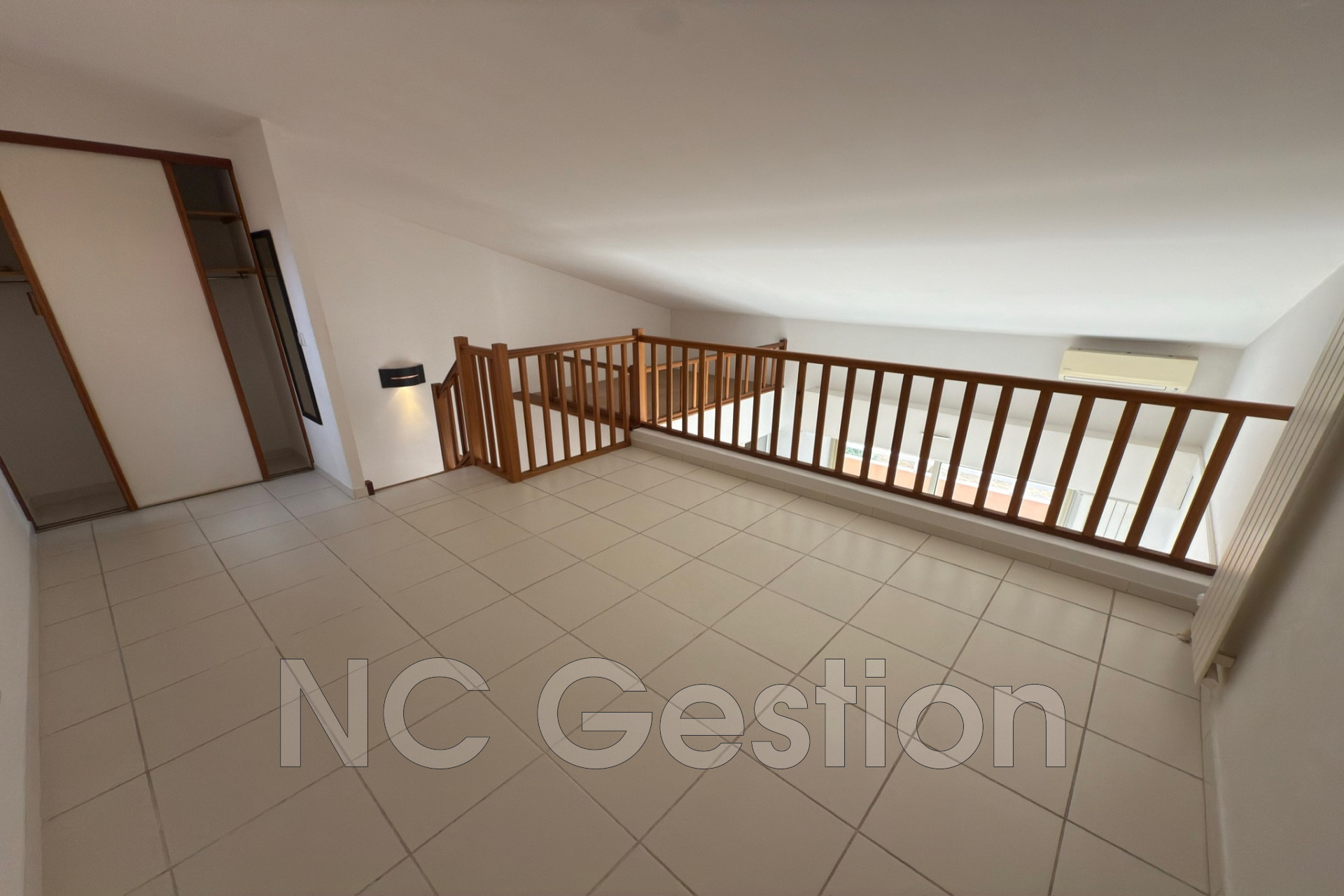 Le logement comprend un hall, le séjour avec un grand placard, une cuisine américaine, une grande chambre avec rangements en mezzanine, une salle de bains, et les toilettes indépendantes.