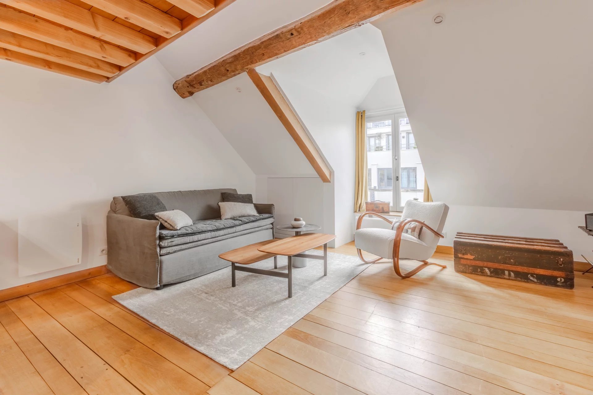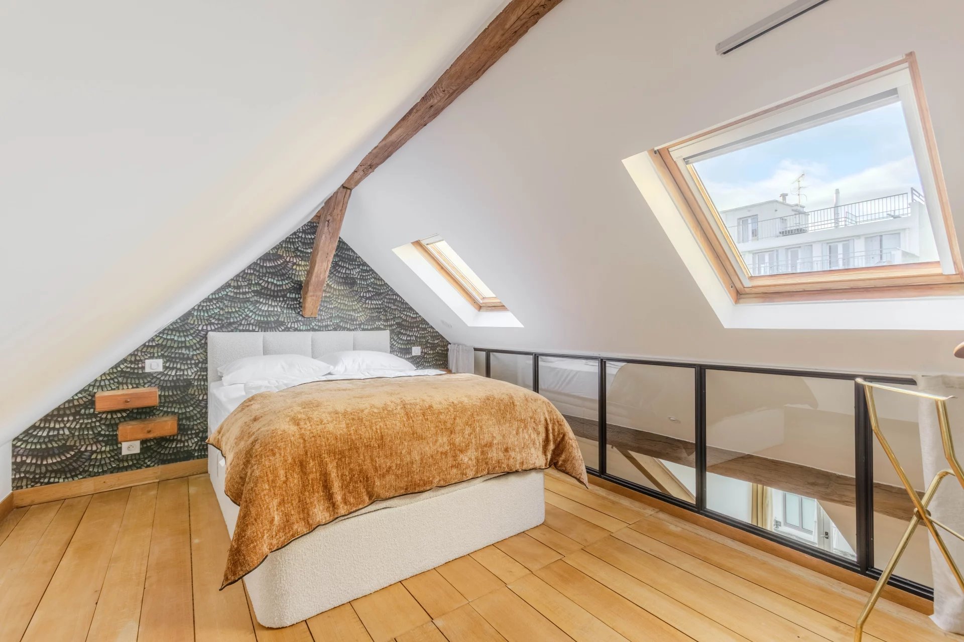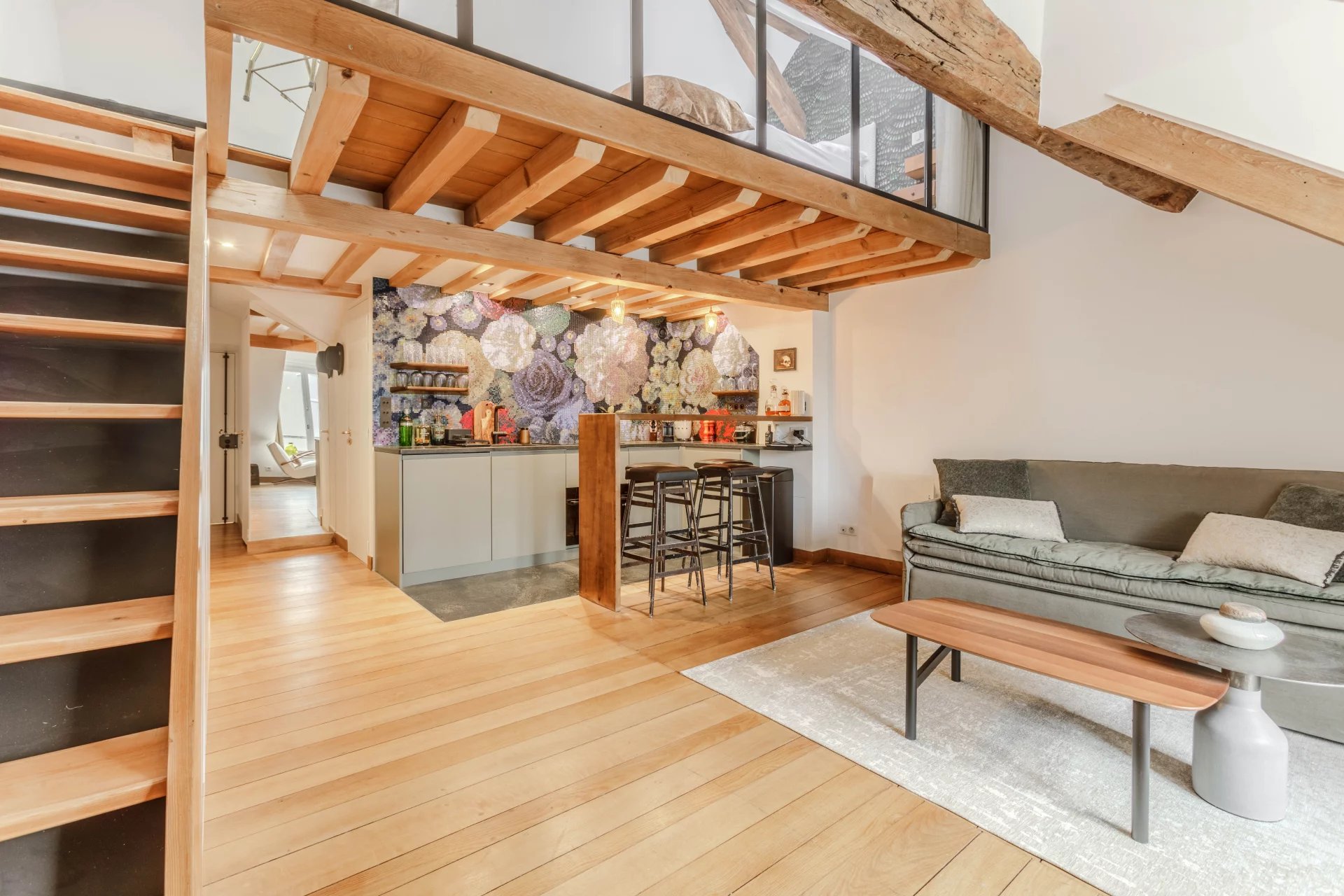 Au 6ème et DERNIER ÉTAGE.Entièrement repensé par un architecte, ce 2 PIÈCES style LOFT dispose d’une entrée, d’une cuisine ouverte aménagée et équipée, sublimée par une somptueuse mosaïque Bisazza, d’un séjour, d’une spacieuse mezzanine faisant office de chambre, d’une belle salle d'eau avec douche italienne et fenêtre et des WC séparés. Double exposition sur rue et cour. CALME et LUMINEUX (expositions OUEST et EST), l'appartement séduit par sa vue dégagée et imprenable. Entièrement rénové à neuf. DPE classé en D ! Pour tous renseignements, appeler L'AGENCE DES ARTS ET MÉTIERS au 01 44 61 04 04.