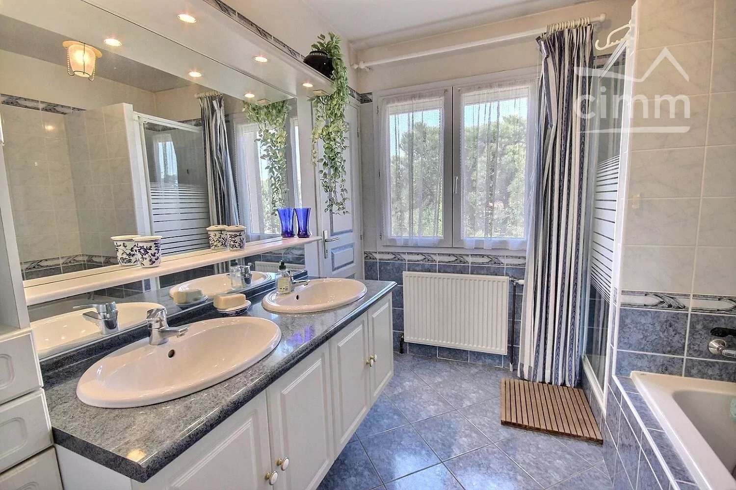 A l'étage : 5 chambres, dont suite parentale avec salle de bains + dressing, salle d'eau, wc séparé.