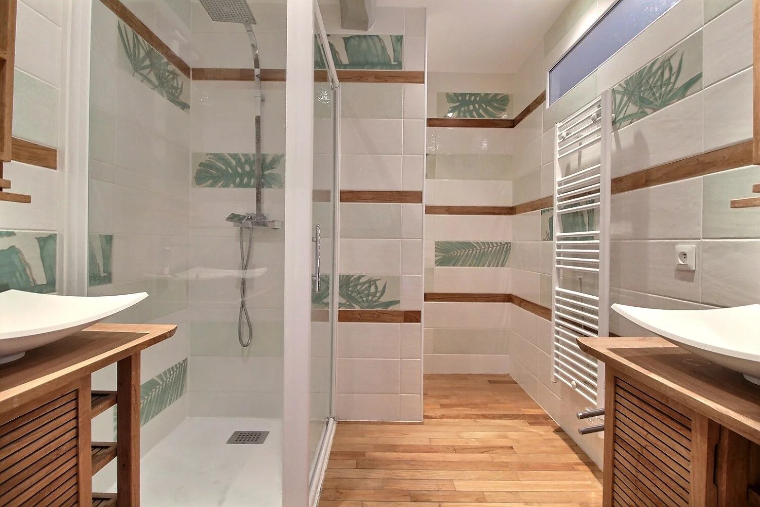 Vous apprécierez sa pièce de vie spacieuse et lumineuse de 46m² avec cuisine ouvert donnant sur une grande terrasse couverte et l'espace piscine.