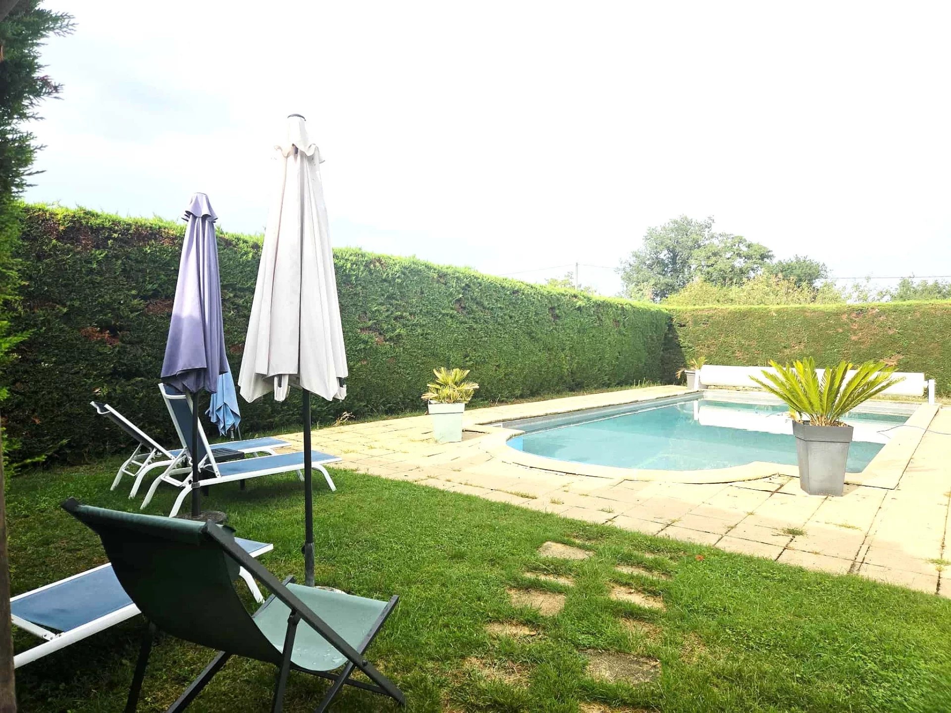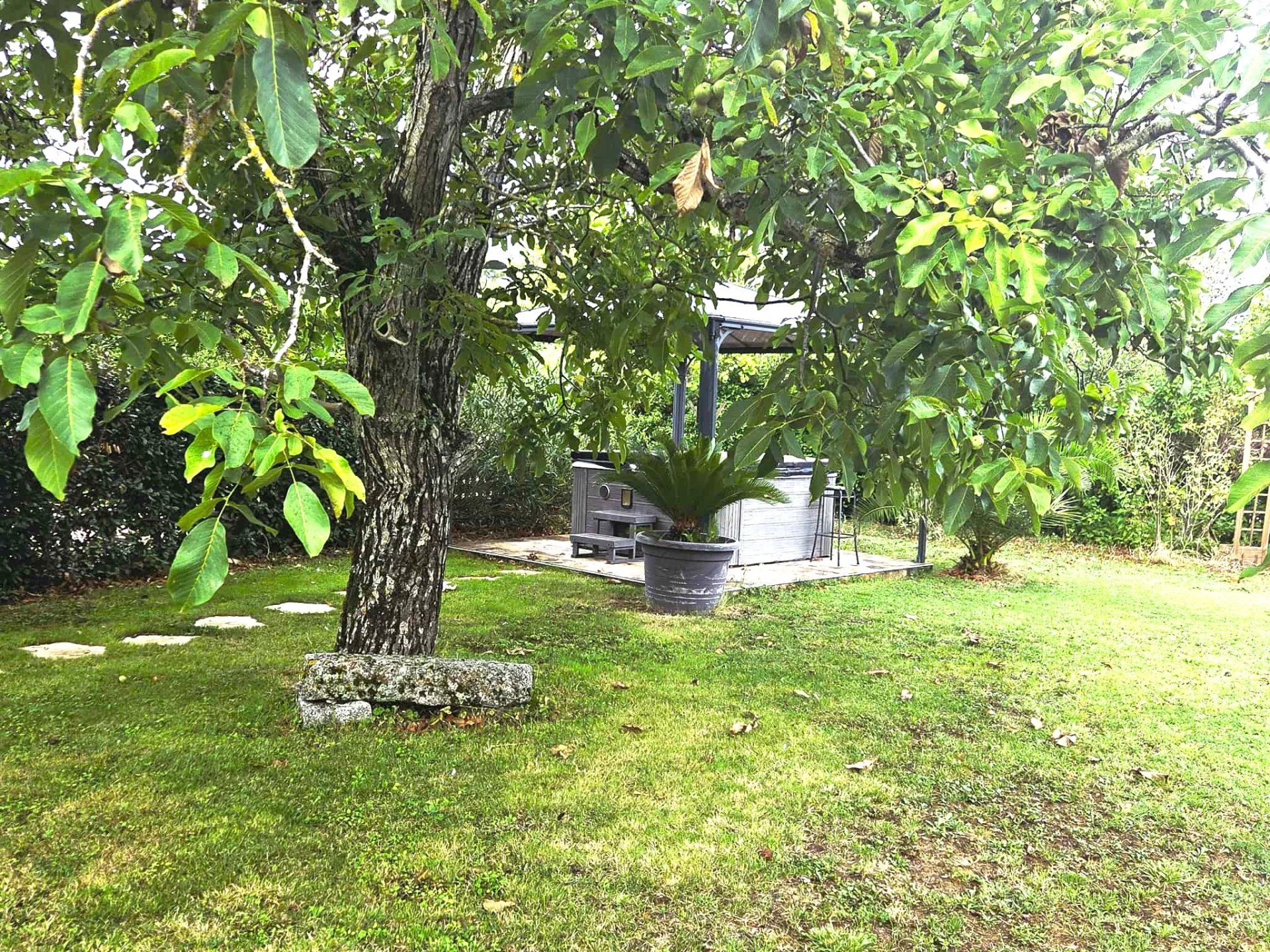 La propriété s'étend sur 5000m² est fait la place à la bâtisse, à un appartement de 50m² pouvant être loué, une piscine au sel complétement automatisée, une salle de réception, un verger, un deuxième spa, un grand parking et des hangars anciens.