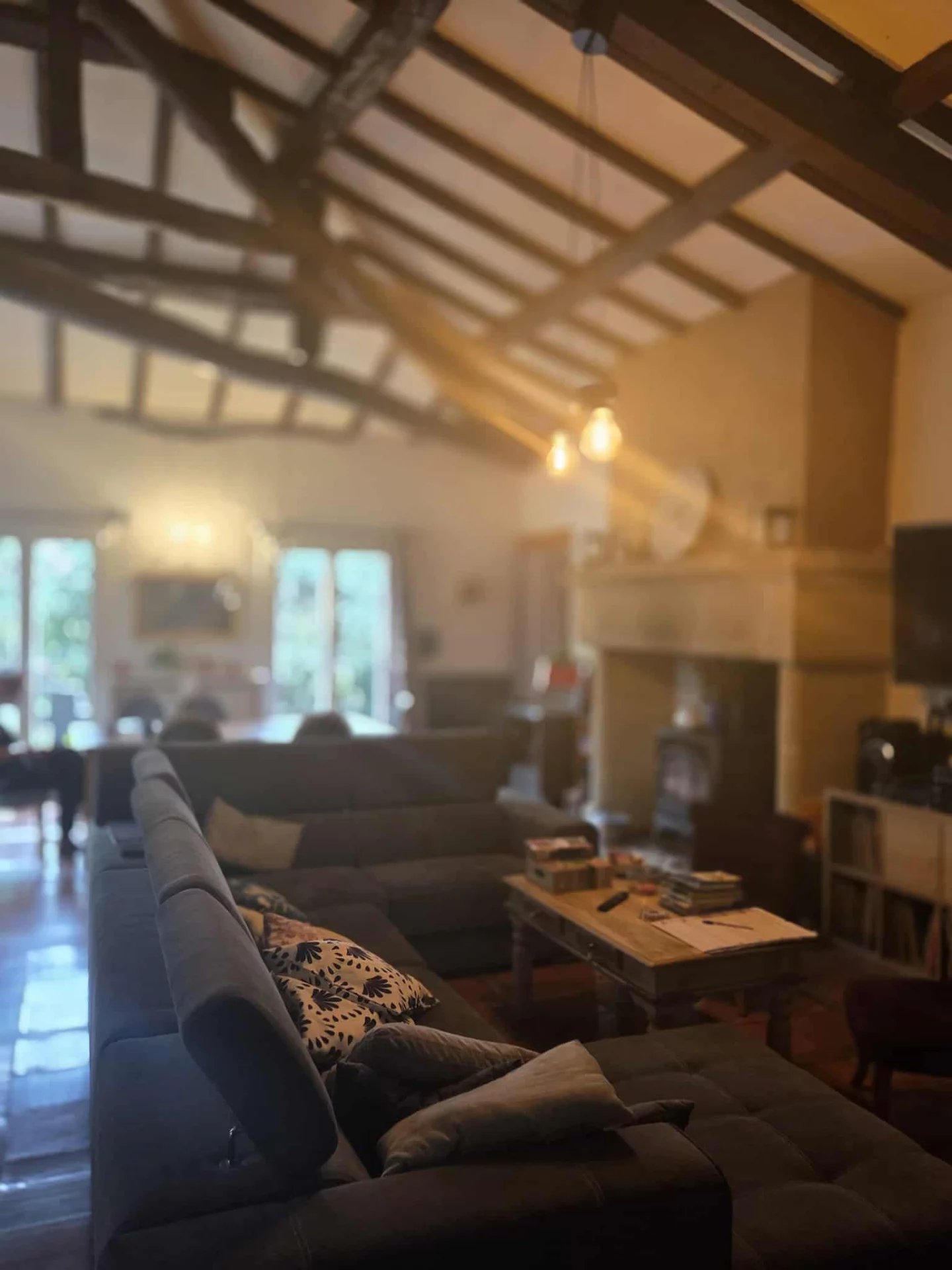 Le cœur de la maison est un magnifique salon cathédrale de 70m² surplombé d'une mezzanine de 20m² autour duquel se distribue 1 appartement type suite parentale avec cuisine, terrasse et spa et 5 chambres totalement indépendantes (sanitaires individuels), 1 bureau, ainsi que plusieurs espaces pour se ressourcer (salon de lecture, salon de thé avec poêle).