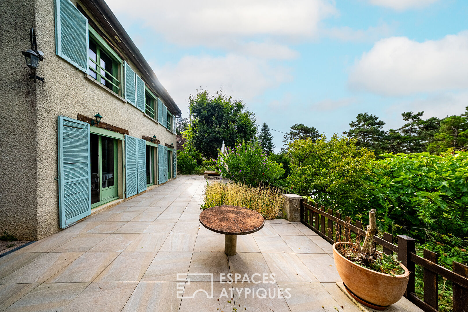 Plongée en pleine verdure, littéralement entre ciel et terre, cette maison ravira les amateurs de calme et d'espaces. La maison se développe autour d'une vaste pièce de vie ouverte sur coin cuisine aménagé et équipée : ouverte de plain pied sur la terrasse afin de permettre les soirées en extérieur. Un salon indépendant permet un espace de vie indépendant mais peut également être transformé en chambre parentale, la salle de bain étant attenante avec un espace sauna. Le premier étage comprend quant à lui deux chambres, se partageant une douche et des toilettes un espace bureau et une mezzanine. L'exterieur verdoyant s'articule autour d'une cour pouvant accueillir deux voitures, des dépendances, un garage fermé. Un espace piscine en contrebas de la maison sera parfait pour recevoir famille et amis. L'ensemble est à rafraichir mais le potentiel restant à exploiter rend la maison très intéressante, et bénéficie d'un cadre rare à seulement quelques minutes du centre historique de Beaune. ERRIAL : les informations sur les risques auxquels ce bien est exposé sont disponibles sur le site Géorisques : www.georisques.gouv.fr DPE : consommation énergie primaire E (254kWh/m²/an) et émissions gaz à effet de serre B(8kg/CO2/m²/an) Montant moyen estimé des dépenses annuelles d'Énergie pour un usage standard : entre 1860 euros et 2516 euros. Amélie DINKEL - 06 09 26 27 68 - Agent commercial (EI) RSAC DIJON 751 881 608 Amélie DINKEL (EI) Agent Commercial - Numéro RSAC : 751881608 - DIJON.