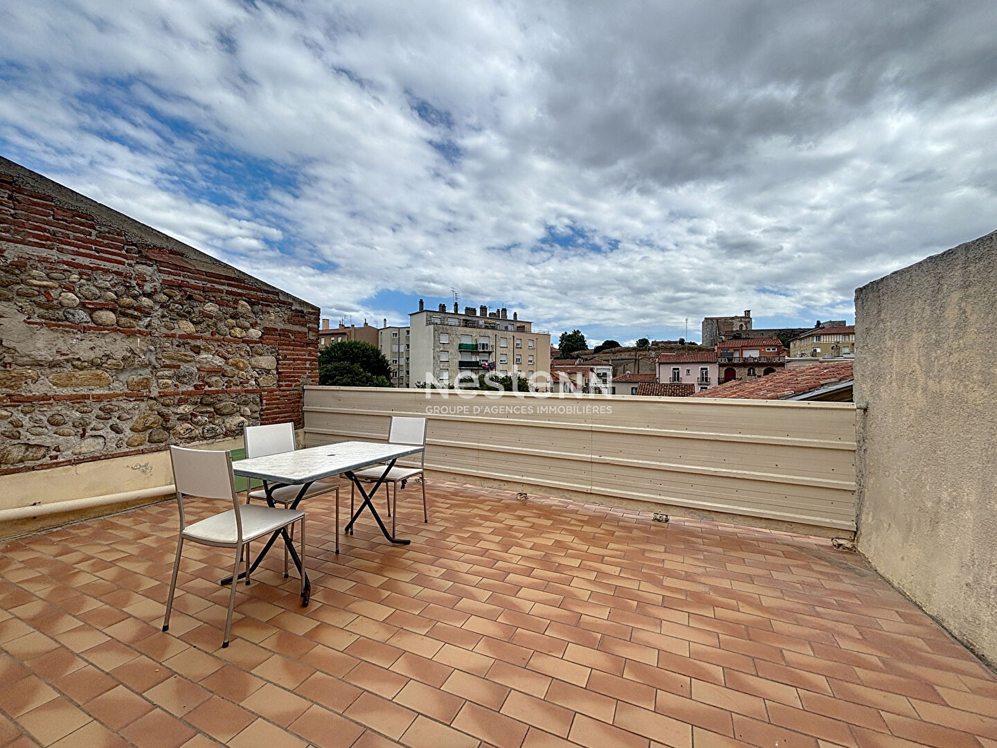 A deux pas du centre ville, au quatrième et dernier étage sans ascenseur d'un petit immeuble, un appartement se composant d'une entrée avec placard, un salon/séjour avec cuisine donnant sur une grande terrasse sans vis-à-vis, deux chambres ainsi qu'une salle de bains avec water-closet. Un climatiseur mobile vient compléter cette location! Disponible de suite ! Garantie Visale acceptée !