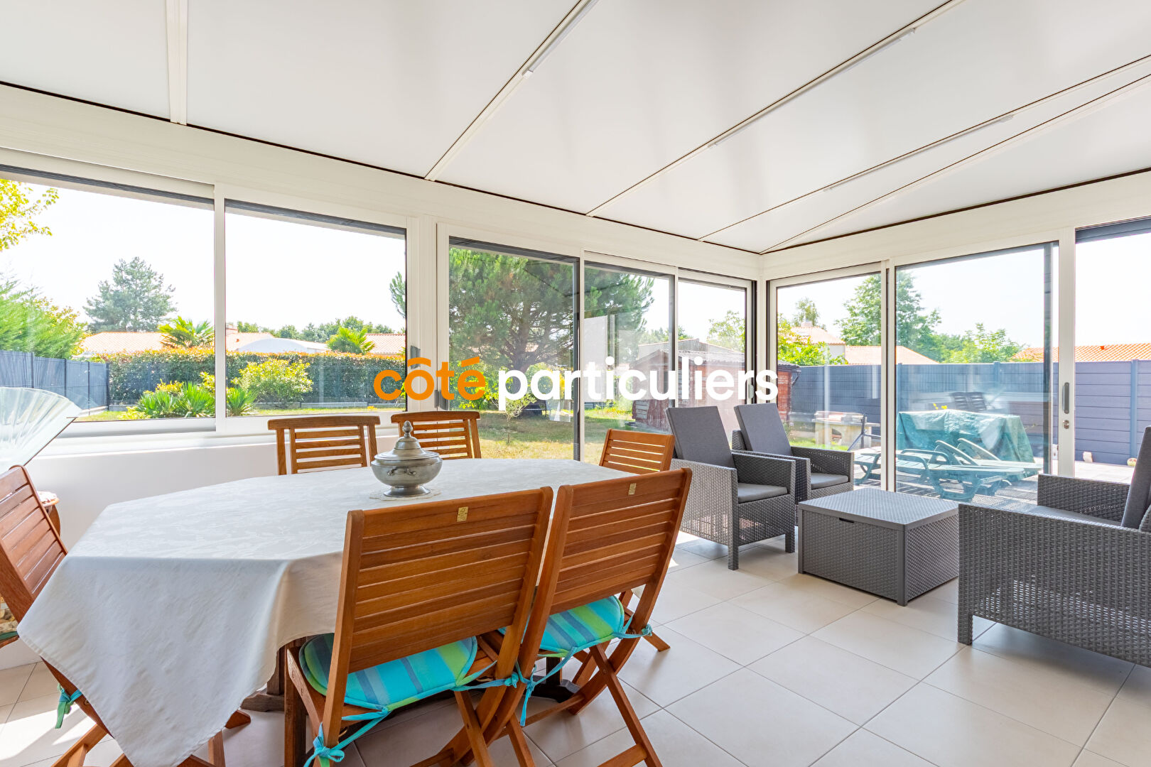 EXCLUSIVITÉ - CÔTÉ PARTICULIERS LA ROCHE-SUR-YON - Située sur la commune de Saint-Georges-de-Pointindoux ,a proximité de La Mothe Achard, à seulement quelques kilomètres de l'océan, cette maison de plain-pied offre un cadre de vie paisible et familial. D'une surface habitable de 127m², elle s'ouvre sur une belle pièce de vie lumineuse avec salon, salle à manger et cuisine ouverte, aménagée et équipée le tout climatisé, prolongée par un cellier. Le tout donne sur un jardin arboré et paysagé, avec une véranda climatisée donnant sur une terrasse pour profiter pleinement des extérieurs. L'espace nuit se compose de trois chambres d'une salle de bains avec WC séparés. Édifiée sur une parcelle clôturée de 769 m², la maison dispose également d'un garage avec porte motorisée, d'une exposition idéale, de prestations soignées . Un bien fonctionnel, confortable et chaleureux, idéal pour une famille ou un projet de vie au calme, entre terre et mer. Prix de vente : 336 000 euros HAI, dont 16 000 euros d'honoraires d'agence à la charge de l'acquéreur, soit un prix net vendeur de 320 000 euros. Côté Particuliers. (RCS Nantes 948 350 889). Les informations sur les risques auxquels ce bien est exposé sont disponibles sur le site Géorisques. (5.00 % honoraires TTC à la charge de l'acquéreur.)