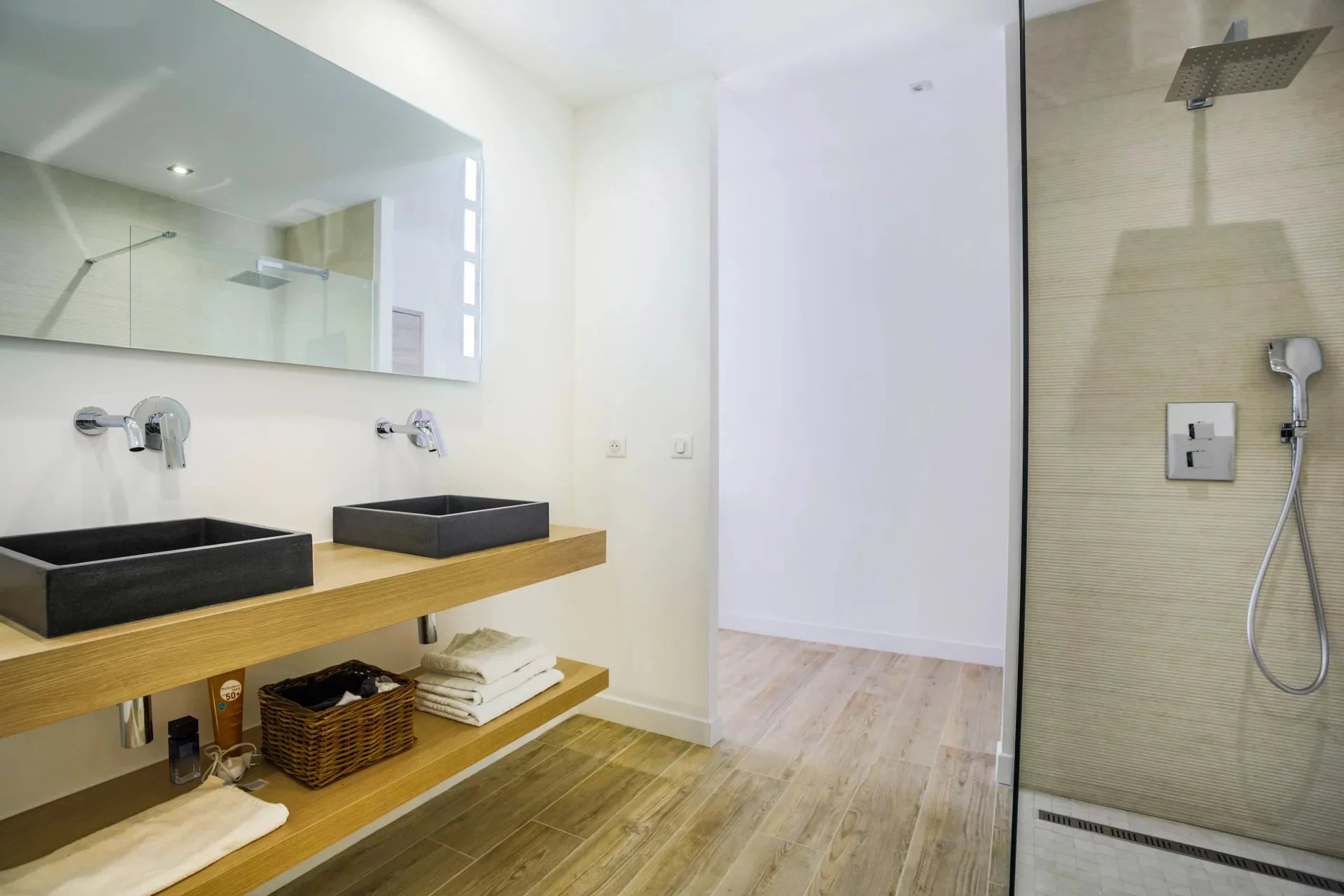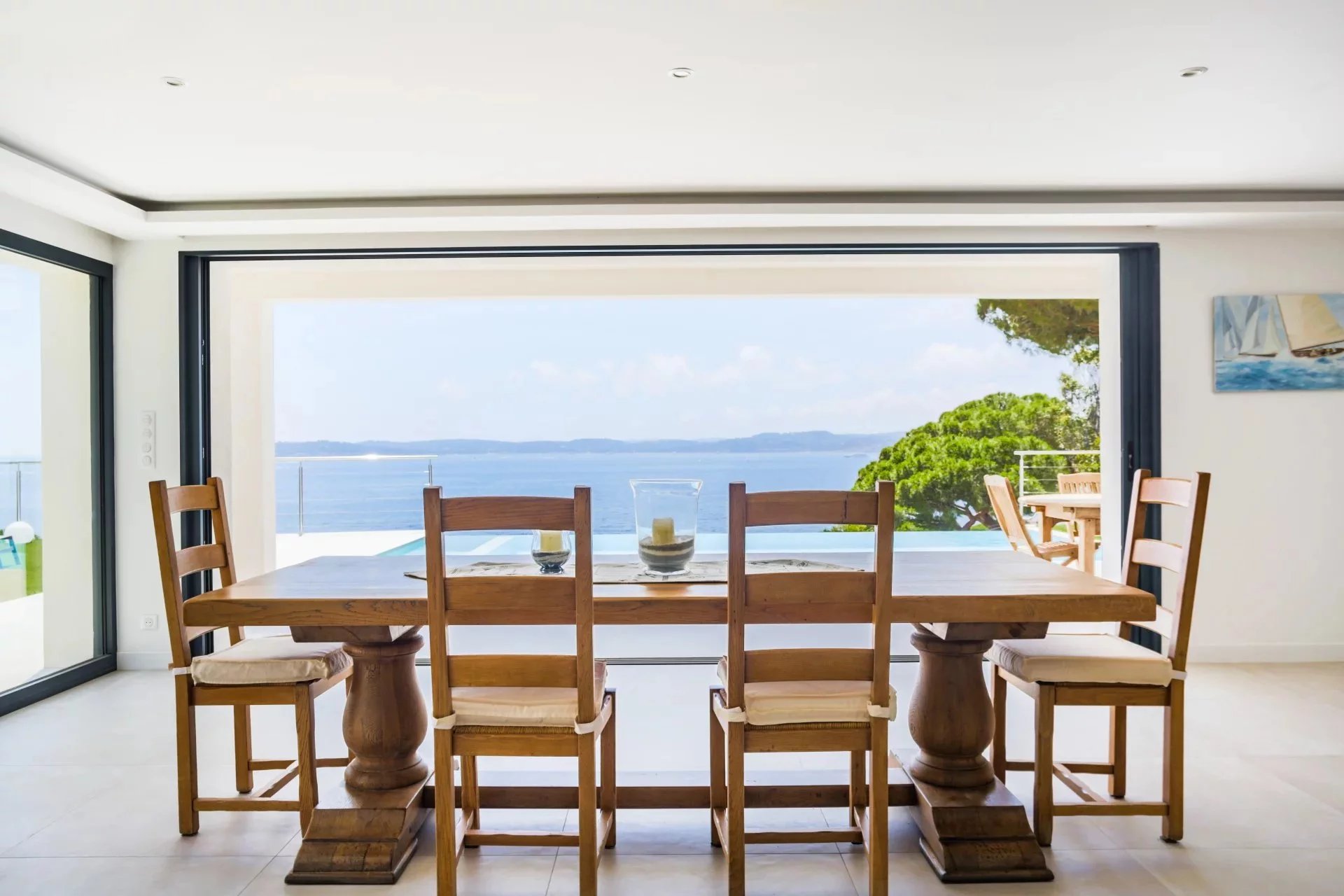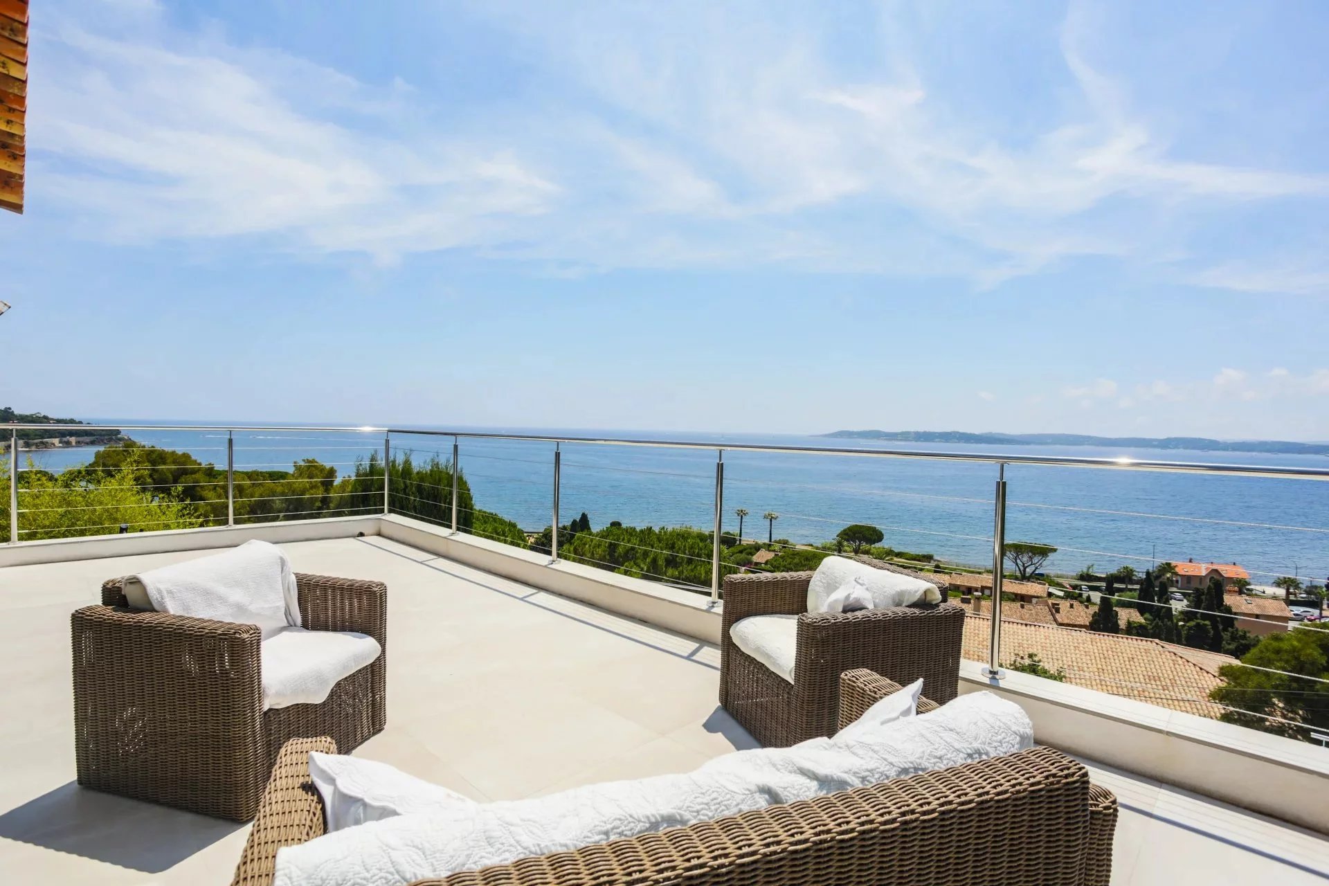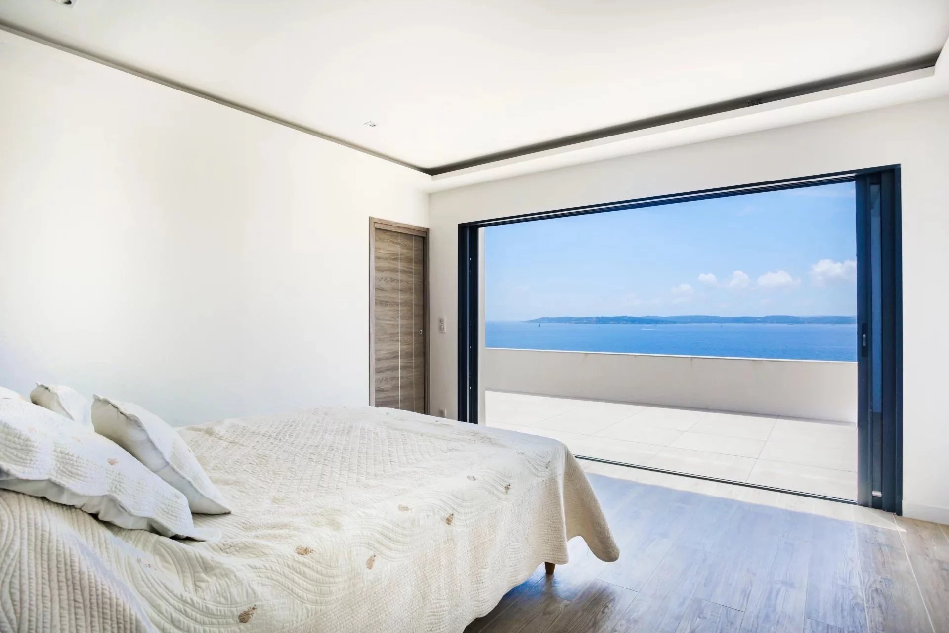 Située dans l'un des quartiers les plus recherchés de Sainte-Maxime, villa moderne d'une surface habitable (Loi Carrez) de 255m2 implantée sur un terrain de 1033m2 parfaitement aménagé. Répartie sur 4 niveaux desservis par un ascenseur la villa offre un cadre de vie agréable mêlant volumes généreux et une vue mer panoramique depuis toutes les pièces principales. La villa est composée comme suit: Niveau 4 : Espace parental privilégié Une entrée principale avec rangements Une chambre master avec espace bureaux un dressing Une salle de douche avec douche à l'italienne, double vasque, WC, un sèche serviette. Grande terrasse avec jacuzzi donnant sur une vue mer panoramique. Niveau 3: Espace nuit invités ou enfants Deux chambres, chacune avec dressing et salle de douche privative, un WC invité terrasse avec vue mer Niveau 2 : Espace détente et réception Grand salon lumineux avec espace bar Terrasse spacieuse avec vue mer panoramique Niveau 1 : Coeur de vie WC invité Vaste séjour / salle à manger avec cuisine américaine aménagée et équipée Accès terrasse avec piscine à débordement face à la mer. Prestations complémentaires: Garage Coin golf d'entraînement ( Putting green synthétique) Espace barbecue Petite salle de cinéma privée Salle de sport Cave à vin Un environnement au calme et privilégié, à pied de la plage et à seulement quelques minutes du centre-ville et de ses commerces. A visiter sans tarder !