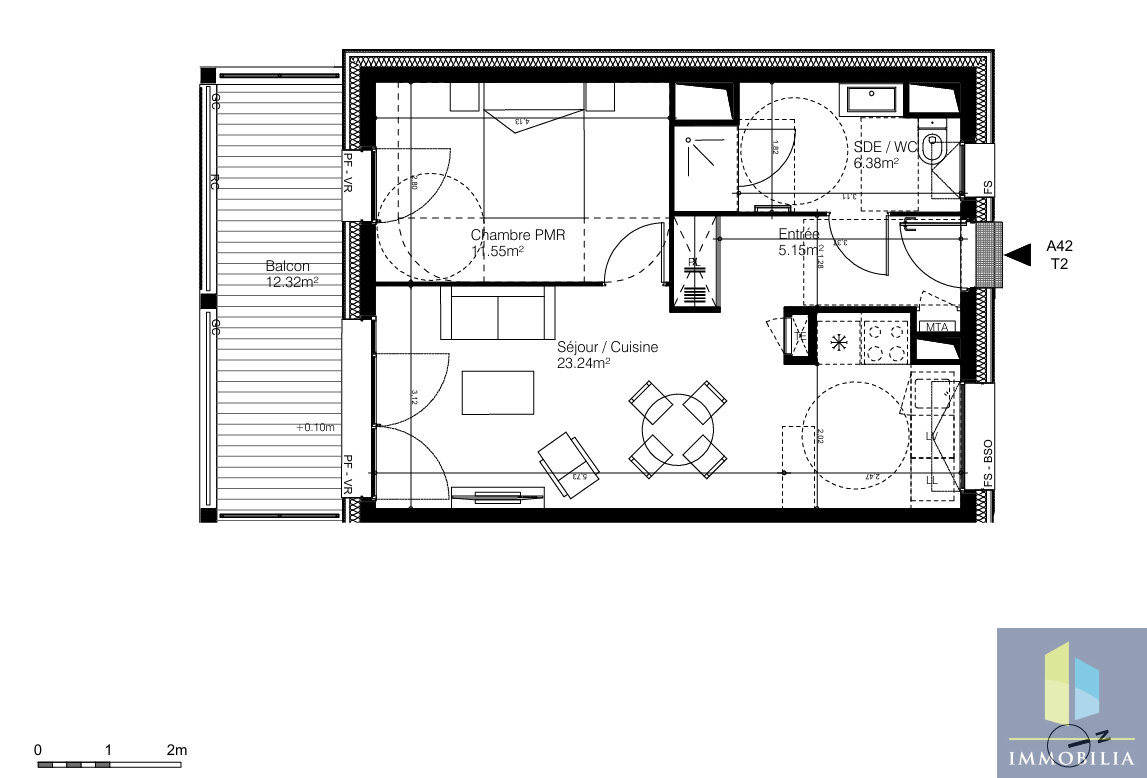 T2 DE 52 M2 COMPRENANT UN GRAND SÉJOUR LUMINEUX AVEC ESPACE CUISINE DE 23 M2, QUI S'OUVRE SUR UNE SPACIEUSE TERRASSE DE 12 M2. LA CHAMBRE, AUX NORMES PMR, . VOUS DISPOSEREZ ÉGALEMENT UNE SALLE D'EAU AVEC WC. L'ENSEMBLE DONNE SUR LE JARDIN CENTRAL ET LE LAC, OFFRANT UN CADRE DE VIE AGRÉABLE. IDÉALEMENT SITUÉ,