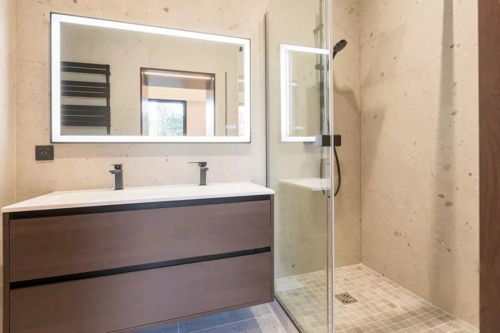 Cette maison se distingue par ses prestations de très haut standing : parquet en pointe de Hongrie en chêne massif, ouvertures en aluminium, véritables moulures, mobilier sur mesure et une belle hauteur sous plafond offrant volume et luminosité à chaque pièce.