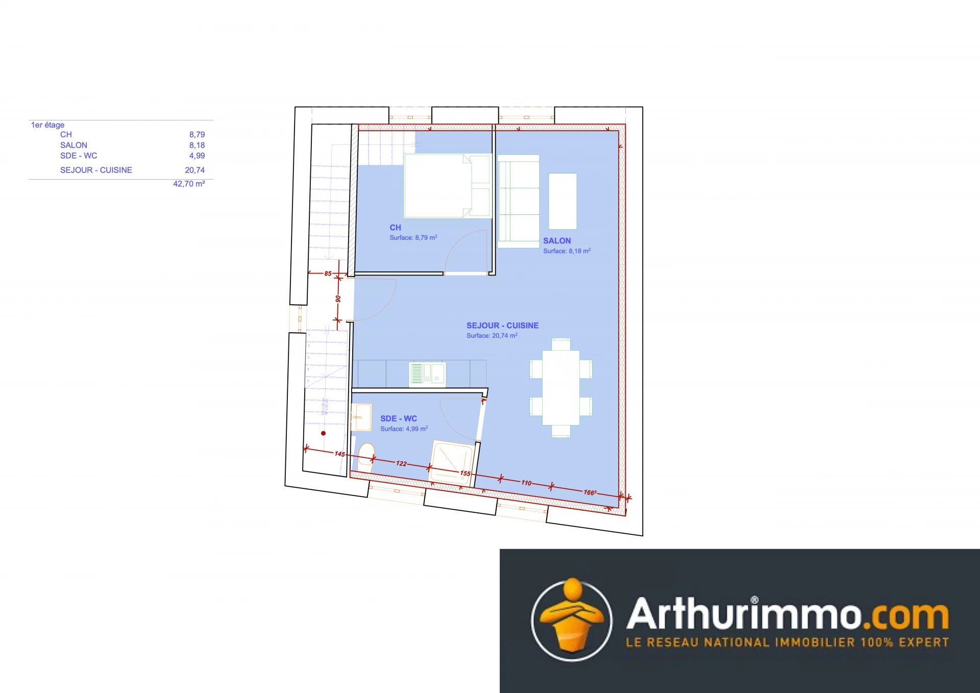 RDC : 1 cave + 1 appartement T2 de 55 m²