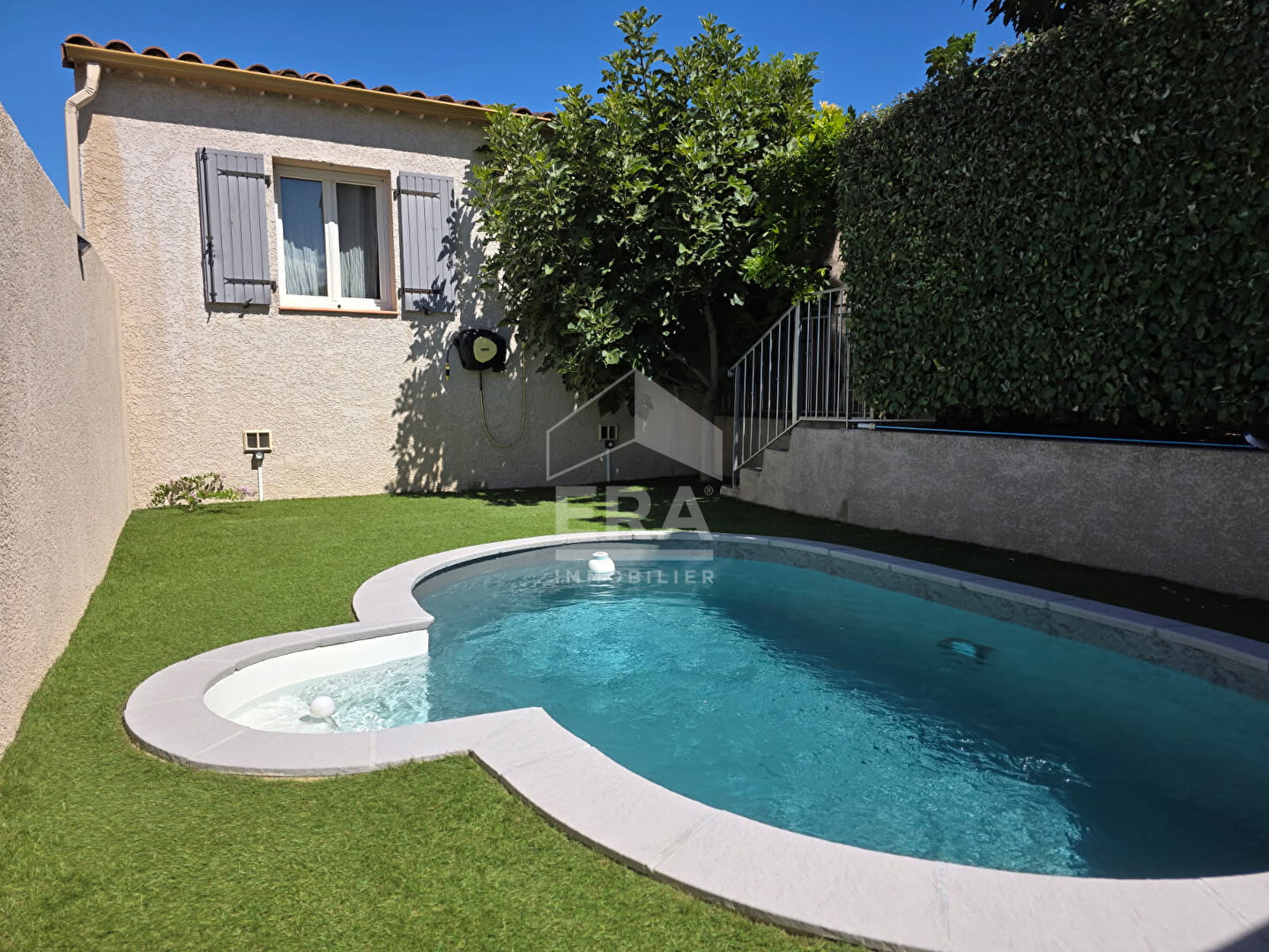 Maison récente de plain-pied de 91 m2 habitables comprenant un séjour plein sud, une cuisine dinatoire équipée, 3 chambres, une salle d'eau avec douche à l'italienne, un cellier et un garage. Côté extérieur, le jardin facile d'entretien dispose de 2 stationnements, une terrasse couverte et une piscine sécurisée, idéal pour des moments de convivialité. La maison est équipée d'une climatisation réversible, d'un adoucisseur, de la fibre et de panneaux photovoltaïques générant un revenu de 2000 euros par an minimum. Un bien sans travaux nécessaires, situé à proximité des transports et des écoles. A découvrir rapidement ! Lien vidéo disponible