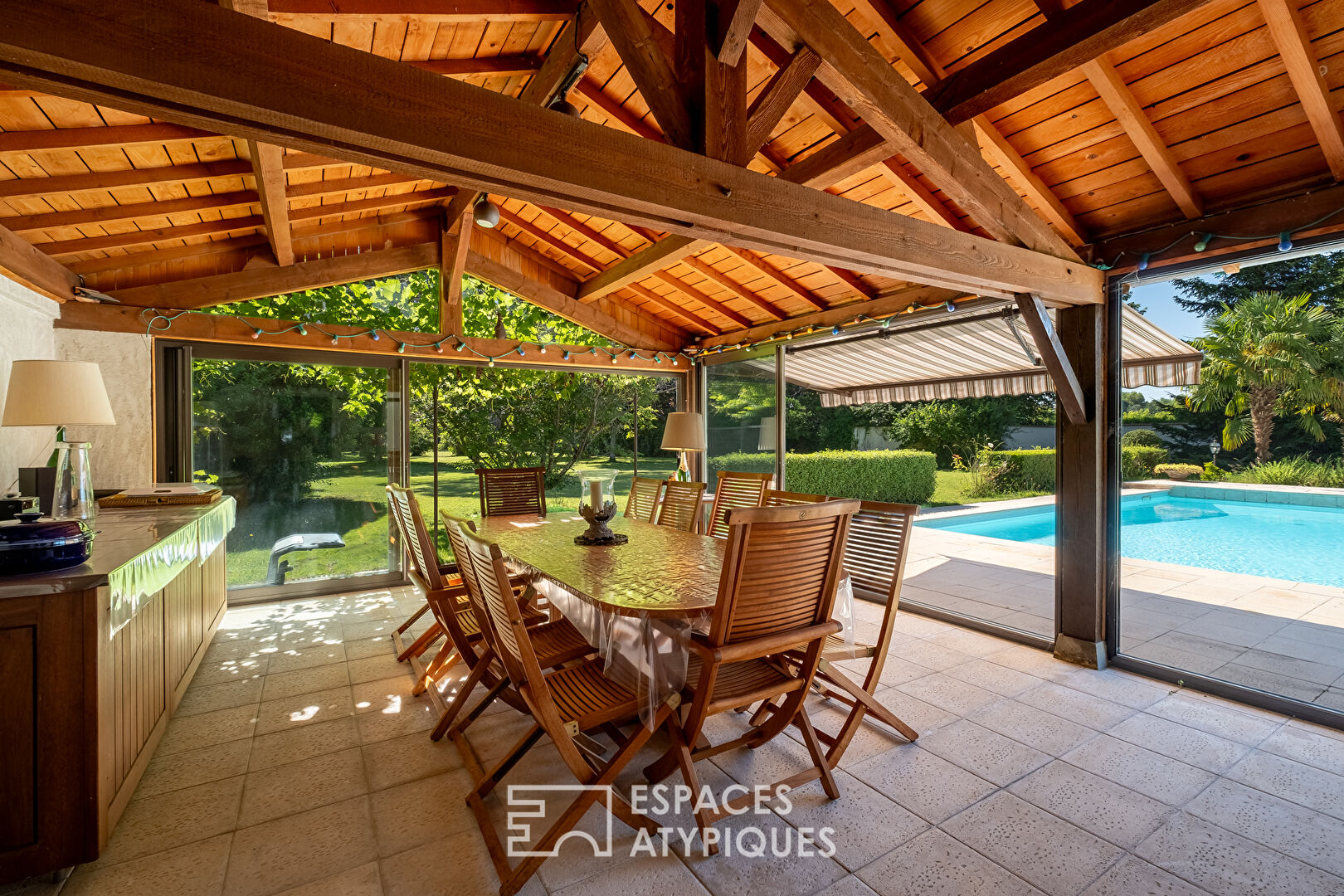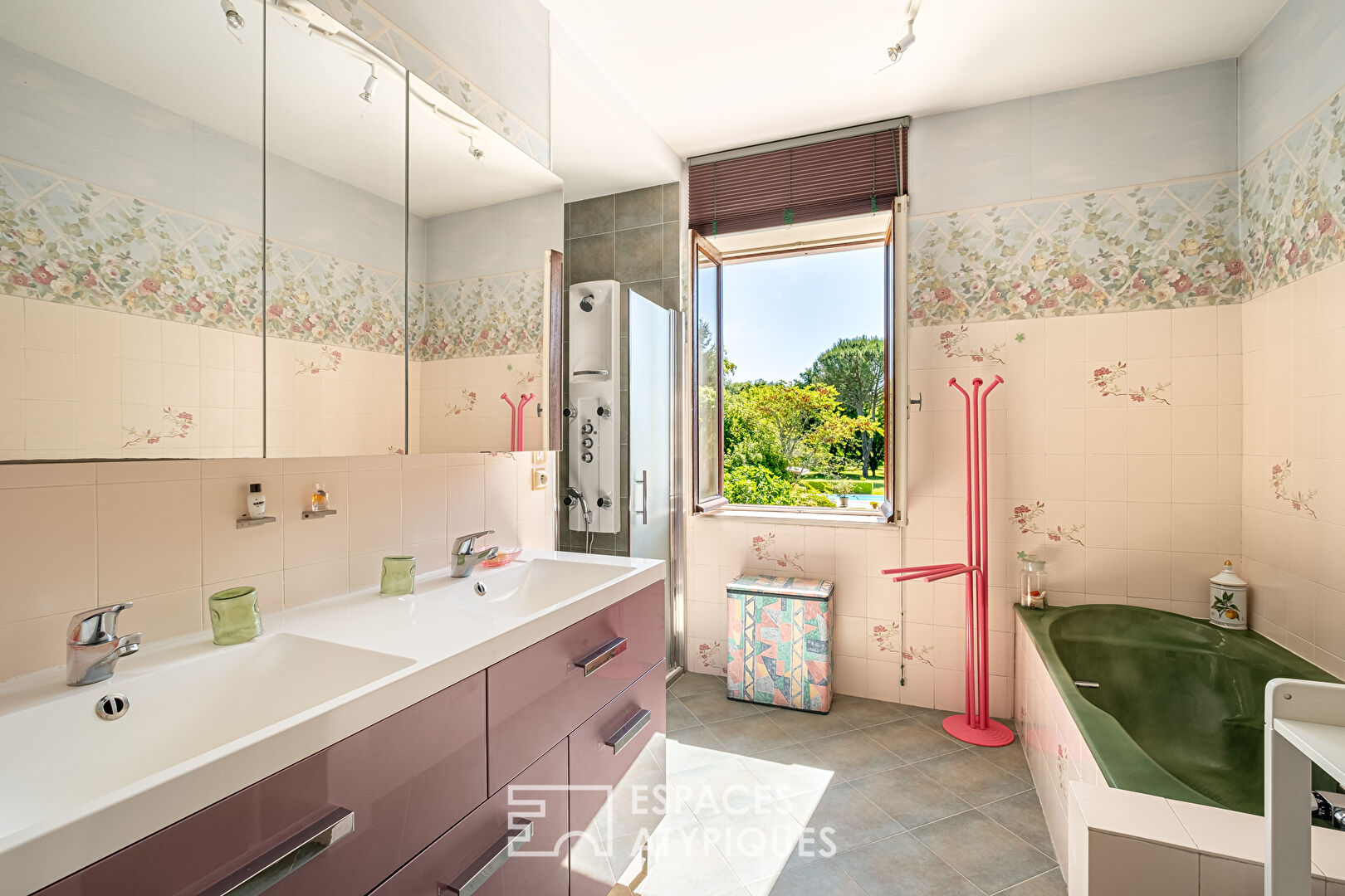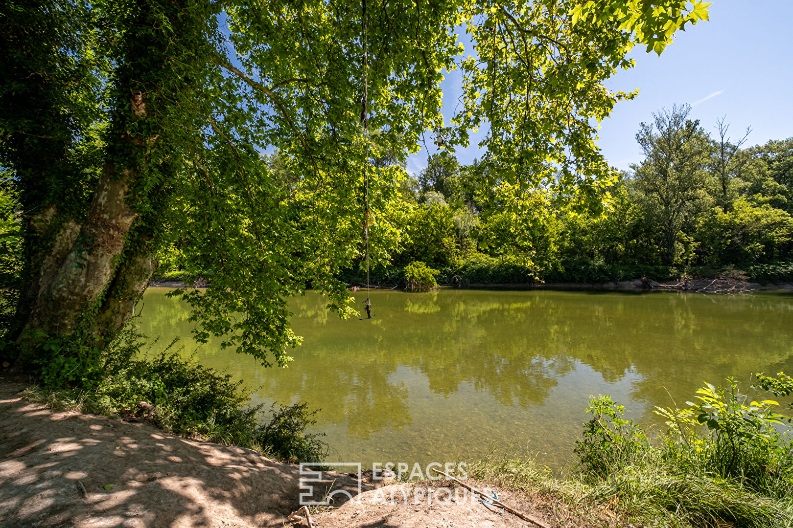 Au coeur d'un écrin de verdure, en bordure de la rivière d'Ain, cette propriété rare et pleine de charme, construite en 1860, vous offre un cadre de vie exceptionnel, où nature, élégance et sérénité se conjuguent à la perfection. Située sur la paisible commune de Mollon, à seulement 7 kilomètres de Meximieux et de sa gare reliant Lyon Part-Dieu en 30 minutes, cette demeure de caractère allie avec harmonie le cachet de l'ancien et le confort d'une maison parfaitement entretenue. D'une superficie de 280 m2 habitable, la maison se déploie sur trois niveaux et offre dix pièces lumineuses aux volumes généreux, dont cinq chambres. Le rez-de-chaussée s'organise autour de deux salons chaleureux, d'une salle à manger conviviale, d'une cuisine indépendante équipée entièrement rénovée en 2018, et de toilettes invités. A l'étage, une suite parentale séduisante avec salle de bain, toilettes, et terrasse privative donnant sur le parc, s'accompagne de trois grandes chambres, d'une salle de bain supplémentaire et d'un second toilette. Le dernier niveau abrite une vaste salle de jeux ou espace vidéo, une chambre supplémentaire, une salle d'eau avec toilettes et un dressing. A l'extérieur, le charme opère immédiatement. Le parc de 4500 m², soigneusement arboré et paysagé, accueille de nombreuses essences d'arbres, des massifs floraux colorés, et offre une atmosphère paisible et ombragée. Une piscine chauffée par panneaux solaires s'intègre parfaitement dans cet environnement naturel, avec en bordure un bâtiment secondaire aménagé en cuisine d'été et salle de réception, capable d'accueillir confortablement une vingtaine de personnes. A l'extrémité du jardin, un portillon donne un accès privé à la rivière pour des baignades, parties de pêche ou balades en canoë au fil de l'eau. Pour compléter ce tableau d'exception, un authentique four à pain d'époque, parfaitement fonctionnel, vient enrichir cette propriété unique. Un robot de tonte haut de gamme, inclus dans la vente, assure l'entretien du terrain en toute autonomie. Une adresse confidentielle et pleine de poésie, idéale pour les amateurs de nature et de patrimoine, à proximité immédiate de Meximieux et de ces commodités et à moins d'une heure de Lyon. CLASSE ENERGIE : C / CLASSE CLIMAT : D Montant moyen estimé des dépenses annuelles d'énergie pour un usage standard, établi à partir des prix de janvier 2021, 2022 et 2023 : entre 2360 euros et 3250 euros Contact : Morgan - 06 16 35 84 66 Morgan ROCFORT (EI) Agent Commercial - Numéro RSAC : 509 970 729 - Bour-en-Bresse.