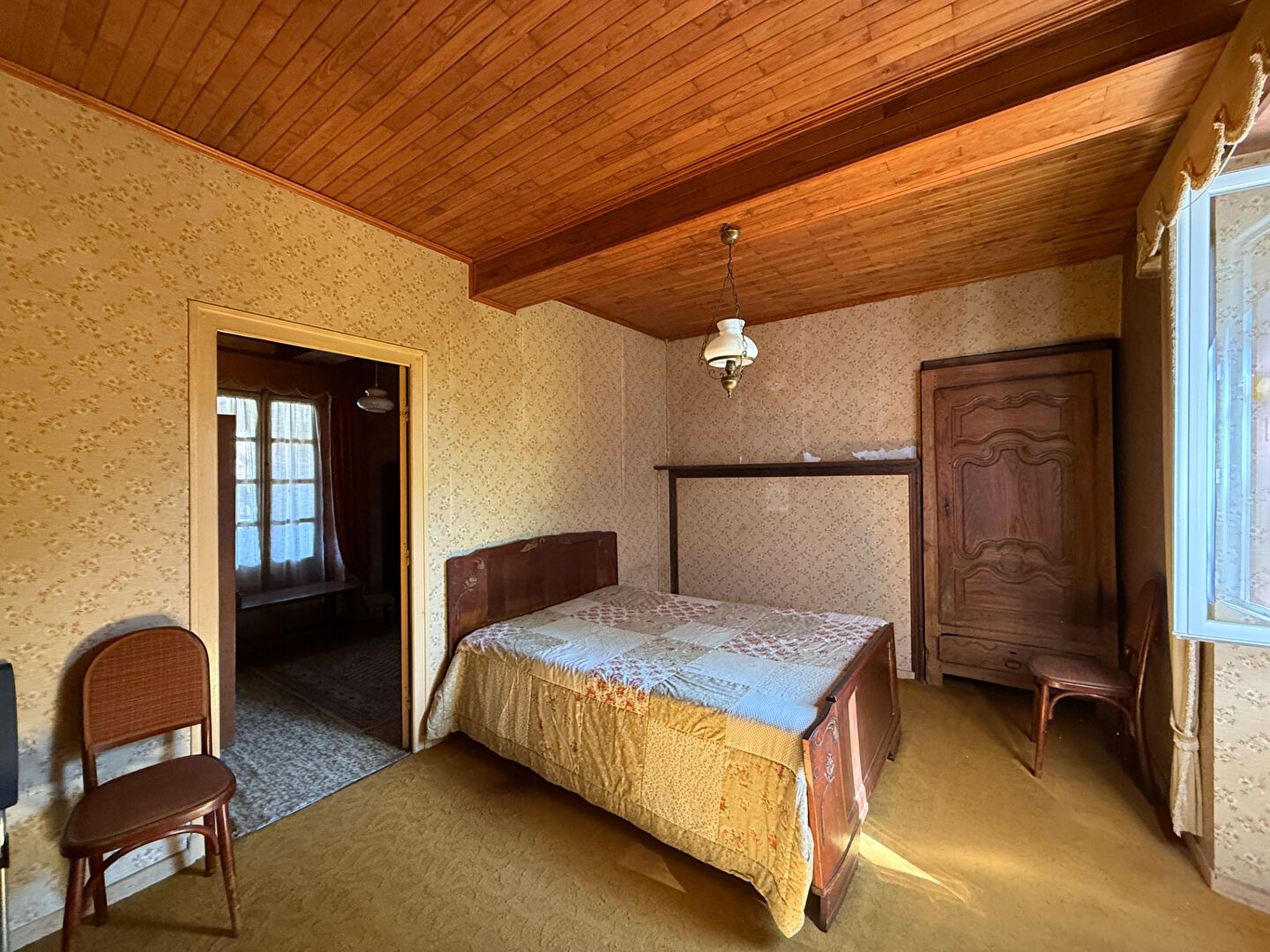 Située dans un environnement agréable, cette maison en pierre pleine de charme offre un superbe potentiel nécessitant cependant une importante rénovation. Elle se compose d'une cuisine -salle à manger, deux chambres, salle d'eau, une pièce. Une petite grange attenante, un atelier et une cave permettent du rangement. Le terrain de 7133 m², est très arboré et confère à la terrasse un environnement privilégié. Les atouts : le perron très authentique, les combles aménageables avec une belle hauteur sous charpente ce qui permet de rajouter 50m² de surface, l'environnement.