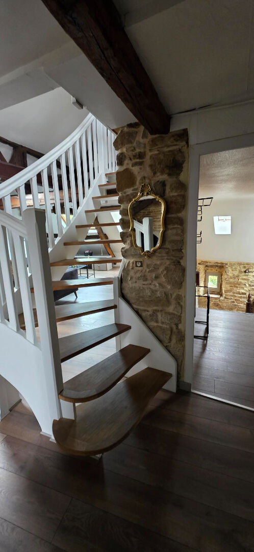 Superbe appartement, en duplex, avec une vue sur l'Odet d'une superficie de 115 m2 environ au sol et 79 .55 m2 loi carrez, dans un immeuble ancien rénovée, au centre ville de Quimper. Cet appartement offre un charme unique avec ses parquets , ses murs en pierre , sa hauteur sous plafonds. Il vous propose , une belle entrée , un espace de vie confortable et spacieux, une cuisine équipée ouverte, deux chambres , une salle de bains moderne , wc. A l'étage : une mezzanine bureau et une chambre Ne manquez pas cette occasion unique de posséder un appartement de caractère dans le centre de Quimper. Pas d'ascenseur 2nd et 3éme étage syndic bénévole 6 lots principaux pas de procédure en cours charges : 150 euros par trimestre taxe foncière : 994 euros (6.00 % honoraires TTC à la charge de l'acquéreur.)