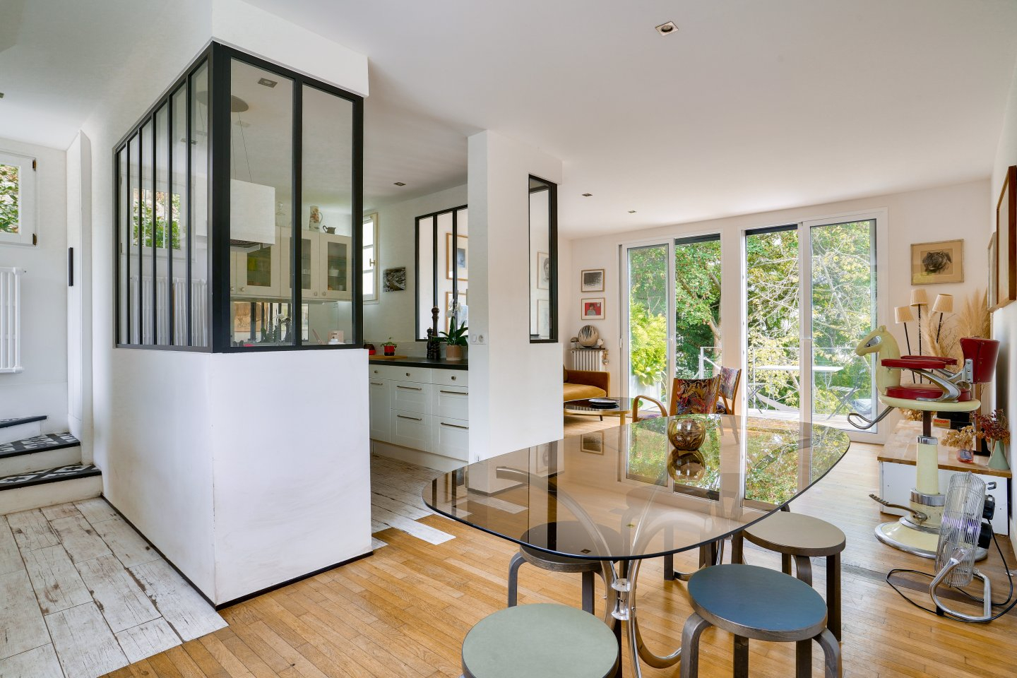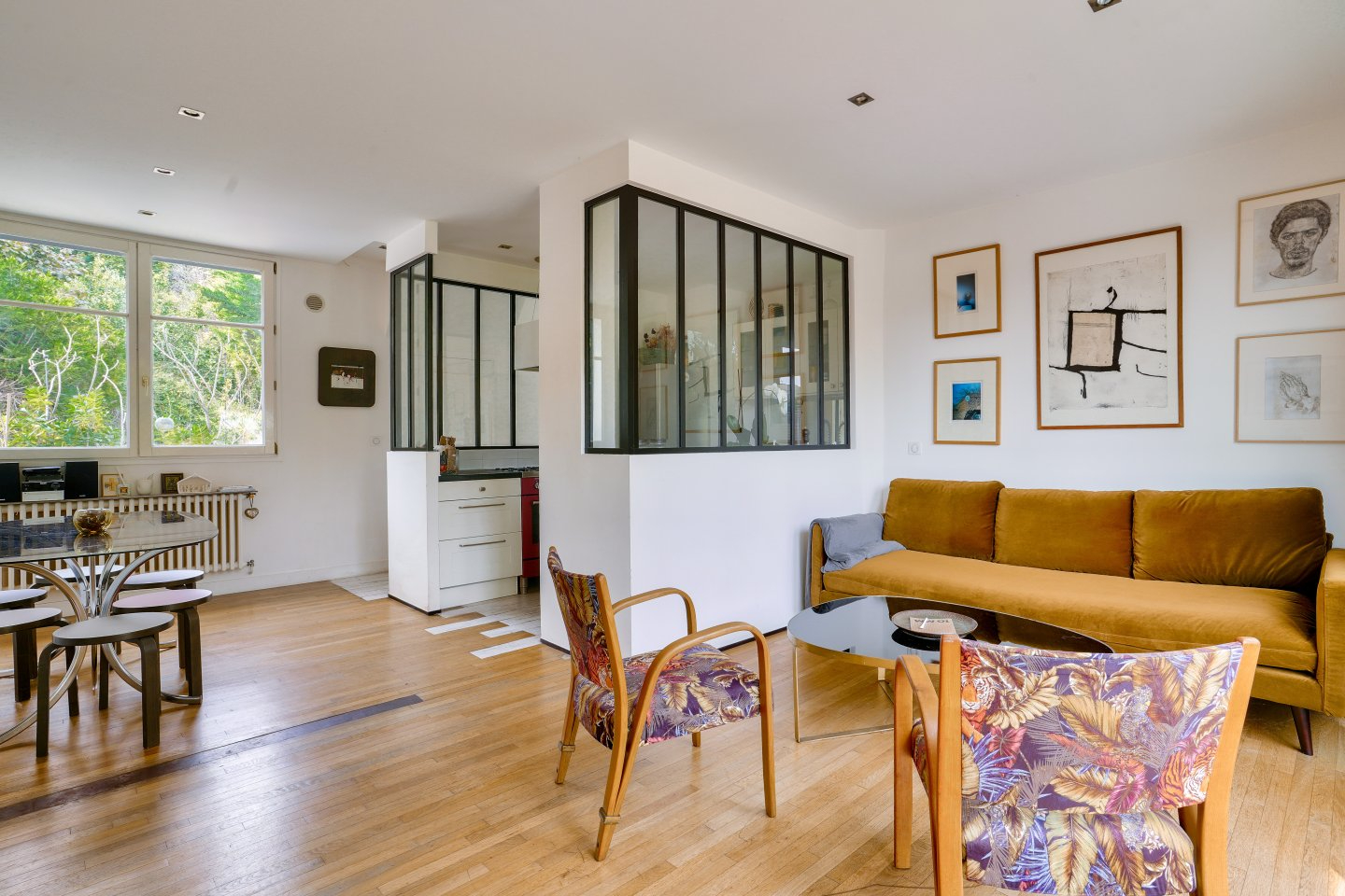Sur la rive-droite dans le quartier de la Croix Bosset, cette maison implantée sur 324 m² de terrain se trouve à seulement 5 minutes à pied de la gare de Sèvres-Ville d'Avray (ligne L), ainsi que des commerces et des écoles, y compris des sections internationales. Au calme et traversante, elle offre 122 m² habitable avec de magnifiques vues dégagées sur la verdure environnante. Au rez-de-chaussée, le salon, la salle à manger et la cuisine s'ouvrent sur un balcon, offrant une vue apaisante sur un écran de verdure, tandis que le jardin et son potager sont orientés plein sud. Le 1er étage accueille deux chambres et une salle de douche. L'espace parents au 2ème étage possède une vaste chambre avec bureau, une salle de bains avec douche et un dressing. En rez-de-jardin, vous trouverez une petite pièce indépendante, idéale pour un bureau ou un espace d'appoint. Le jardin, quant à lui, dispose d'une grande terrasse à l'abri des regards, parfaite pour profiter des journées ensoleillées. Une cave et un garage complètent cette maison des années 50 en très bon état. (3.33 % honoraires TTC à la charge de l'acquéreur.)