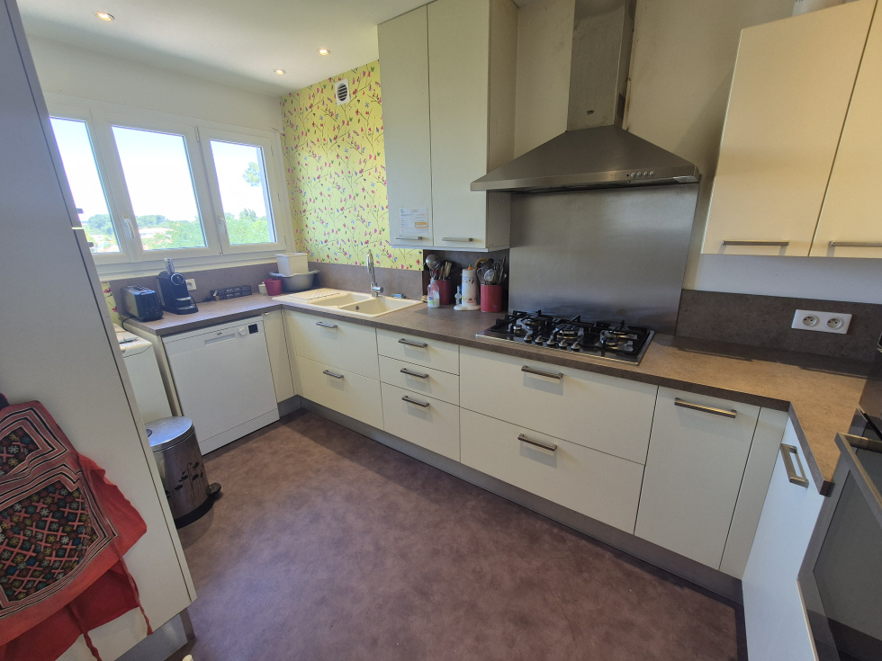 PONTAILLAC. RARE. Vue dégagée avec échappée mer de la terrasse. Bel appartement situé au 4ème et dernier étage avec ascenseur, offrant : Entrée, séjour de 37 m2 ouvrant sur terrasse de 50 m², cuisine aménagée équipée, 2 chambres, salle de bain, salle d'eau, WC. Cave, parking privatif. Les informations sur les risques auxquels ce bien est exposé sont disponibles sur le site géorisques : www.georisques.gouv.fr (5.00 % honoraires TTC à la charge de l'acquéreur.) Copropriété de 38 lots (Pas de procédure en cours). Charges annuelles : 2400 euros.