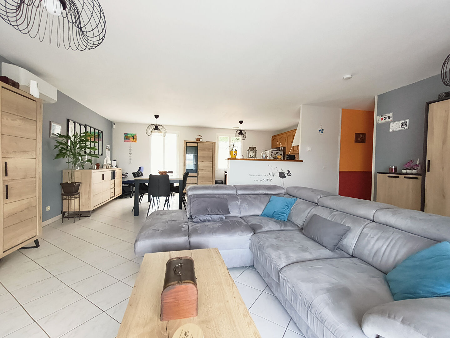 A saisir, en exclusivité ! Vous entrez par un portail automatique qui ouvre sur une cour goudronnée qui donne accès au pavillon et un préau de 60m² pour 4 véhicules. Vous serez séduit par la pièce de vie de 50m² avec sa lumière traversante et l'ouverture sur la terrasse, 3 belles chambres de 10 à 14m², salle de bains, buanderie et garage attenant . Chauffage au sol (DPE C). (3.95 % honoraires TTC à la charge de l'acquéreur.)