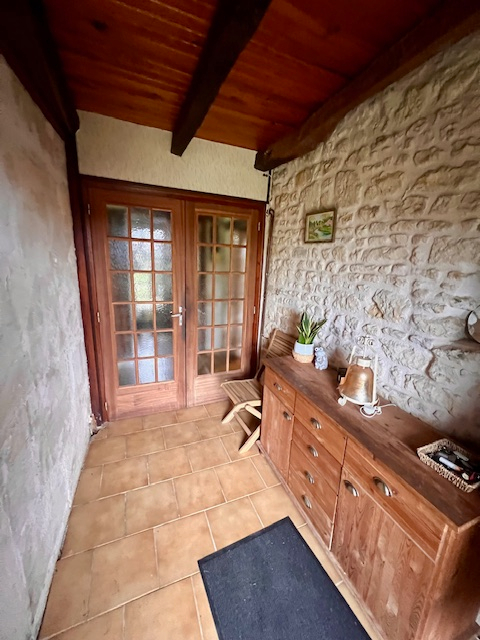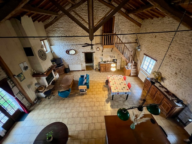5 KMS DE SAINT MAIXENT L'ECOLE Ancienne ferme d'environ 175 m2, entrée en pierres apparentes, grande pièce principale de 65 m² avec cheminée insert et poêle à bois, cuisine 14 m², chaufferie, cellier, 5 chambres dont 2 en rdc, salle de bain avec douche. Dépendance avec four à pain, préau en pierres, garage, puits, jardin, l'ensemble sur un terrain d'environ 1560 m² clos dans un bel environnement; Toitures en bon état, des travaux sont à prévoir sur les chambres, modernisation des pièces. Assainissement non conforme. DPE D REF : 401RIV (4.85 % honoraires TTC à la charge de l'acquéreur.)